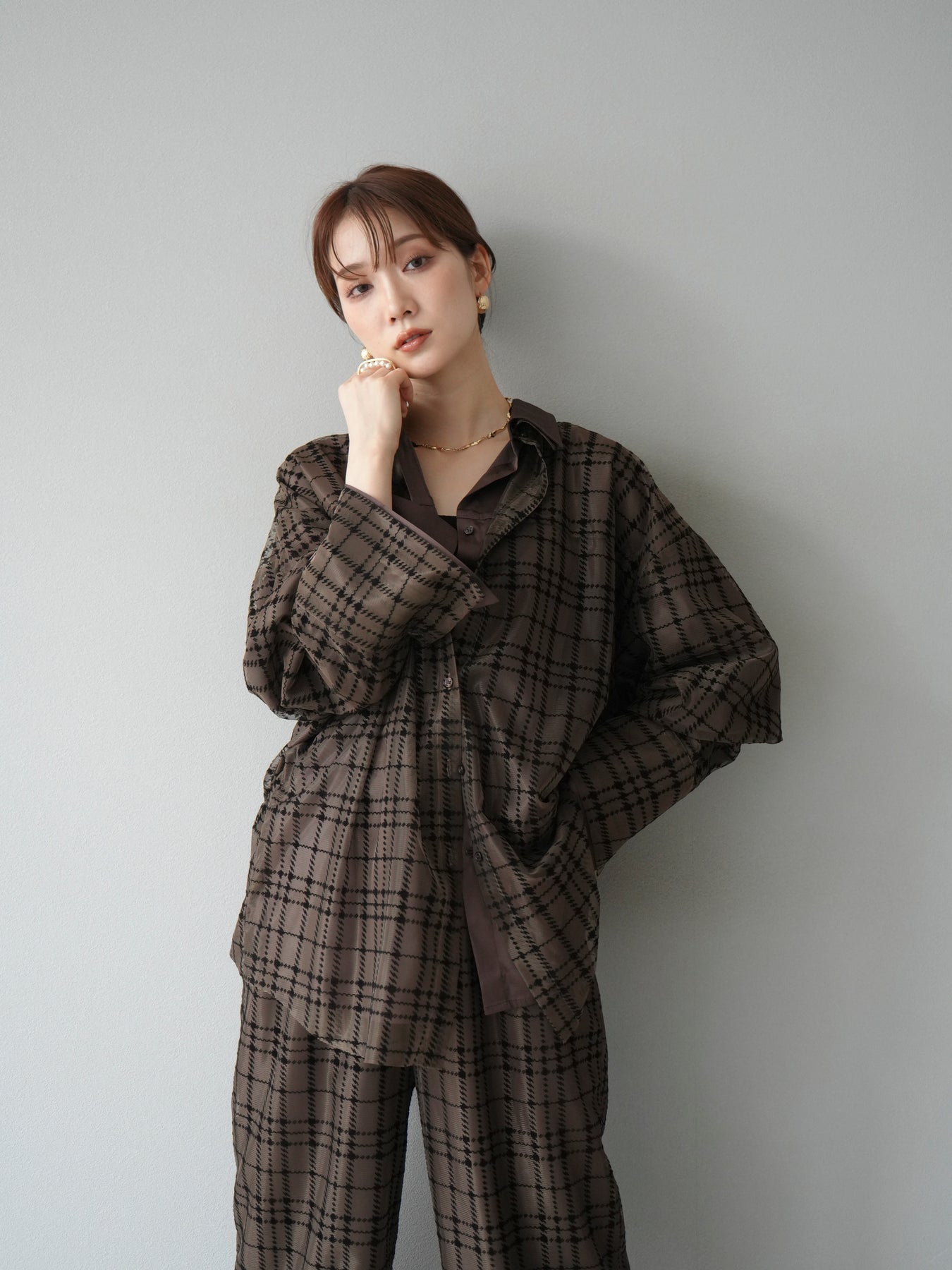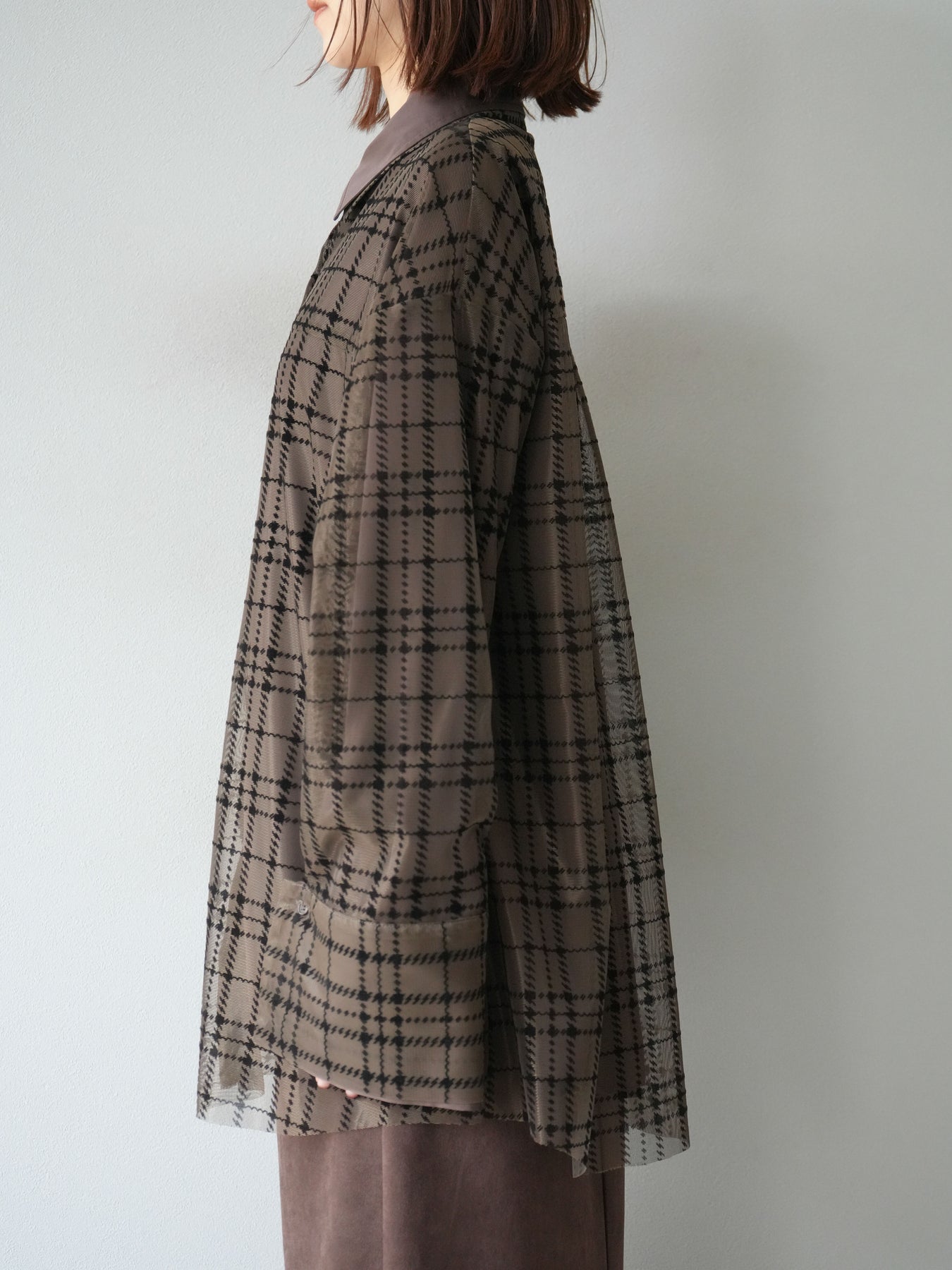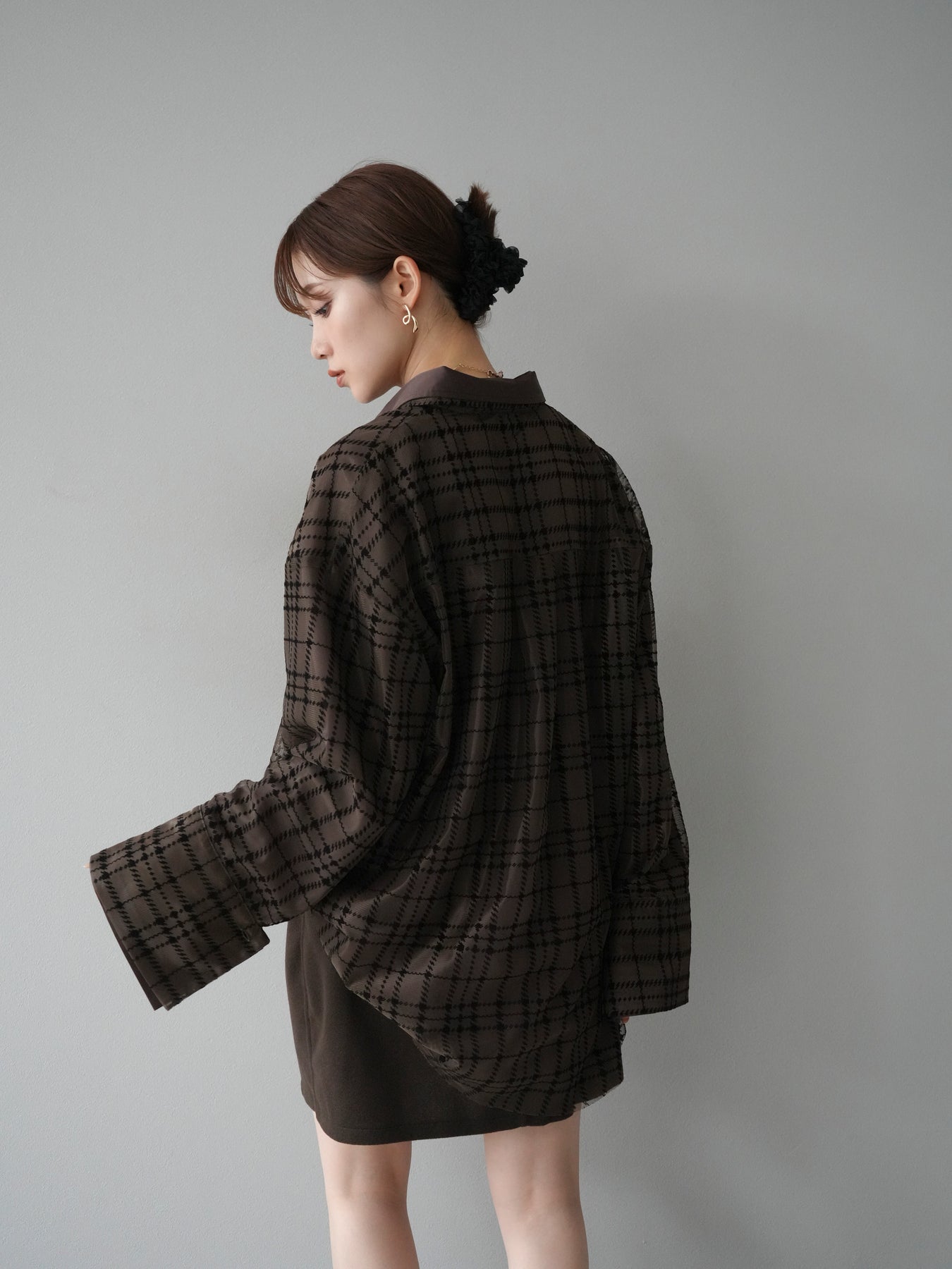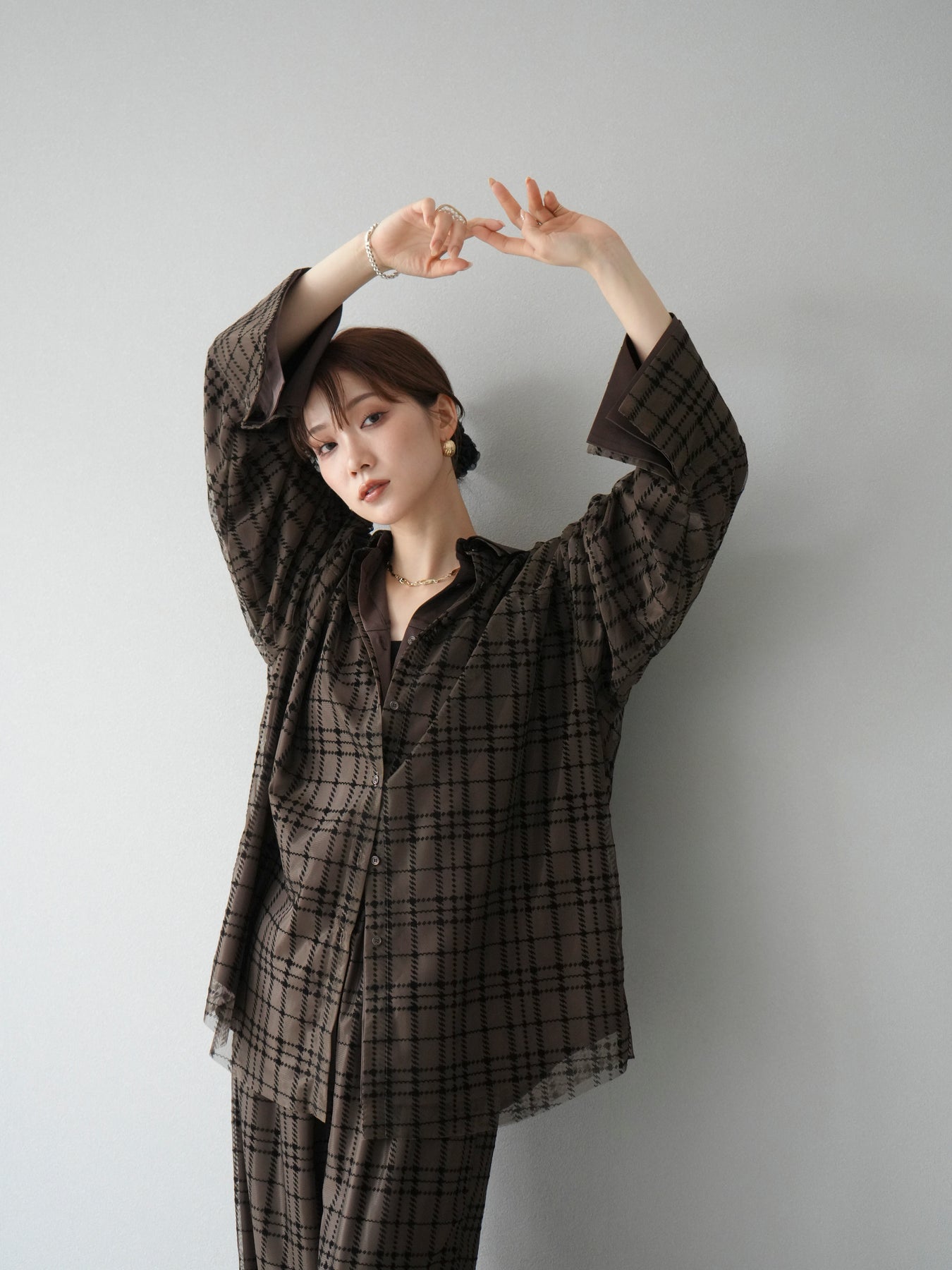 [予約]チェック柄チュールシャツアンサンブル/ブラウン
