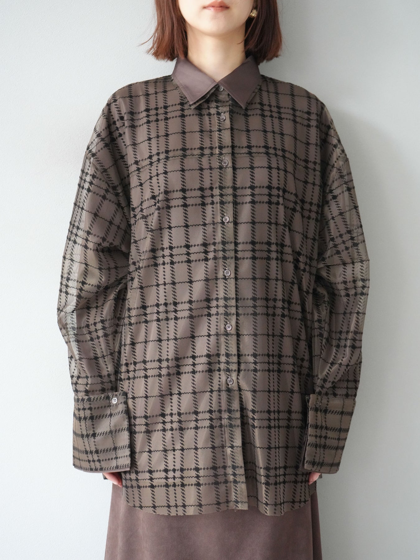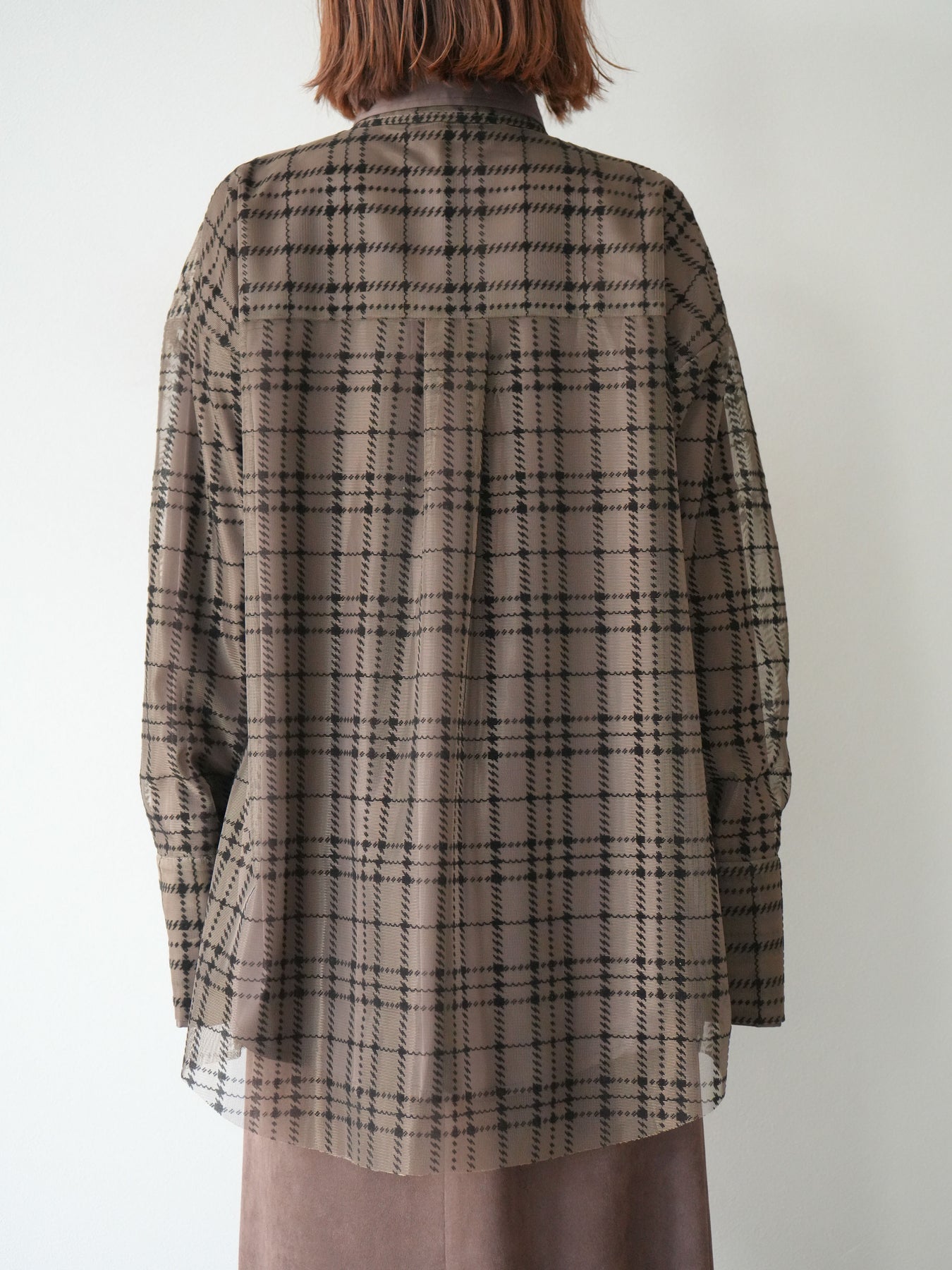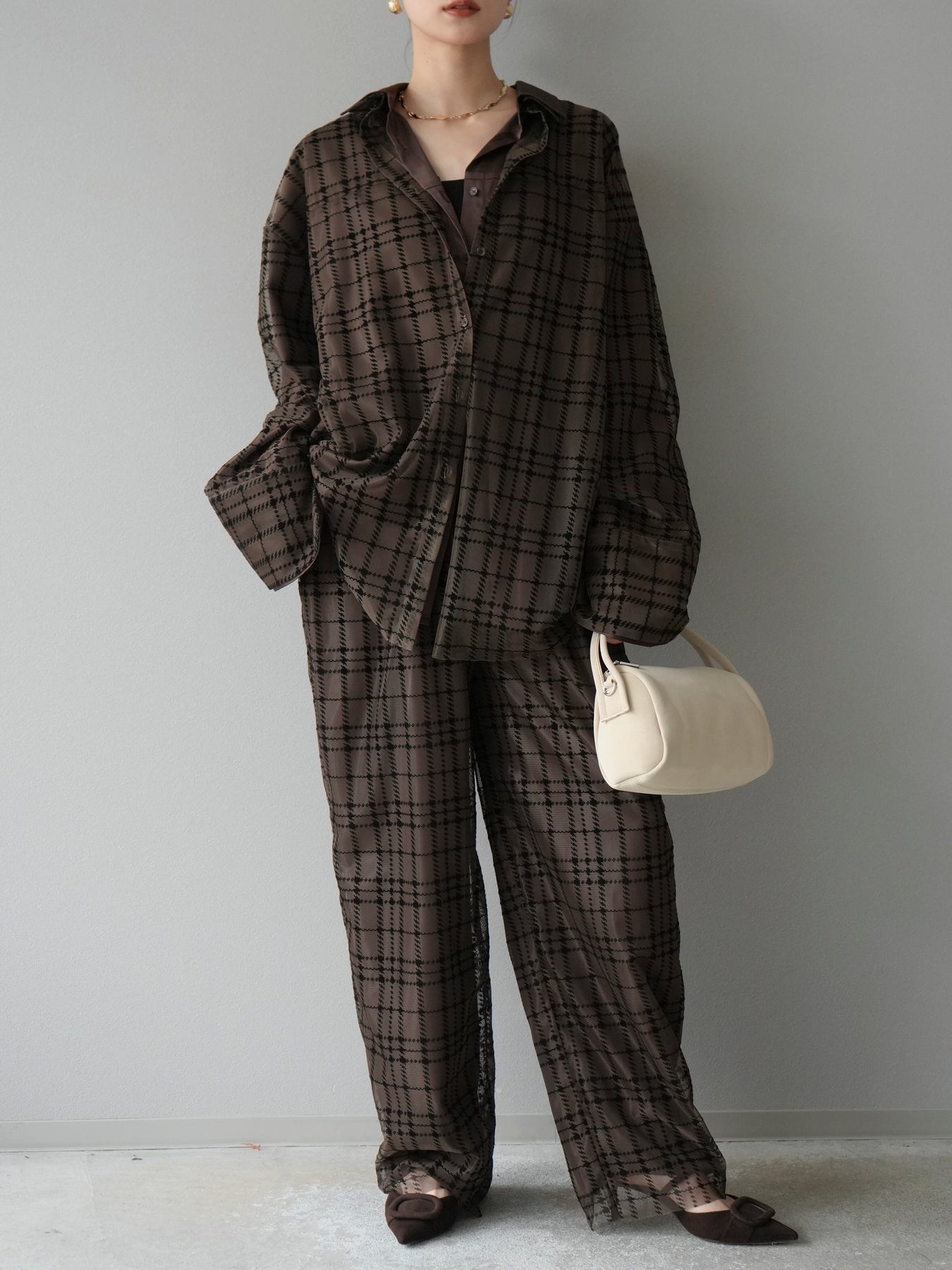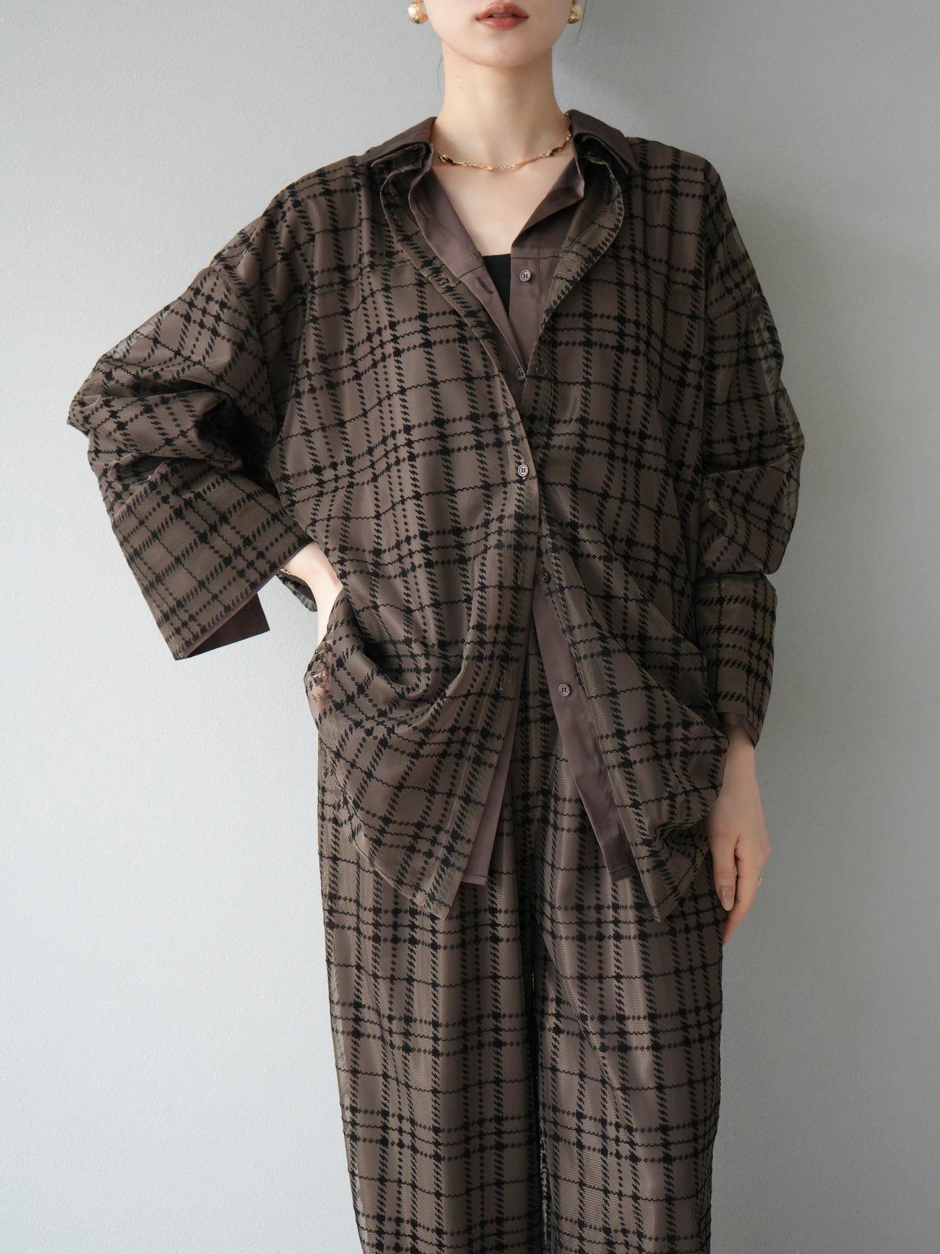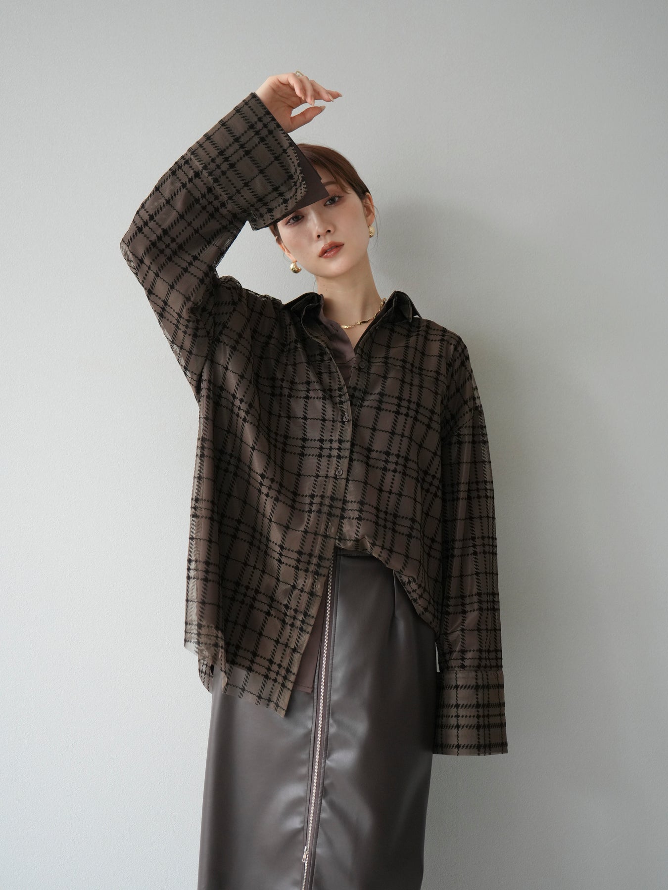 [予約]チェック柄チュールシャツアンサンブル/ブラウン