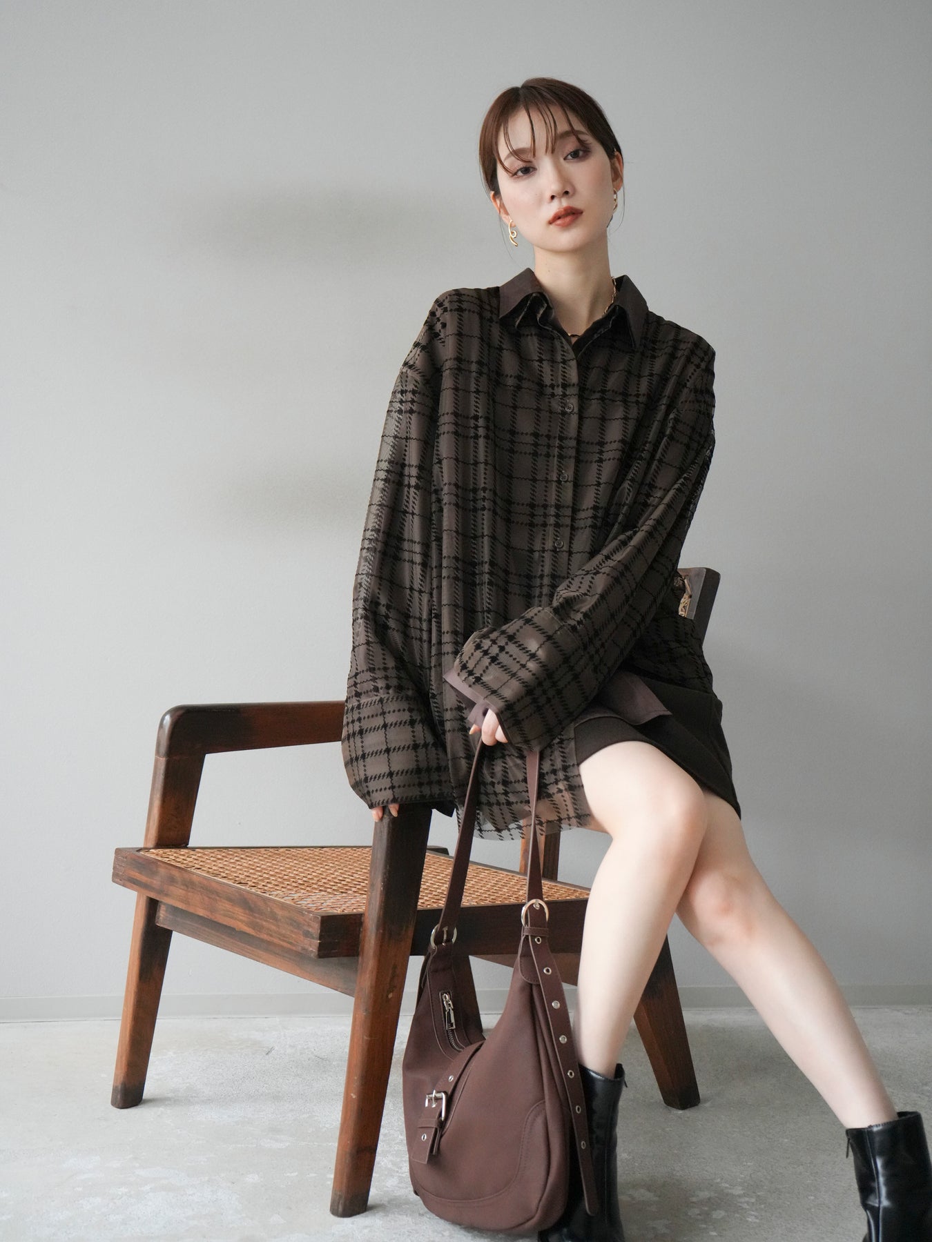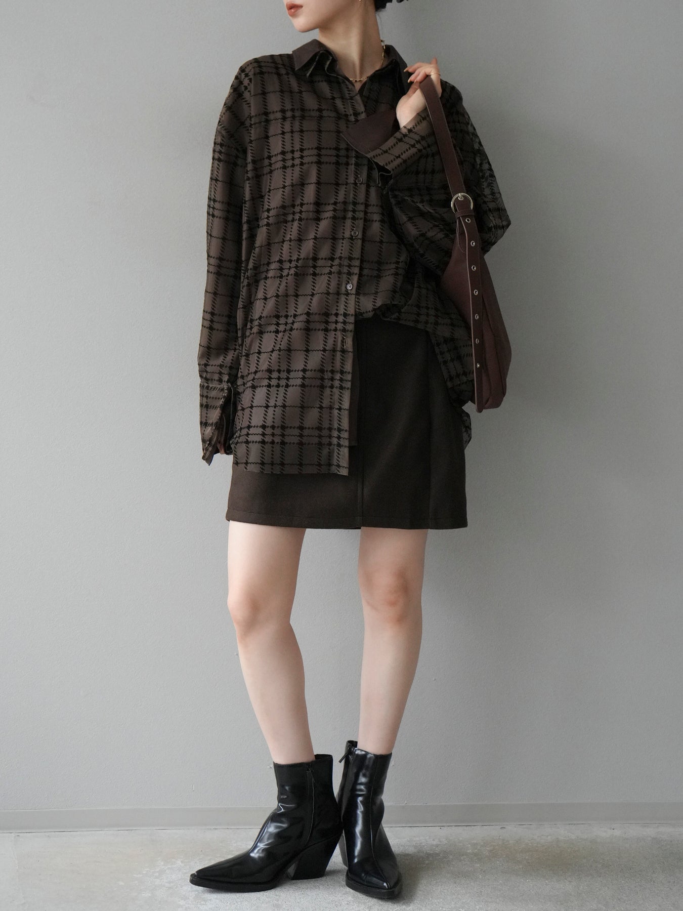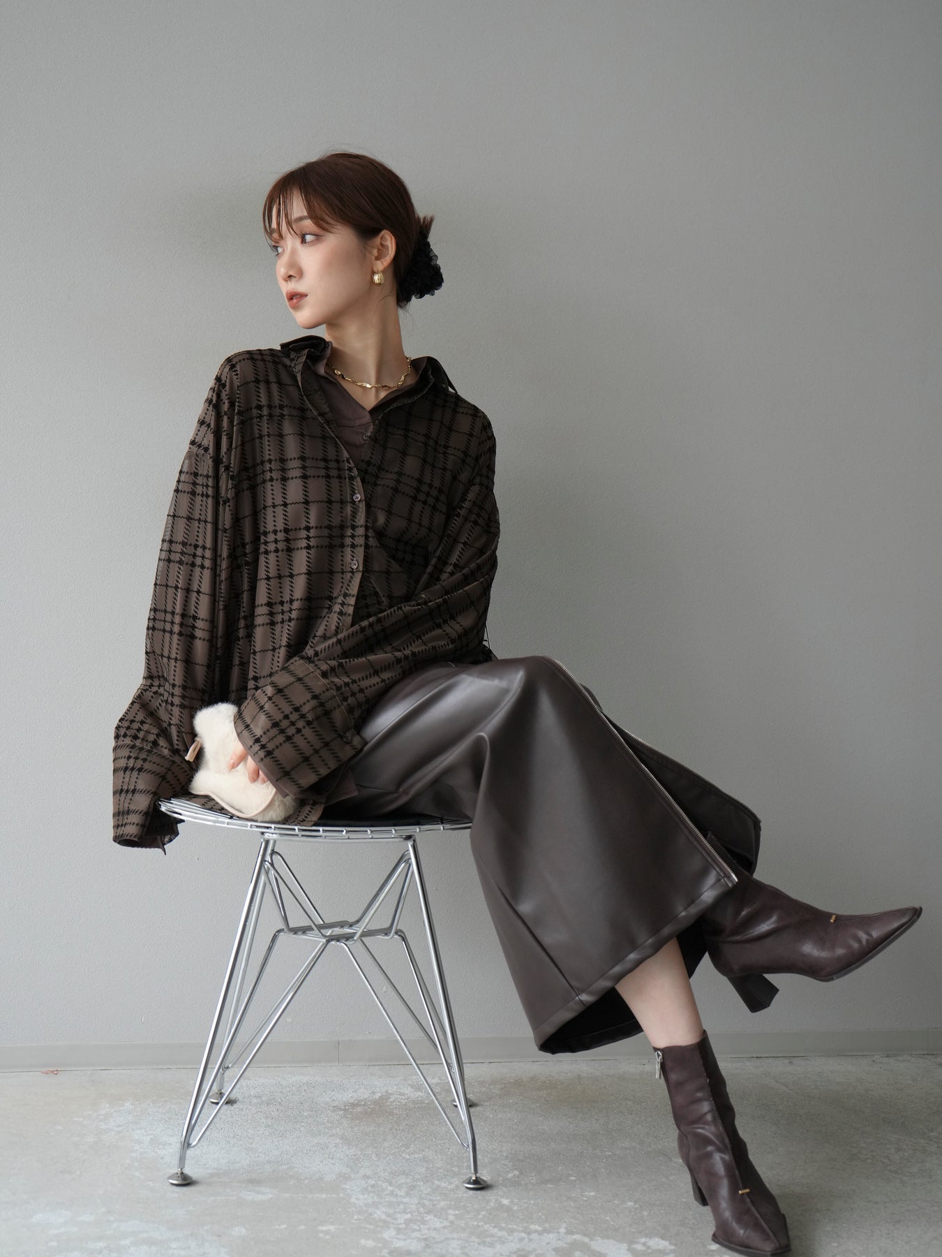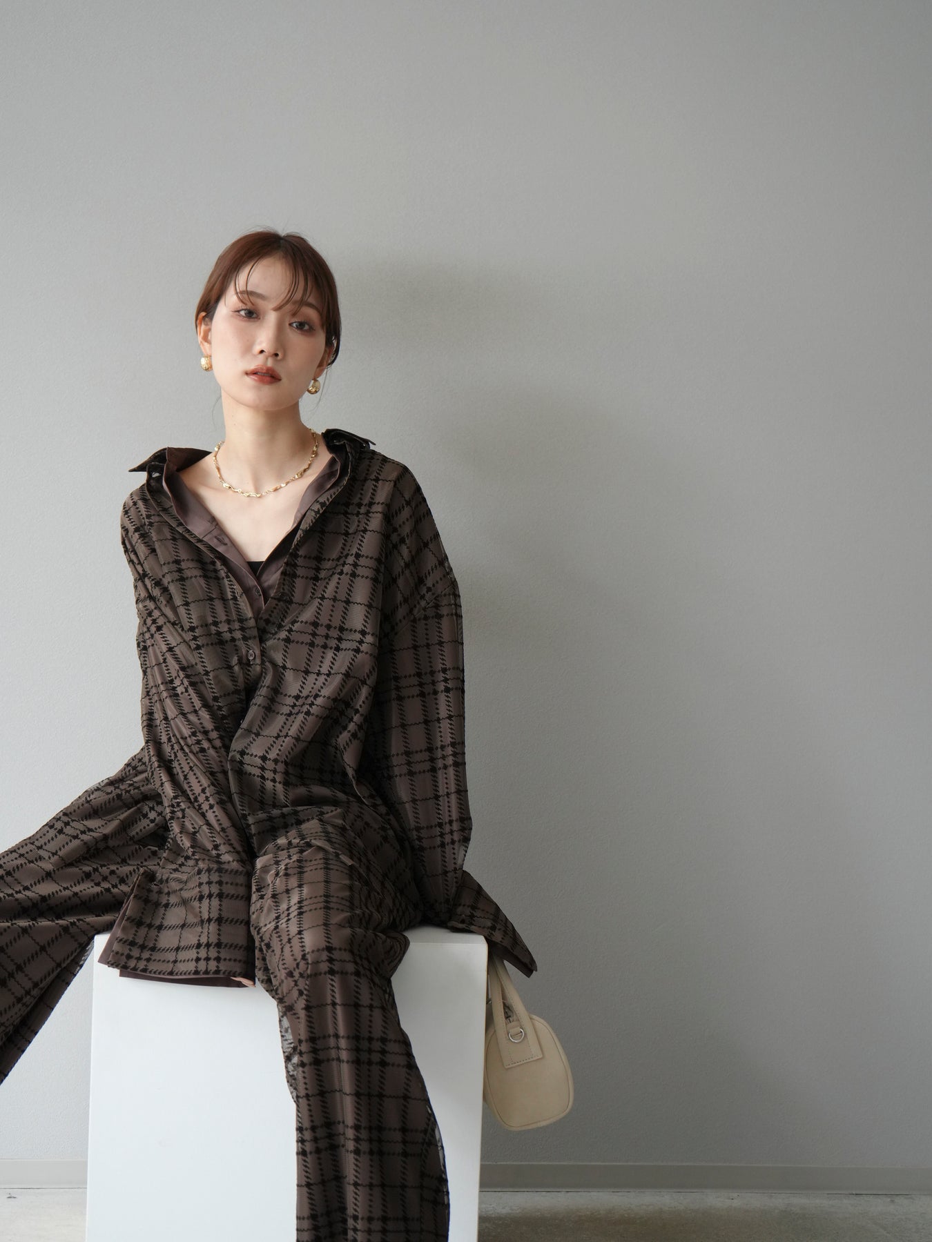 [予約]チェック柄チュールシャツアンサンブル/ブラウン