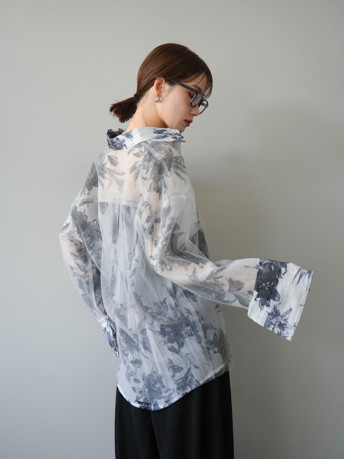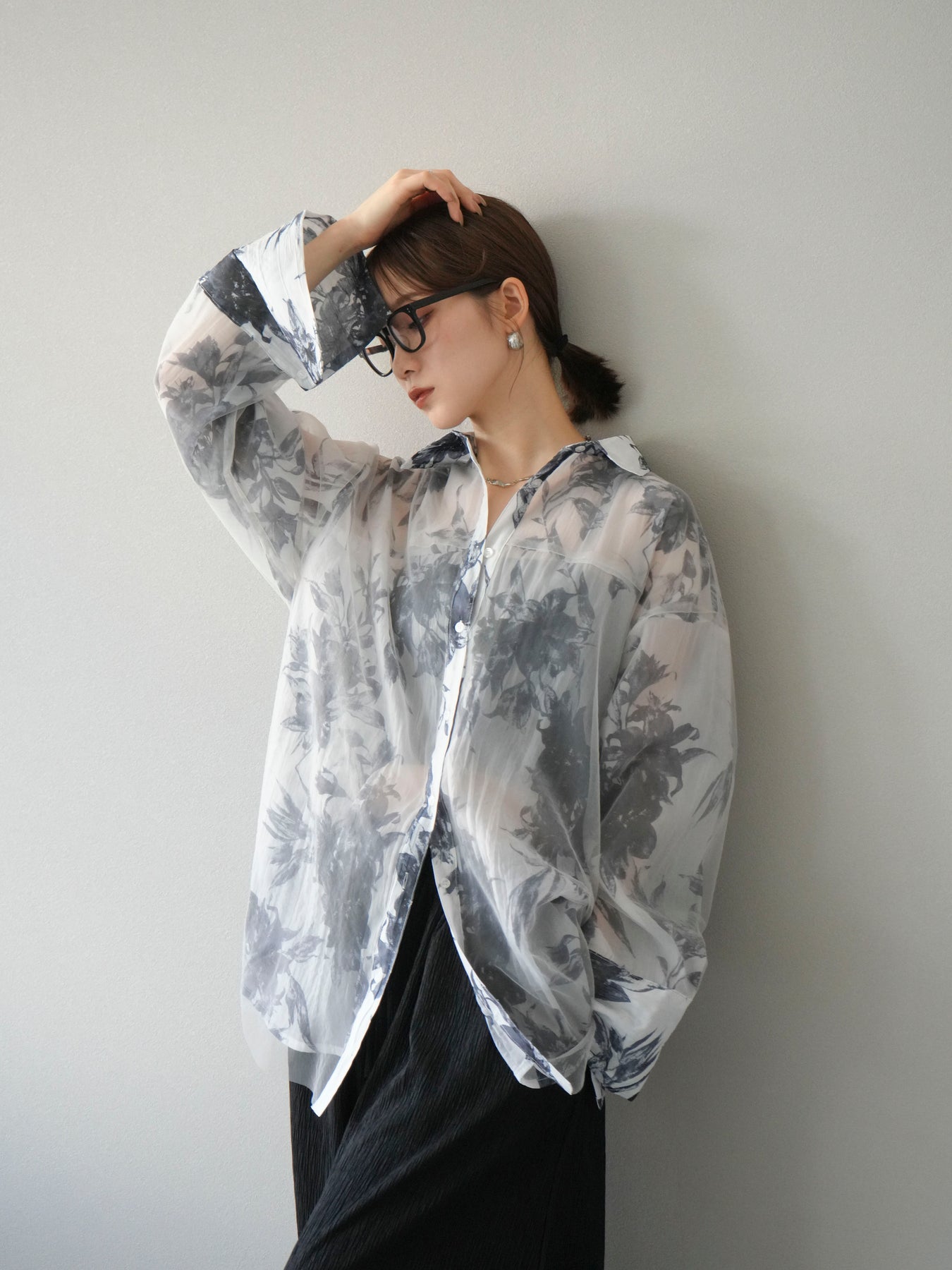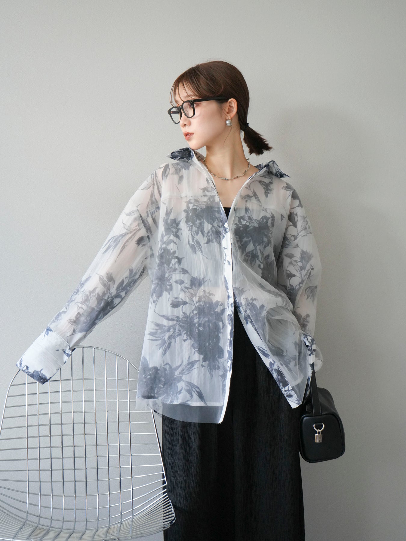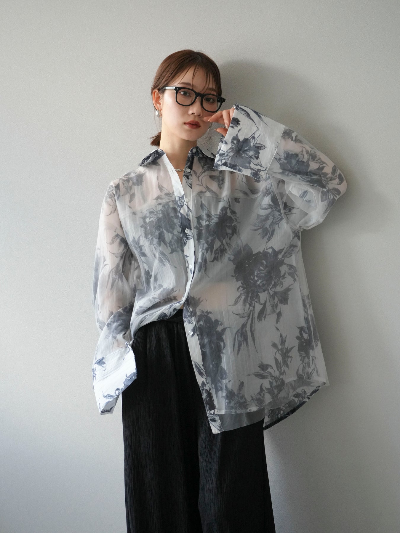 [予約]チュールドッキングフラワー柄オーバーサイズシャツ/グレー