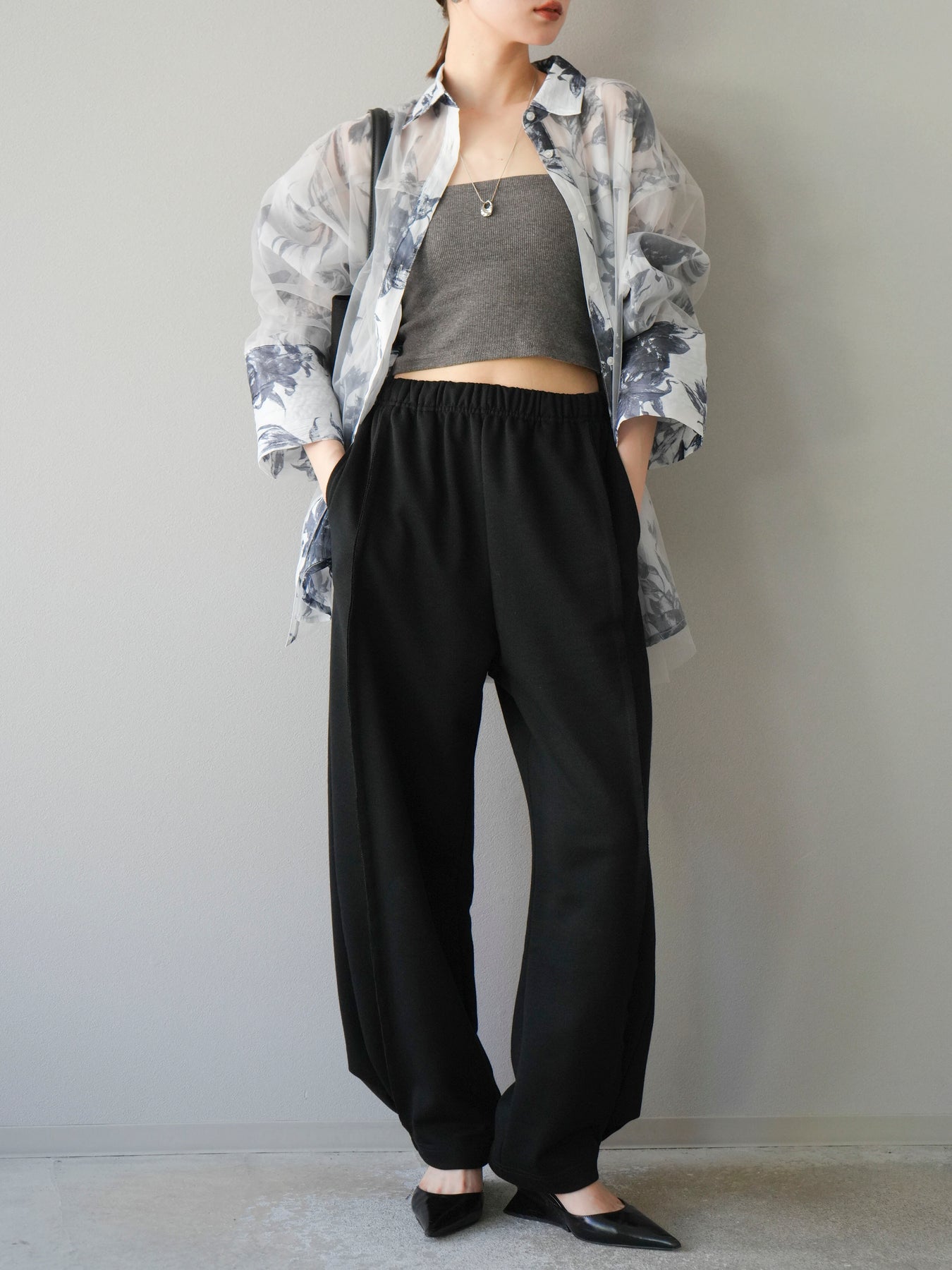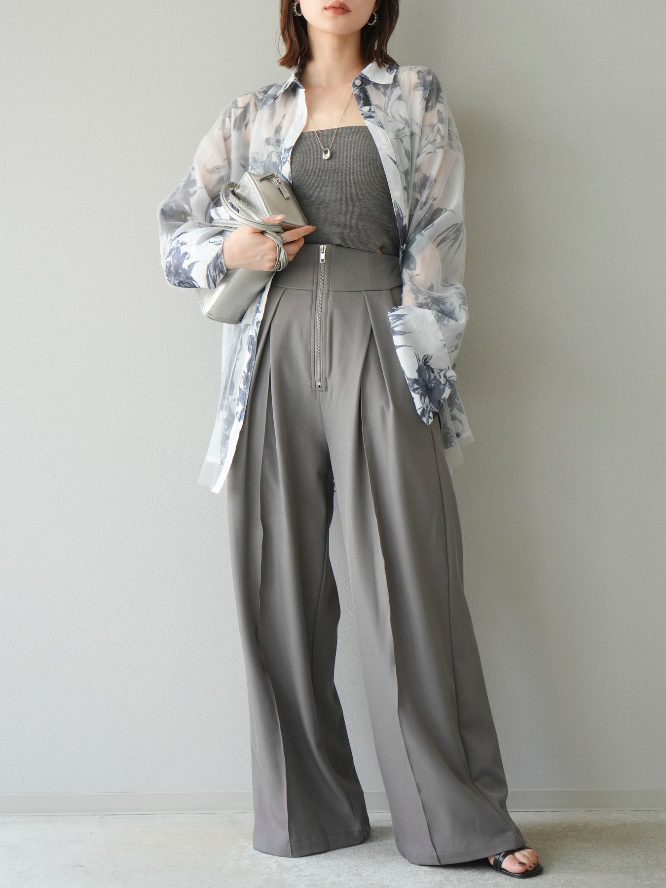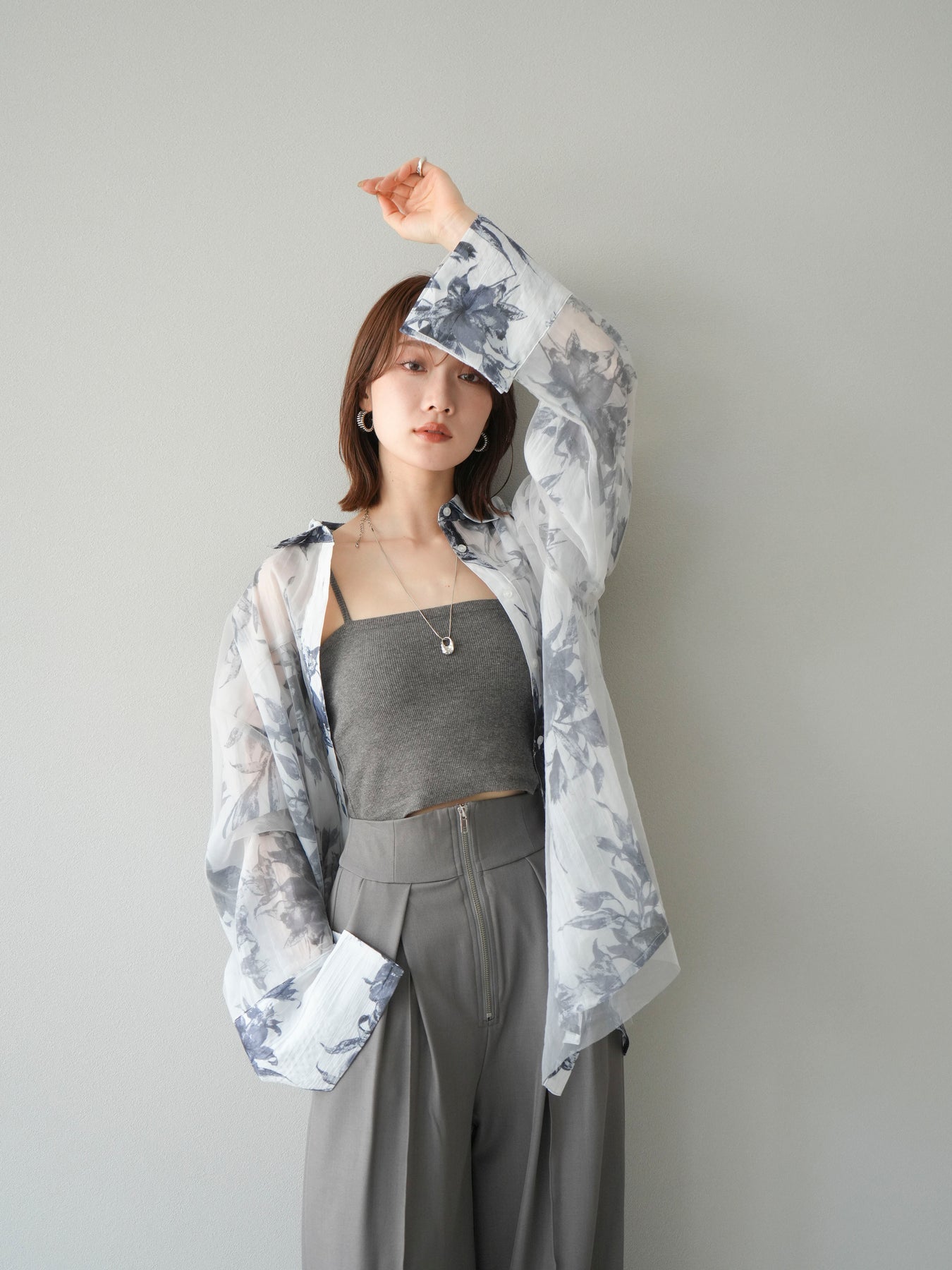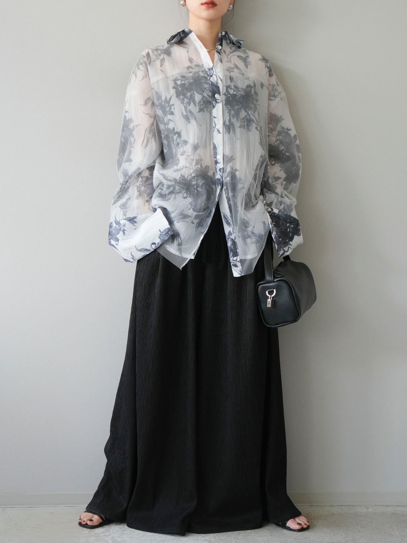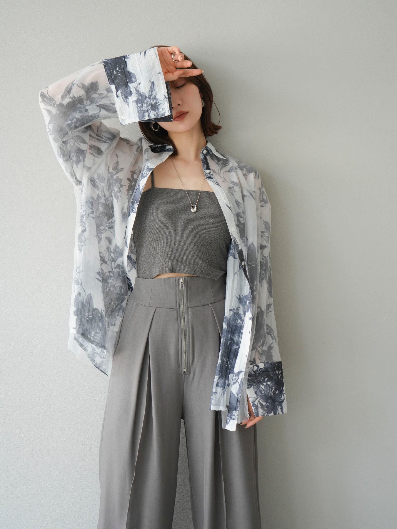 [予約]チュールドッキングフラワー柄オーバーサイズシャツ/グレー