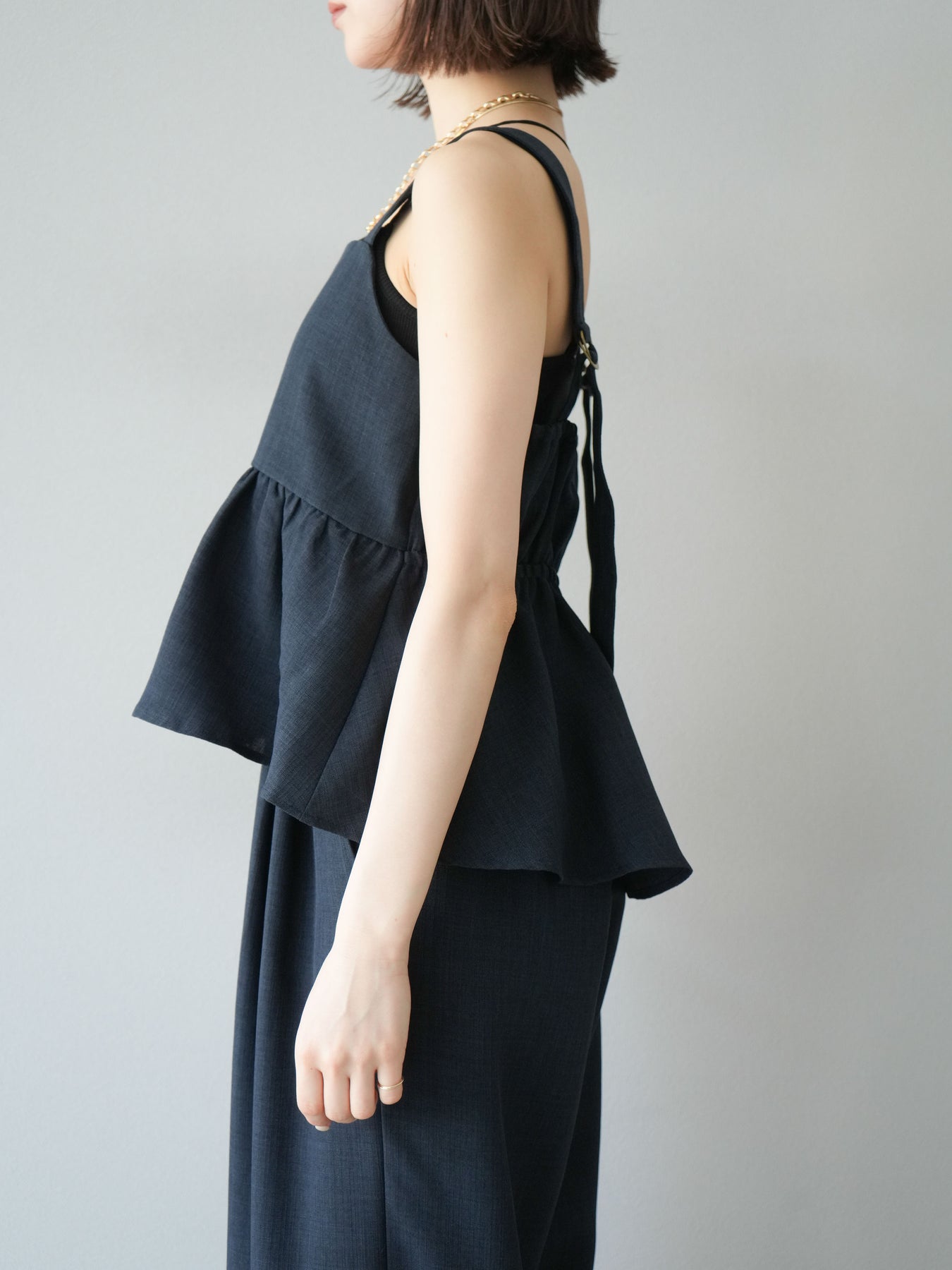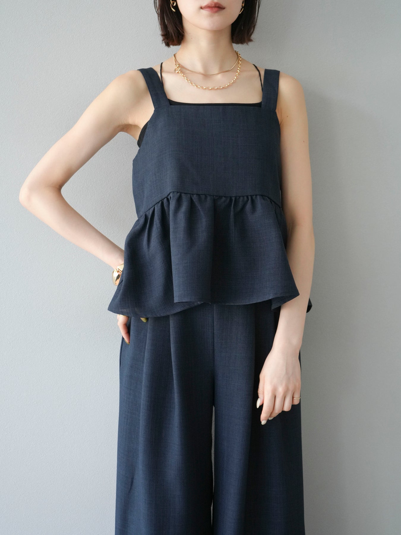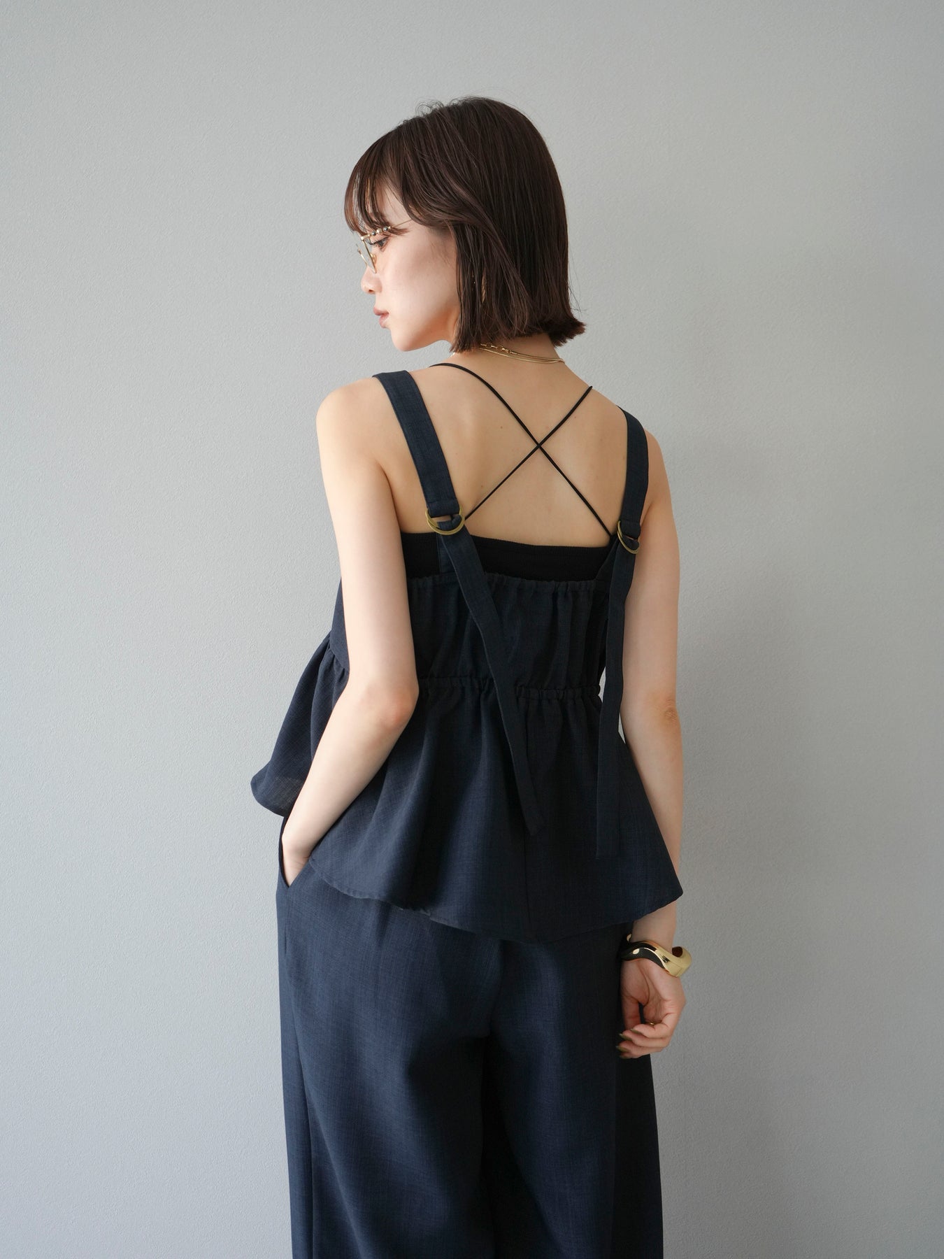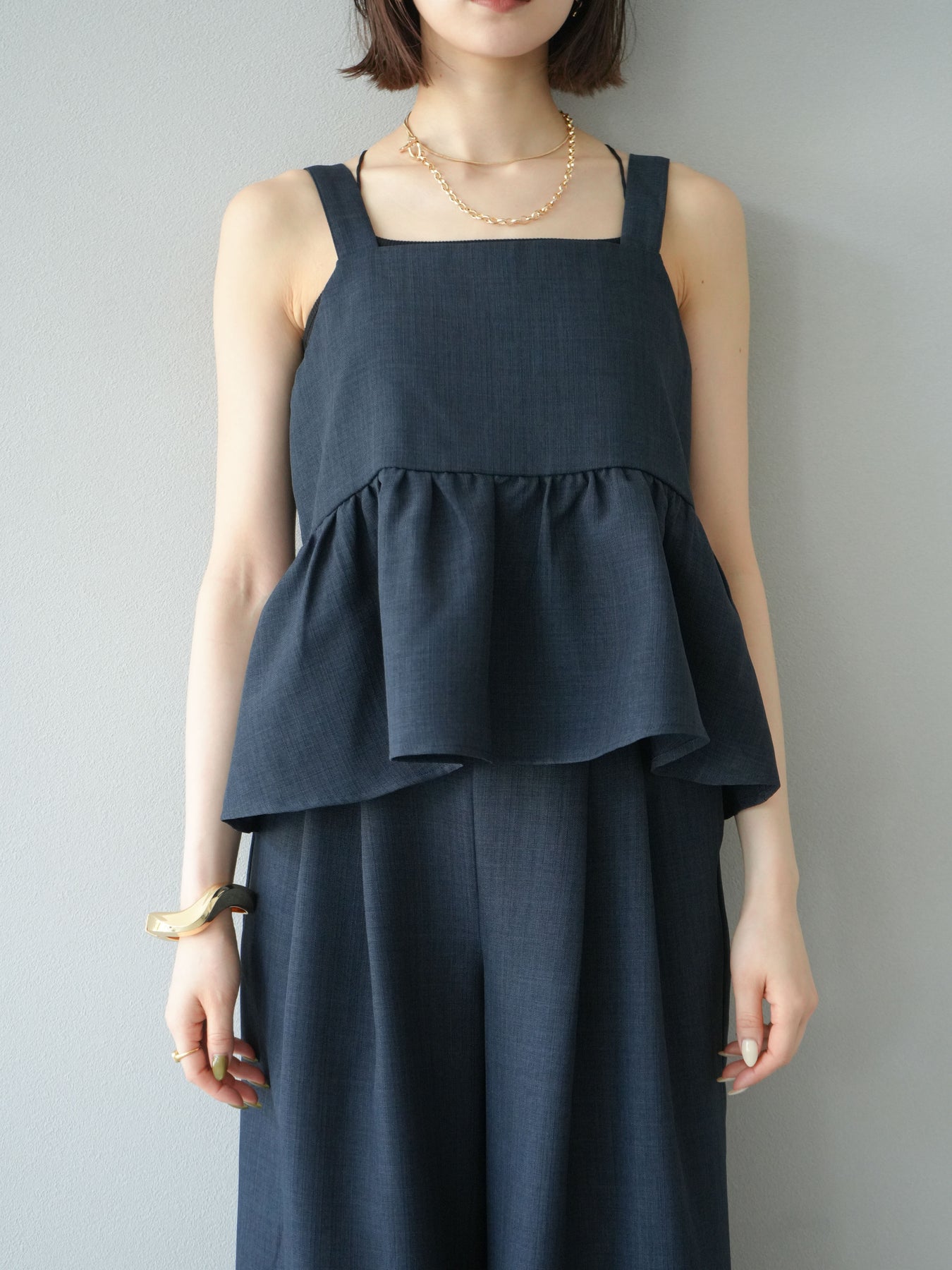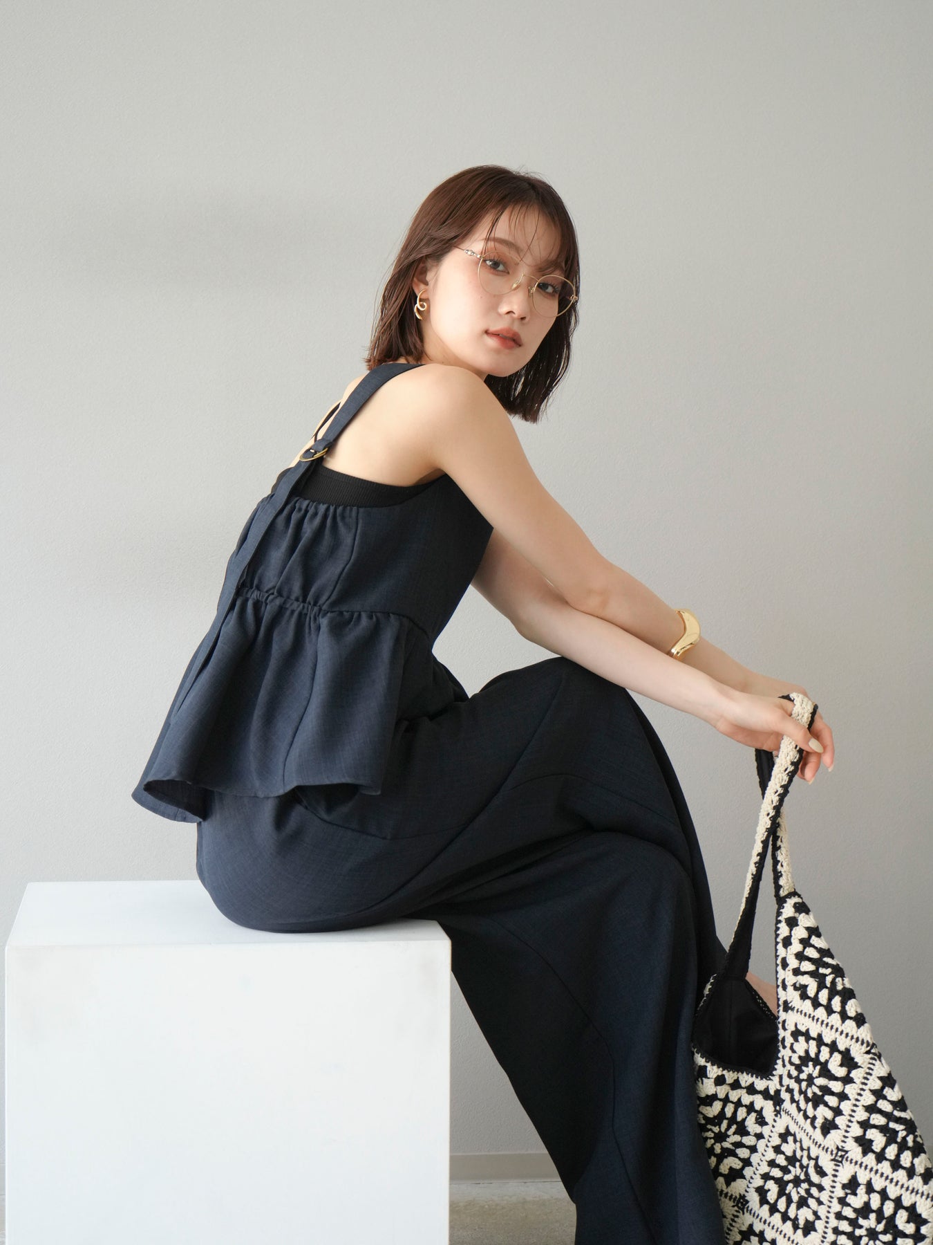 ふんわりと広がるペプラムシルエットが華やかさを演出する、リネンライク素材のビスチェ。 ナチュラルな風合いながらも、程よくハリのある生地感で上品に仕上げた一枚です。 スクエアネックと太めのストラップが顔まわりをすっきり見せ、甘すぎず大人っぽい印象に。 ウエスト位置を高めに設定したデザインで、スタイルアップ効果も◎。 一枚でさらりと着ても、Tシャツやシアートップスとのレイヤードでもこなれ感たっぷり。 同素材のワイドパンツやスカートと合わせたセットアップ風の着こなしもおすすめです。