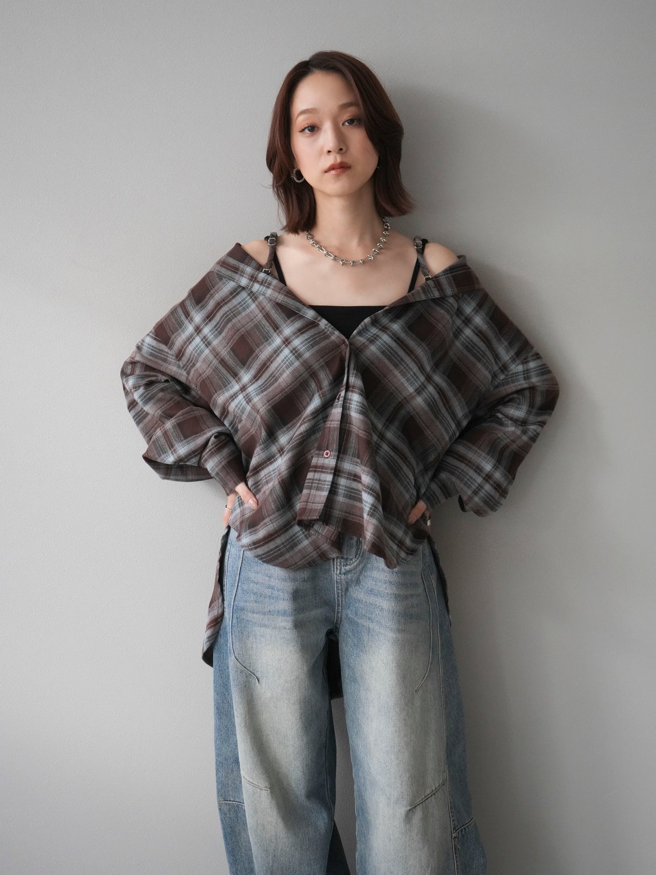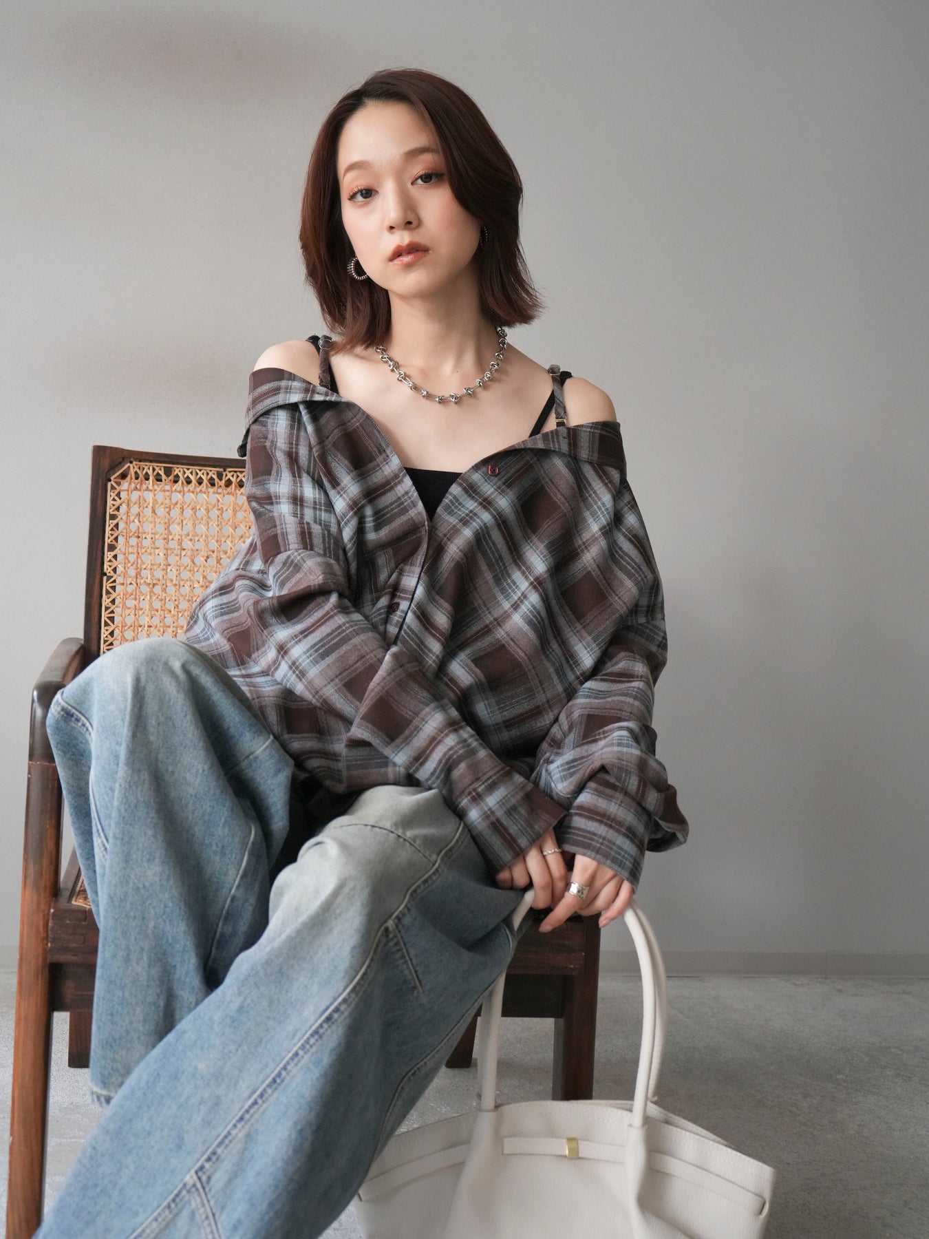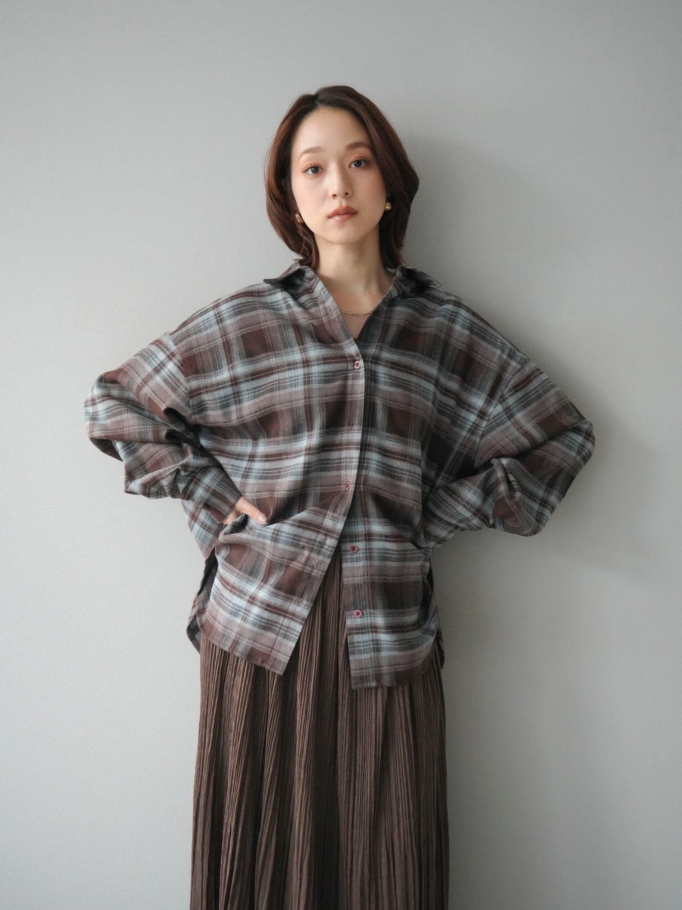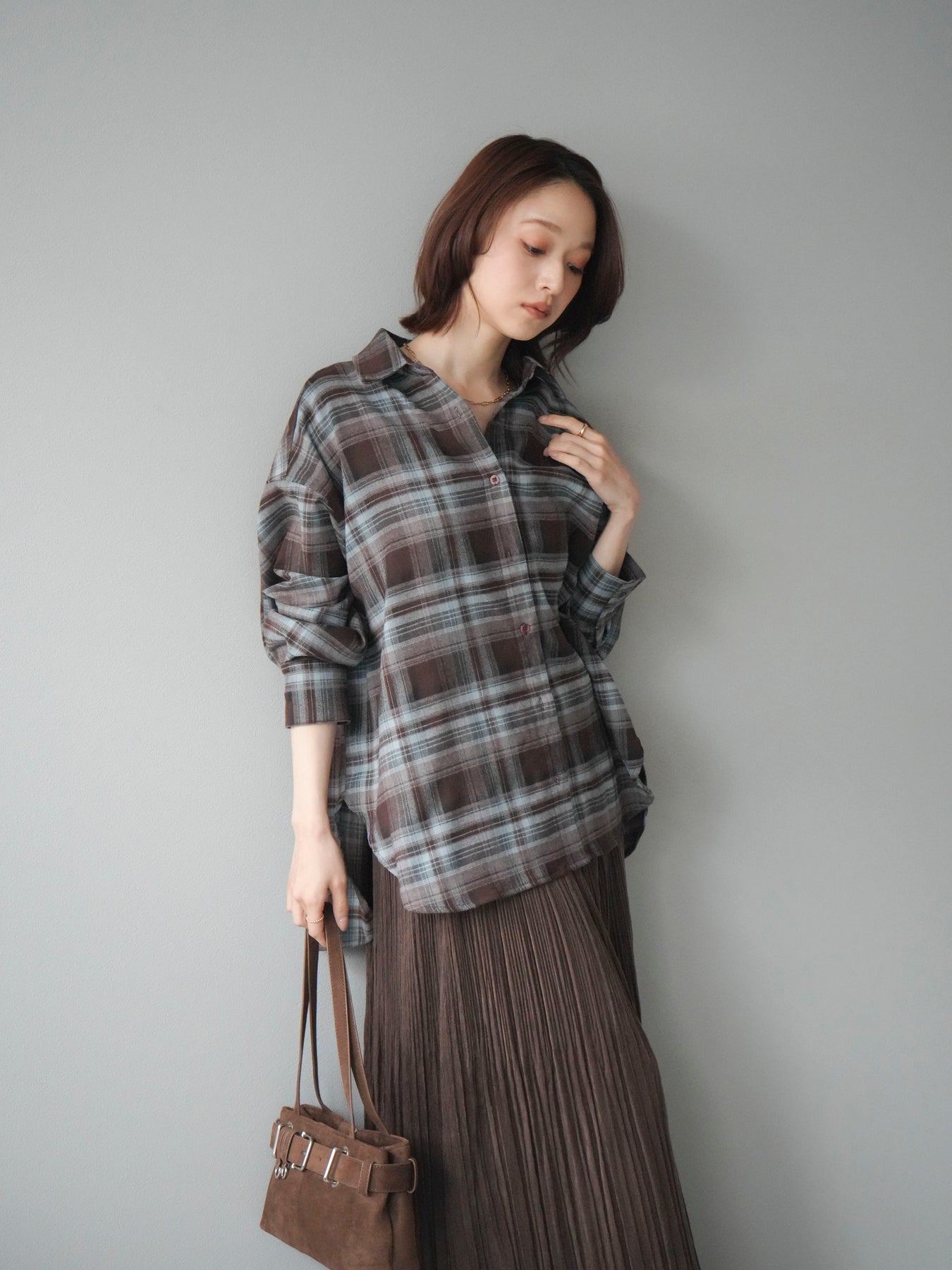 シーズンムード漂うチェック柄が魅力のマルチウェイシャツ。 前後2WAYで着用でき、羽織としてもトップスとしても活躍する万能アイテムです。 柔らかな素材感と程よいゆとりのあるシルエットで、リラックス感のある着心地。 裾に向かって緩やかにラウンドしたデザインが抜け感をプラスし、シンプルながらもこなれた印象に仕上げています。 デニムやスカートなど幅広いボトムと相性が良く、カジュアルにもフェミニンにも着こなせる一枚です。 ※ボトムス、キャミソール(インナー)以外の商品は一律でインナーは付属していません。