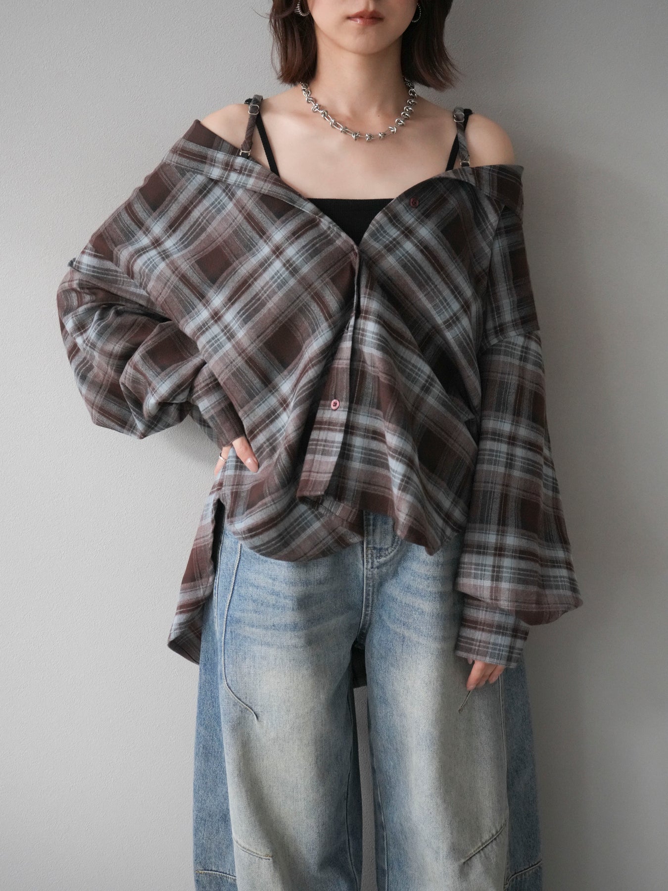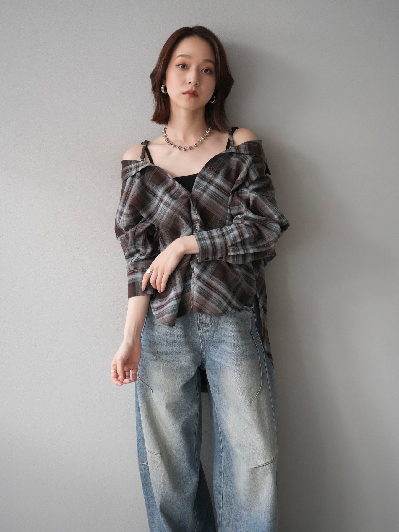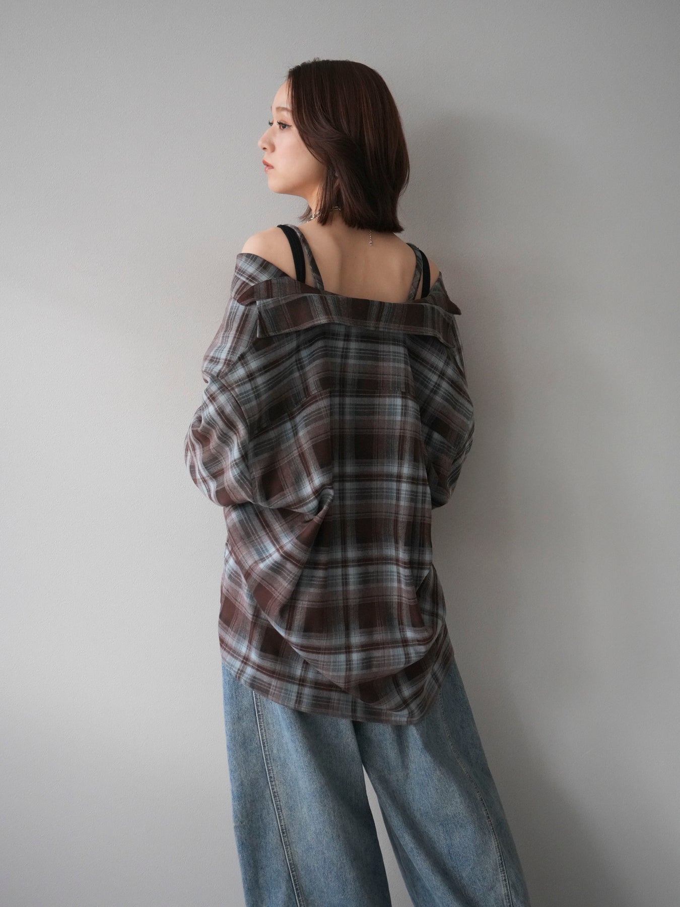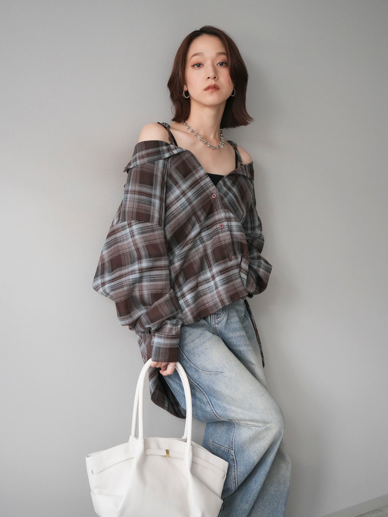 シーズンムード漂うチェック柄が魅力のマルチウェイシャツ。 前後2WAYで着用でき、羽織としてもトップスとしても活躍する万能アイテムです。 柔らかな素材感と程よいゆとりのあるシルエットで、リラックス感のある着心地。 裾に向かって緩やかにラウンドしたデザインが抜け感をプラスし、シンプルながらもこなれた印象に仕上げています。 デニムやスカートなど幅広いボトムと相性が良く、カジュアルにもフェミニンにも着こなせる一枚です。 ※ボトムス、キャミソール(インナー)以外の商品は一律でインナーは付属していません。