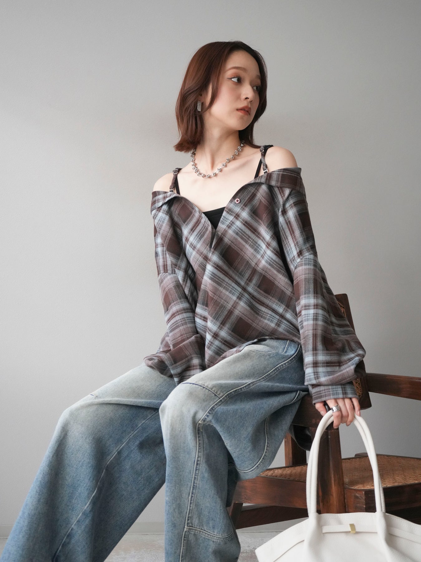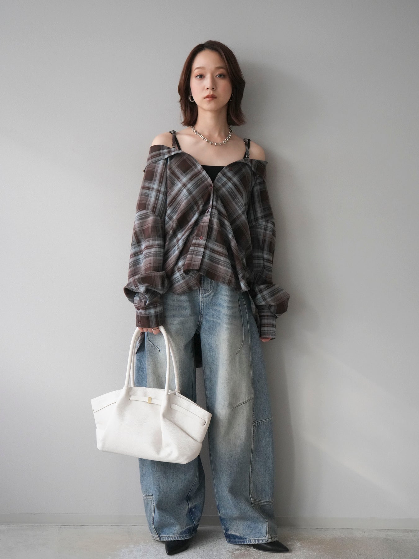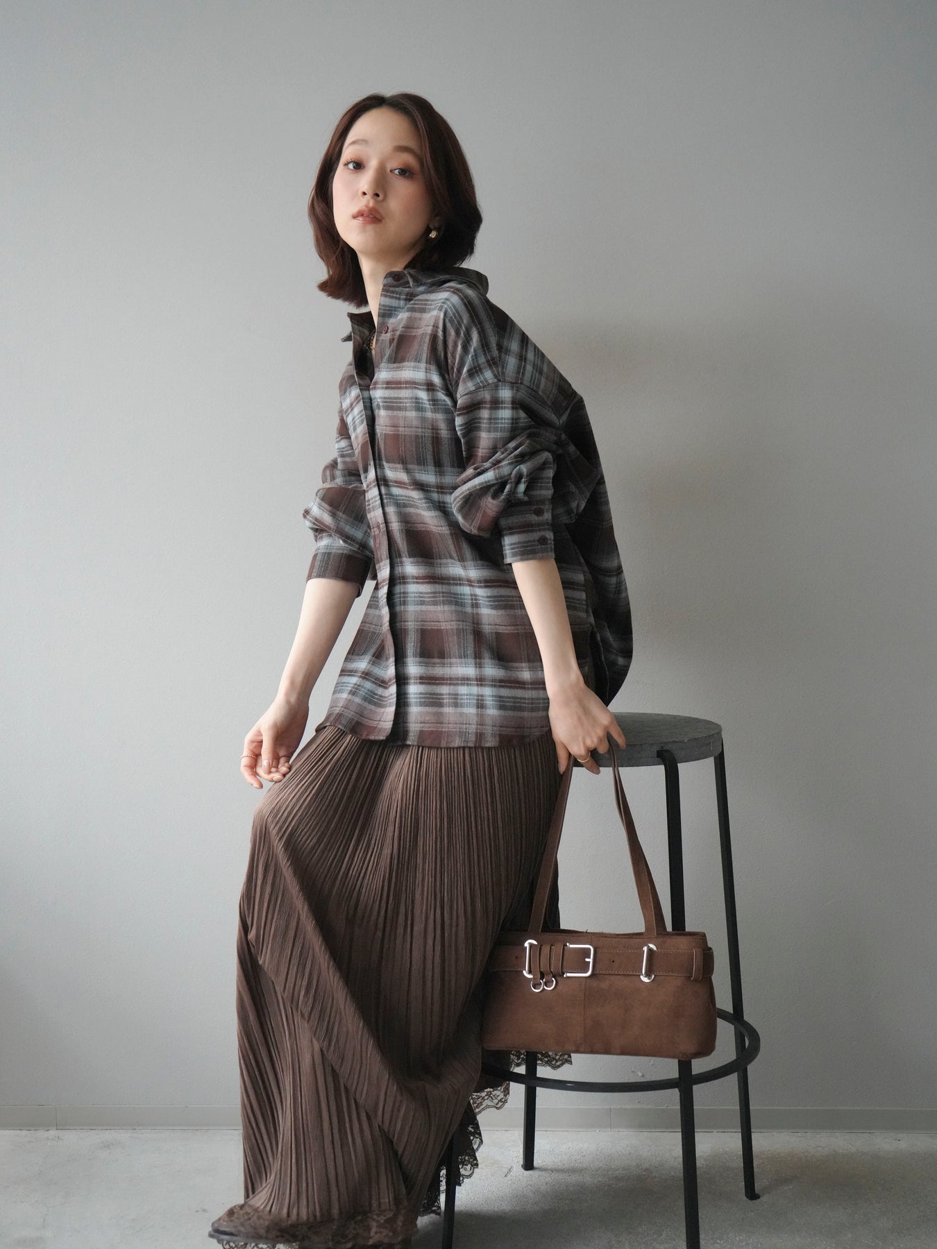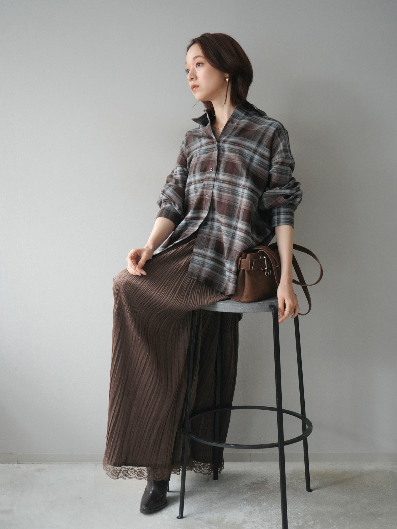 シーズンムード漂うチェック柄が魅力のマルチウェイシャツ。 前後2WAYで着用でき、羽織としてもトップスとしても活躍する万能アイテムです。 柔らかな素材感と程よいゆとりのあるシルエットで、リラックス感のある着心地。 裾に向かって緩やかにラウンドしたデザインが抜け感をプラスし、シンプルながらもこなれた印象に仕上げています。 デニムやスカートなど幅広いボトムと相性が良く、カジュアルにもフェミニンにも着こなせる一枚です。 ※ボトムス、キャミソール(インナー)以外の商品は一律でインナーは付属していません。
