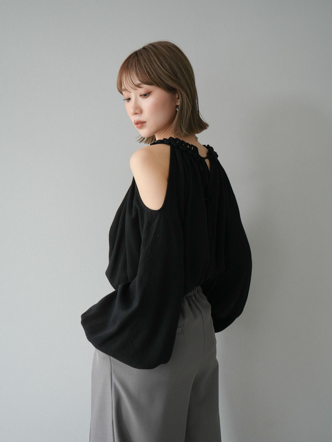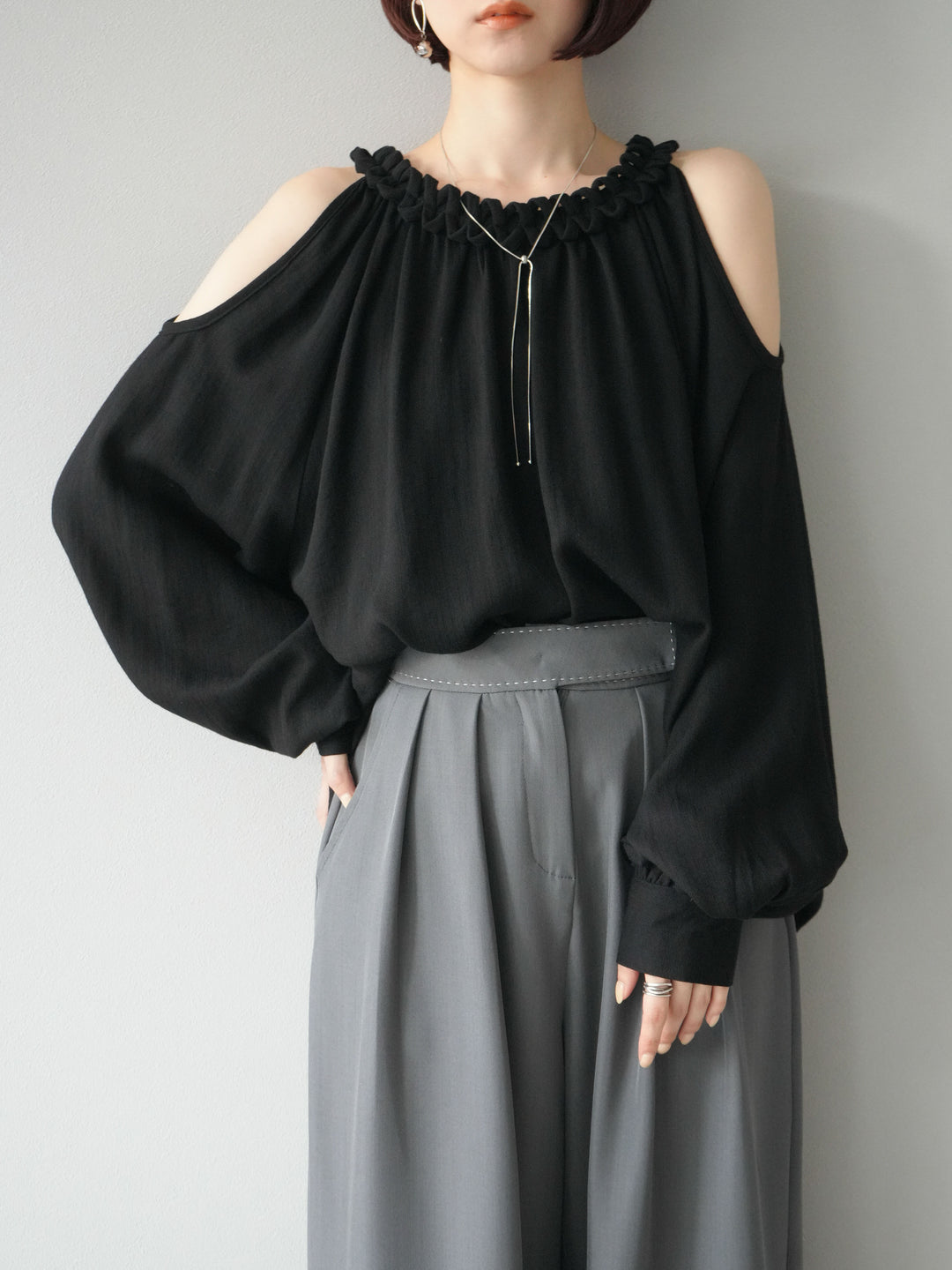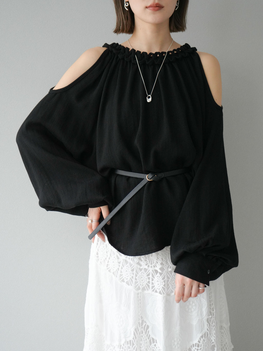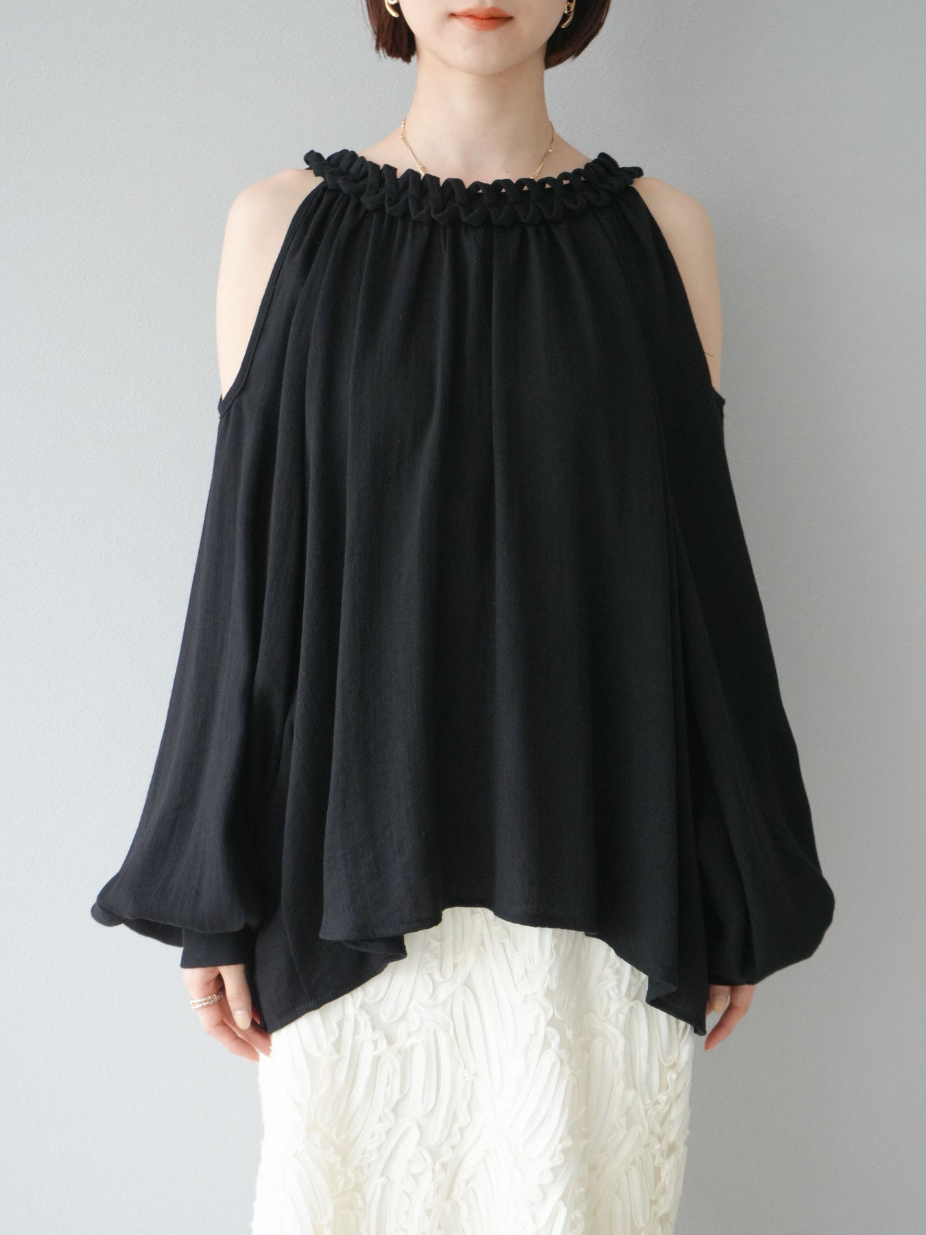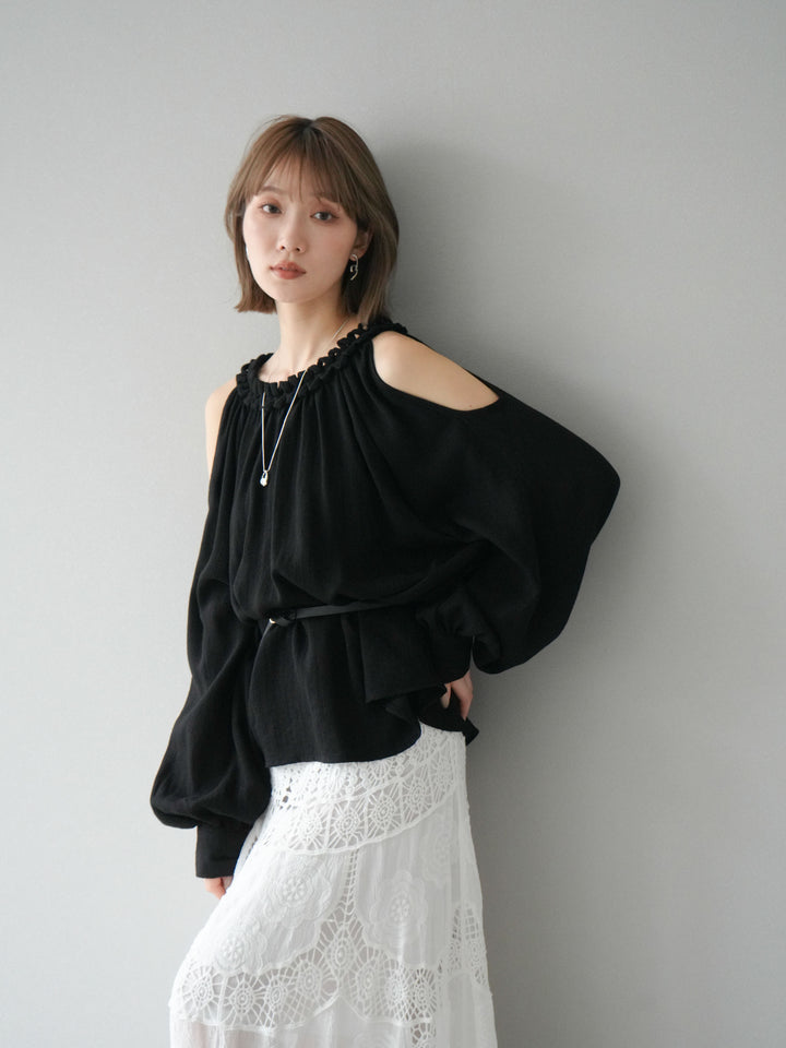 [予約]コードステッチオープンショルダーブラウス/ブラック