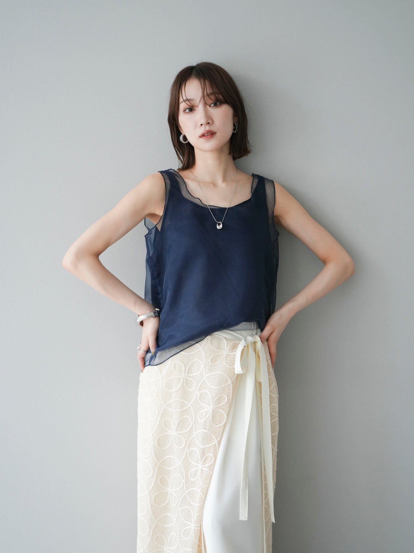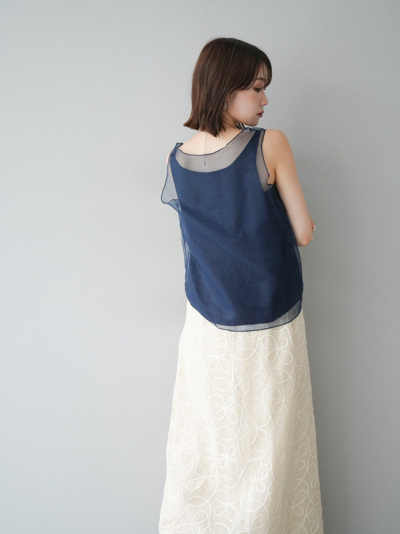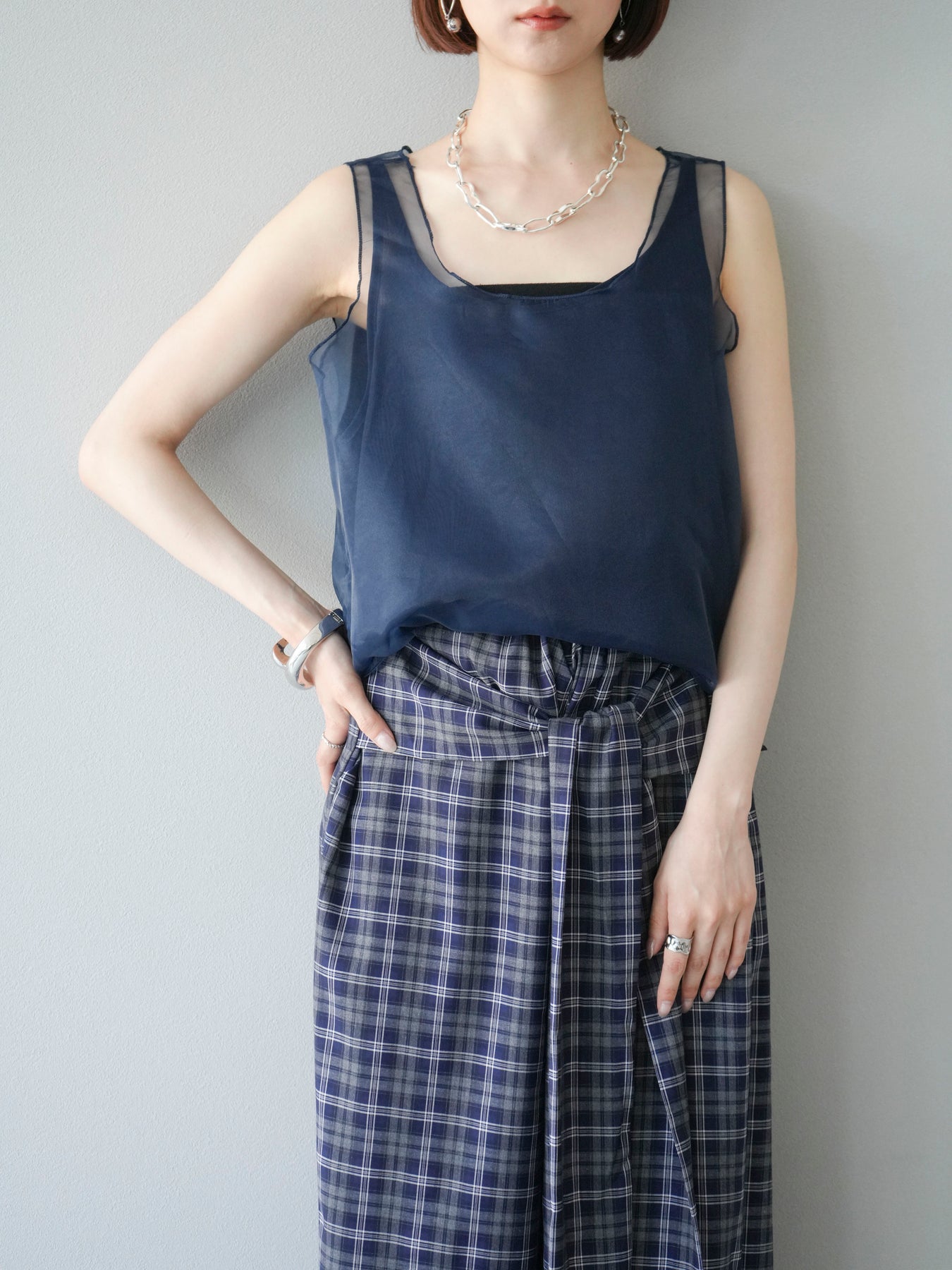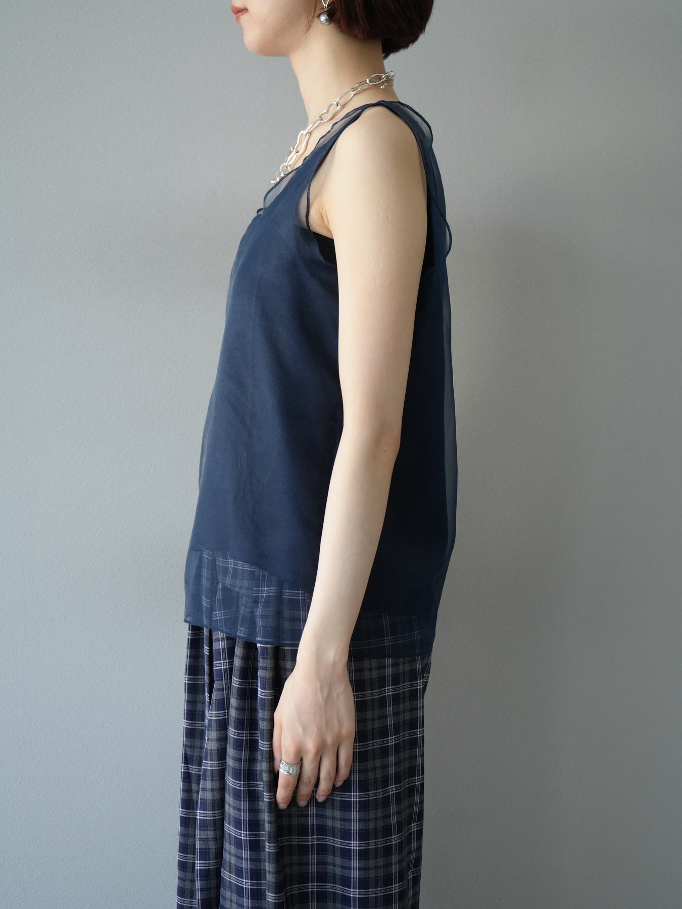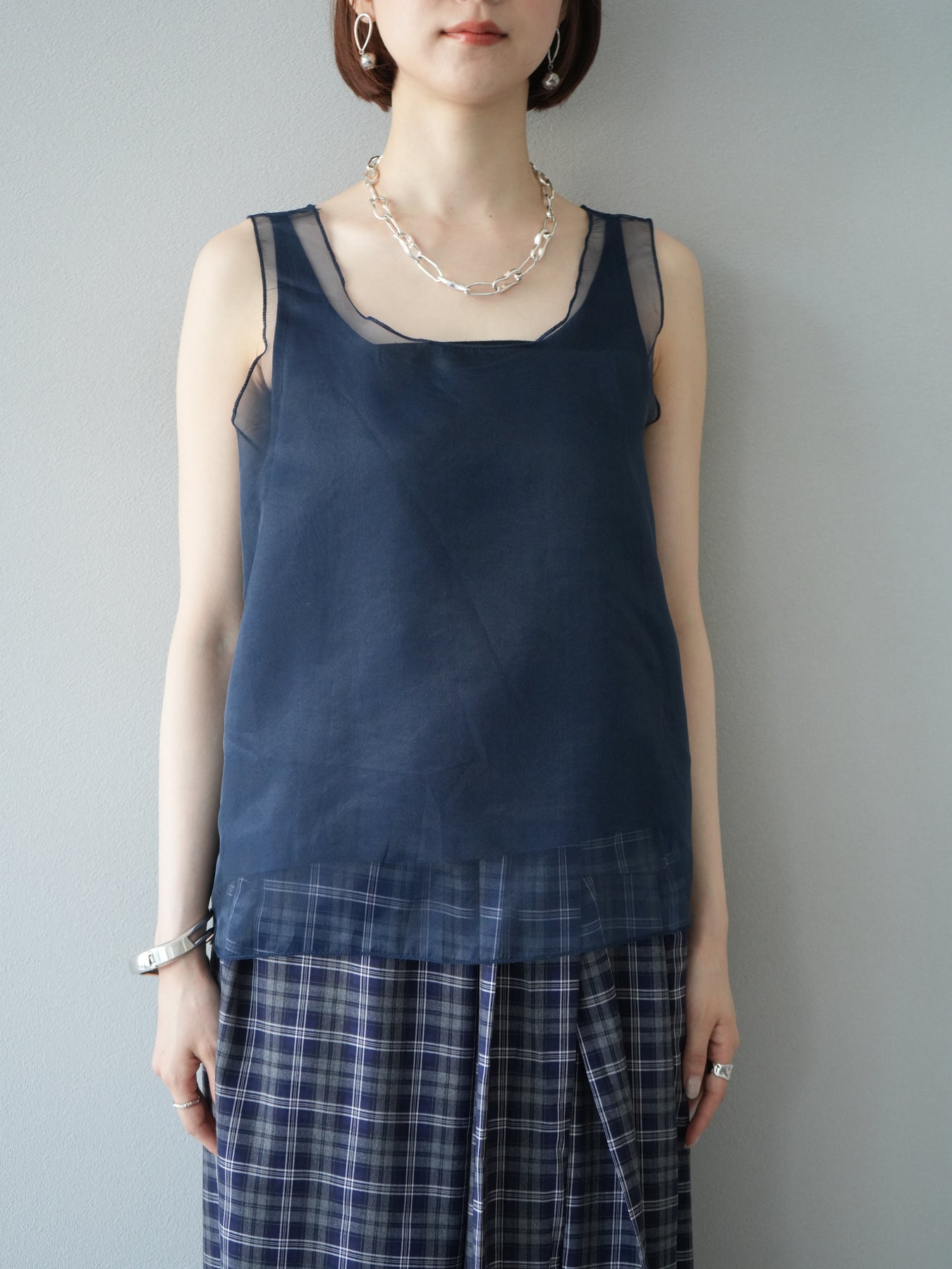 [予約]オーガンジーレイヤードタンクトップ/ネイビー