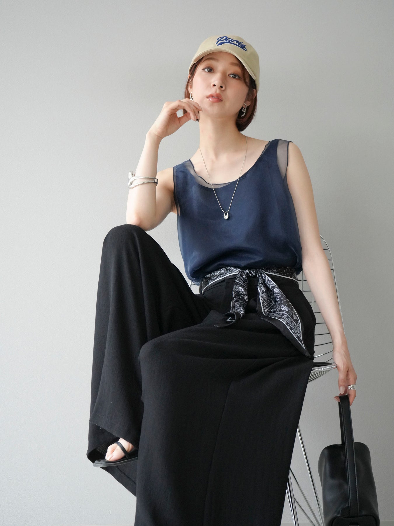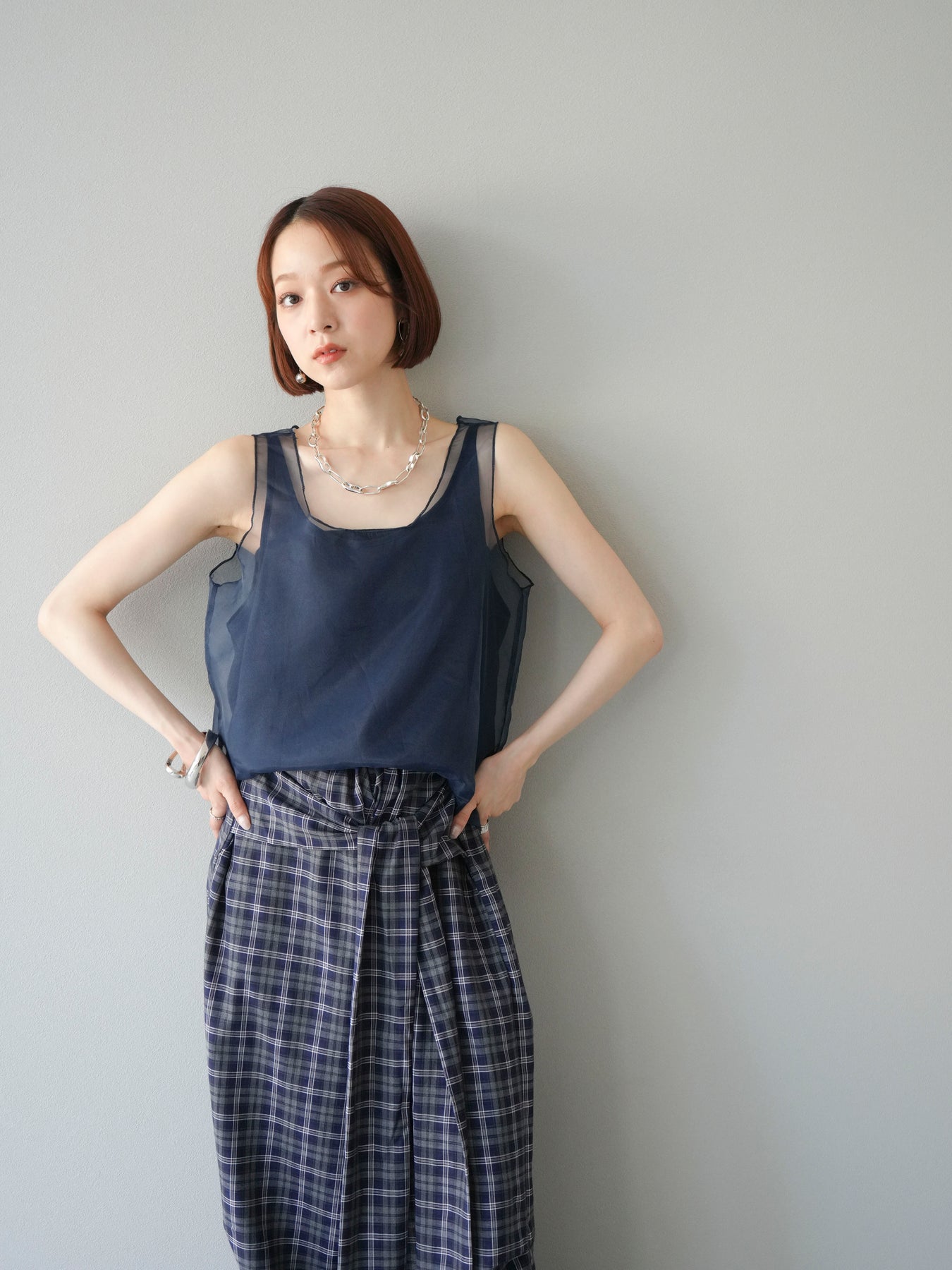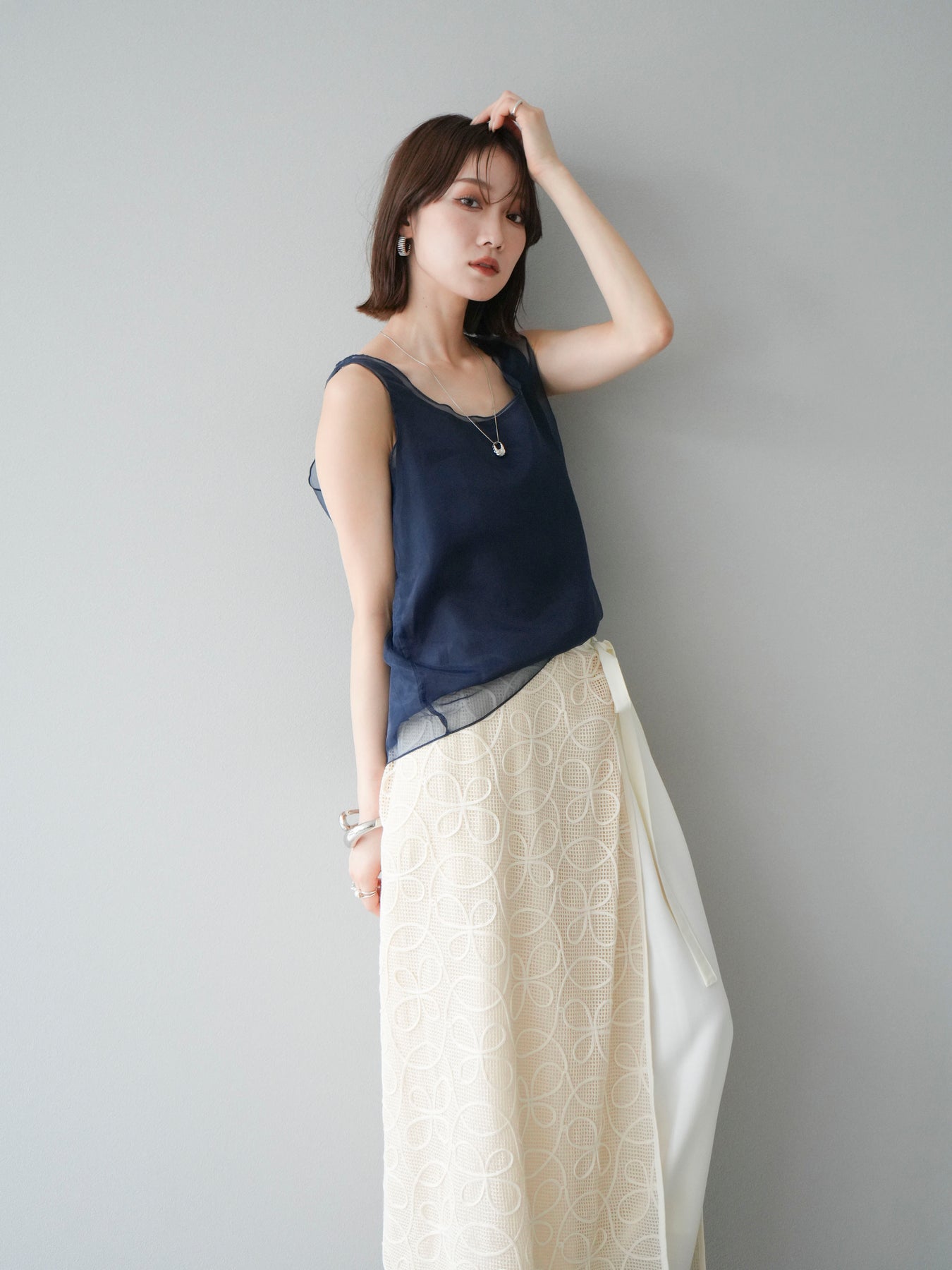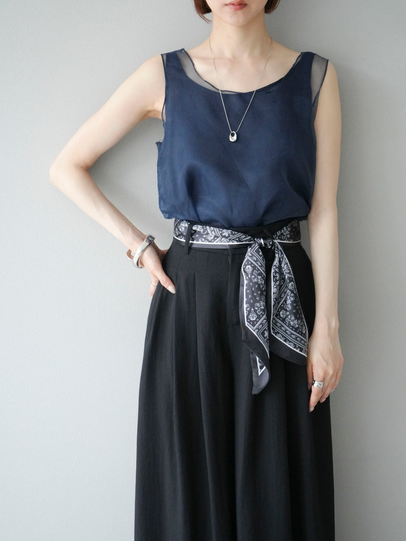 [予約]オーガンジーレイヤードタンクトップ/ネイビー