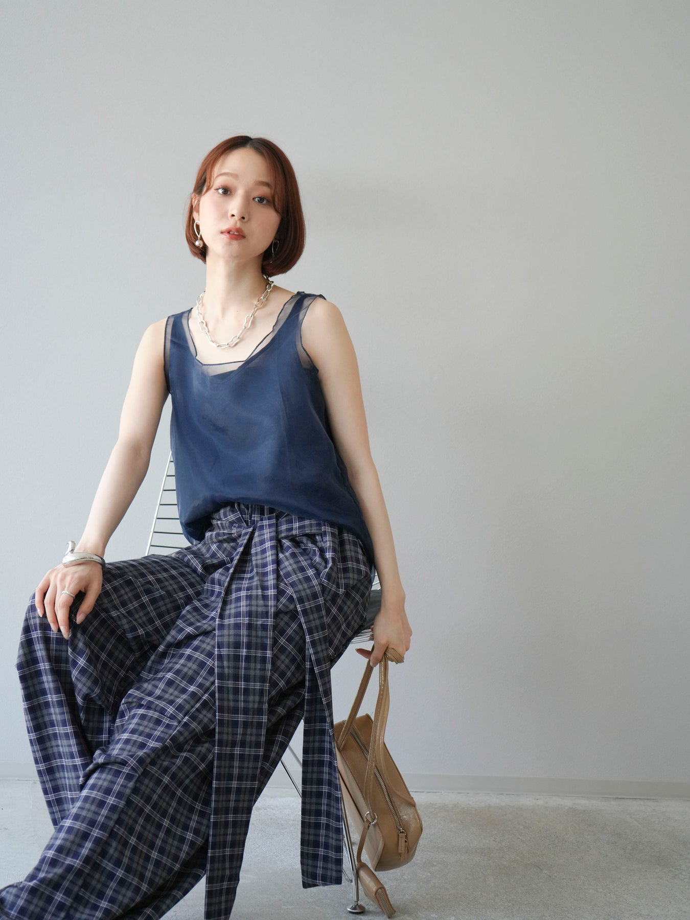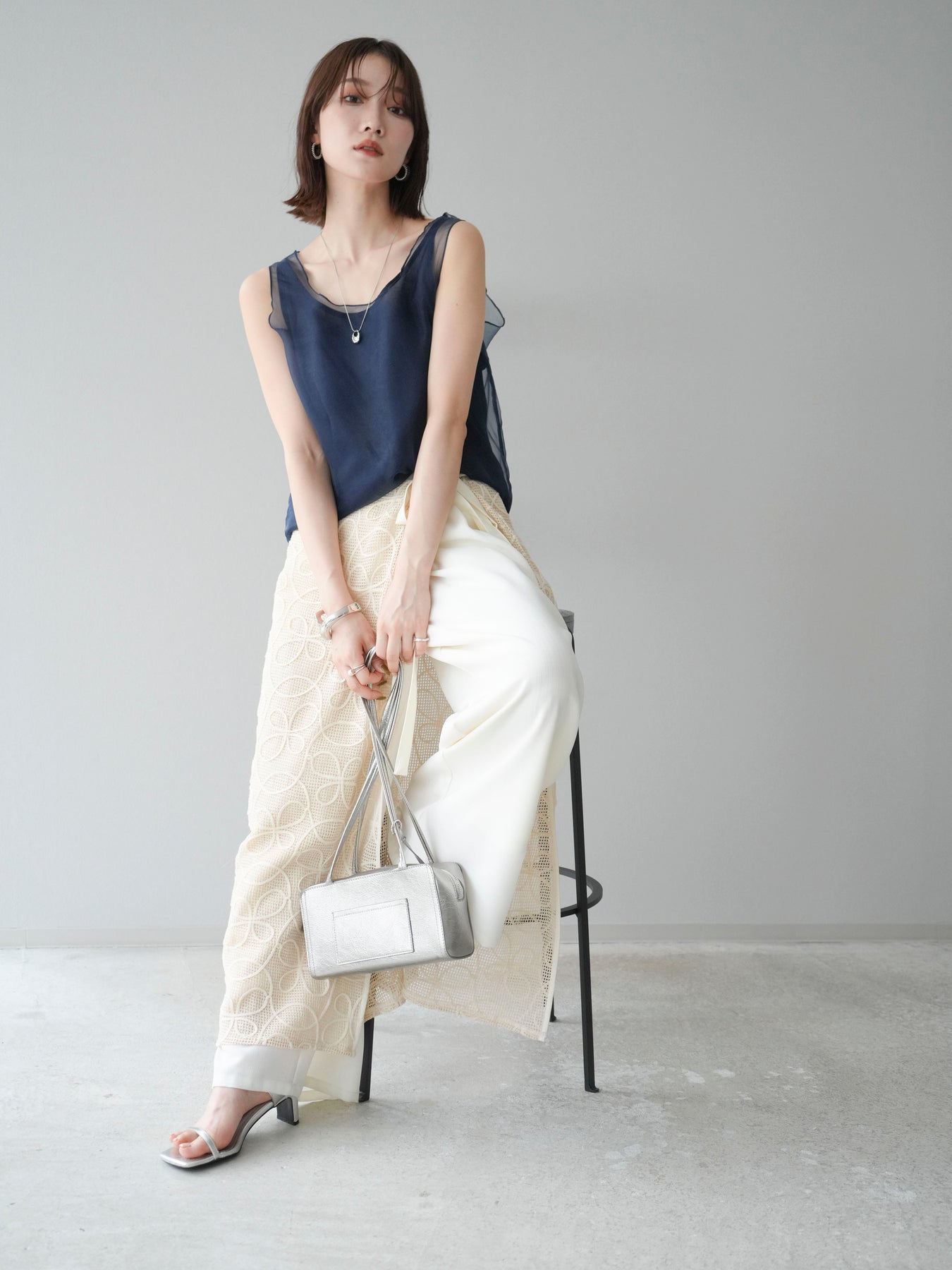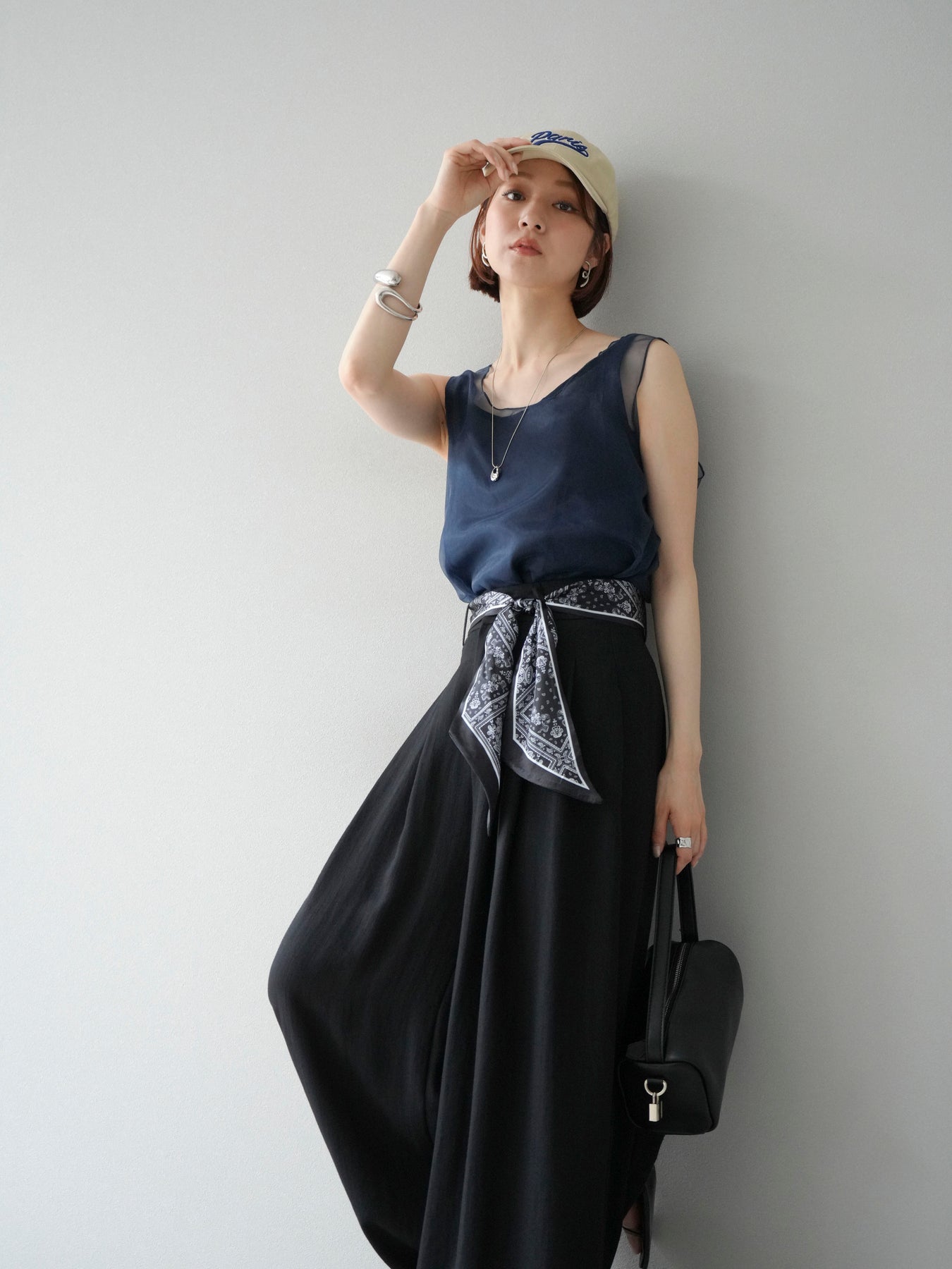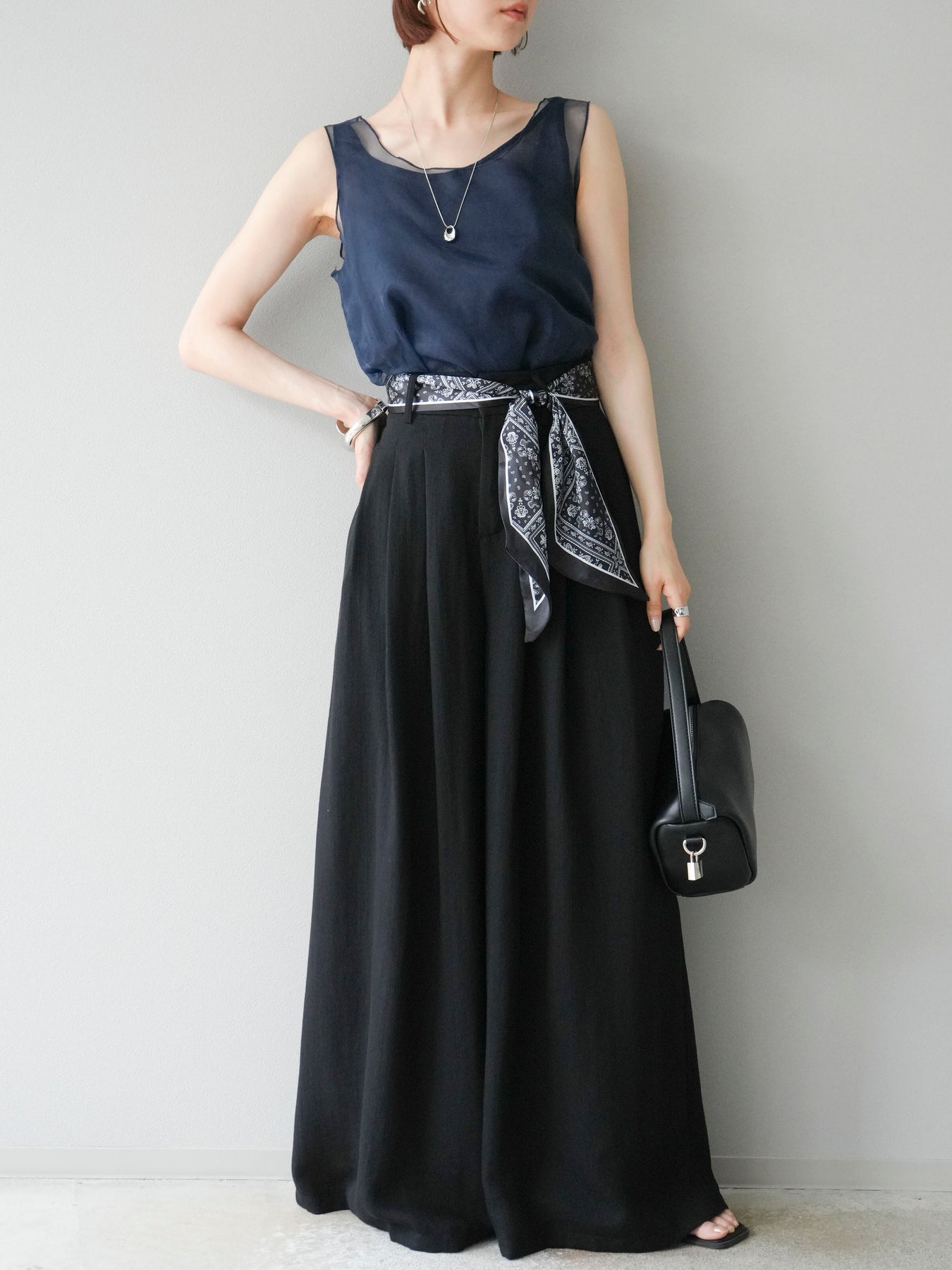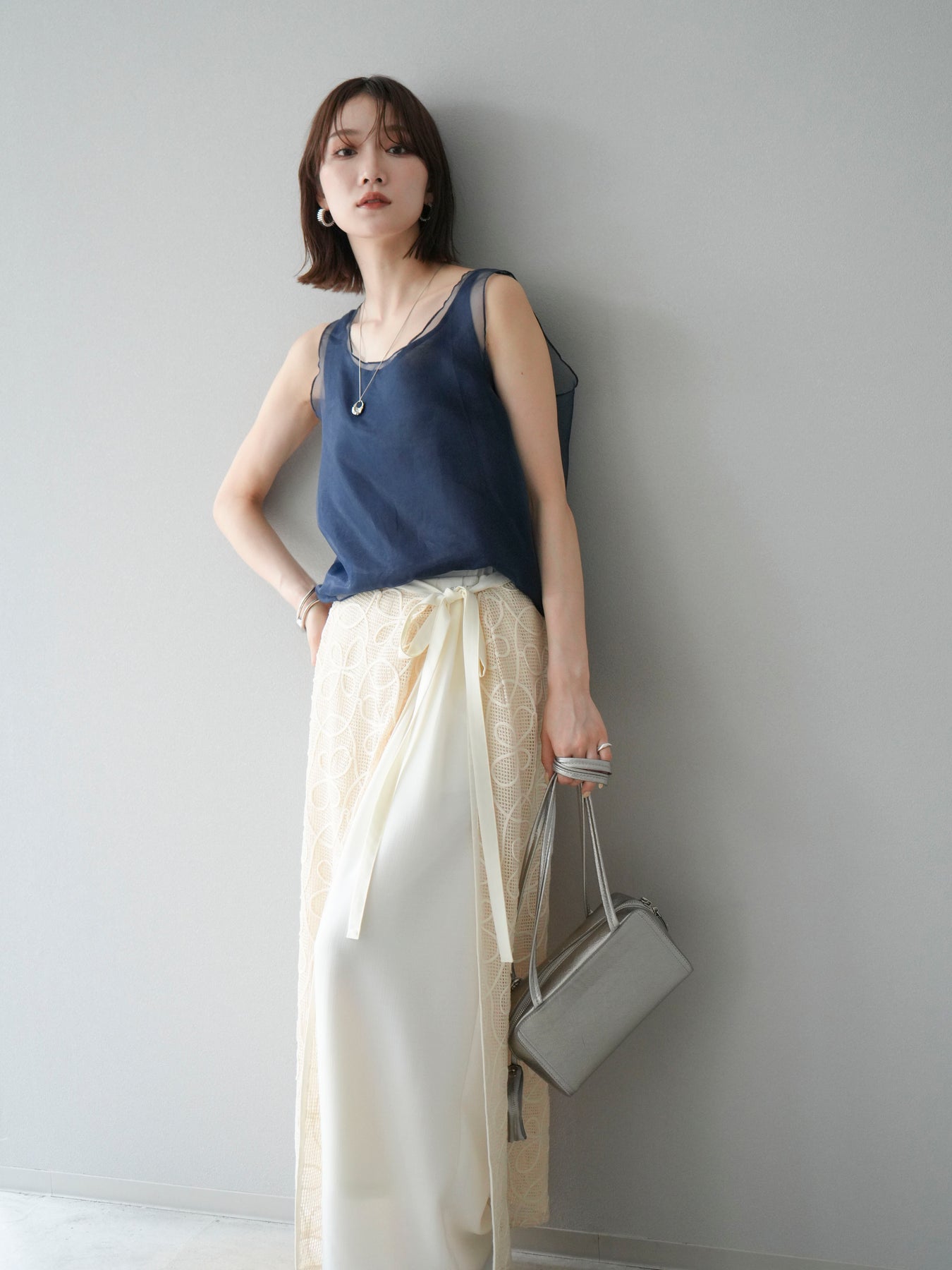 [予約]オーガンジーレイヤードタンクトップ/ネイビー