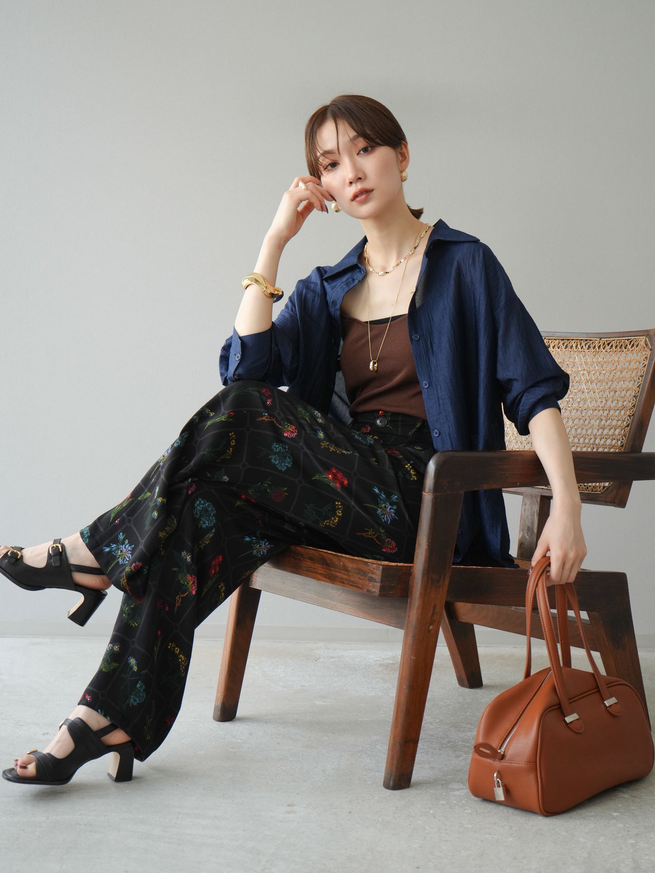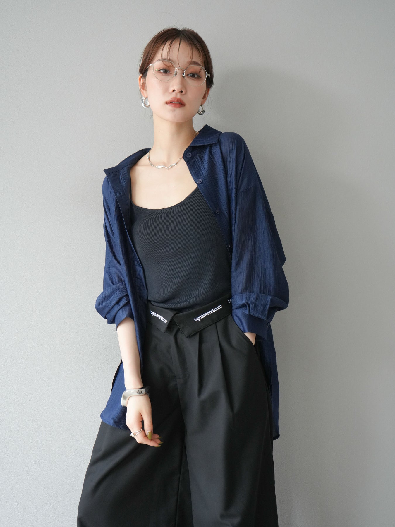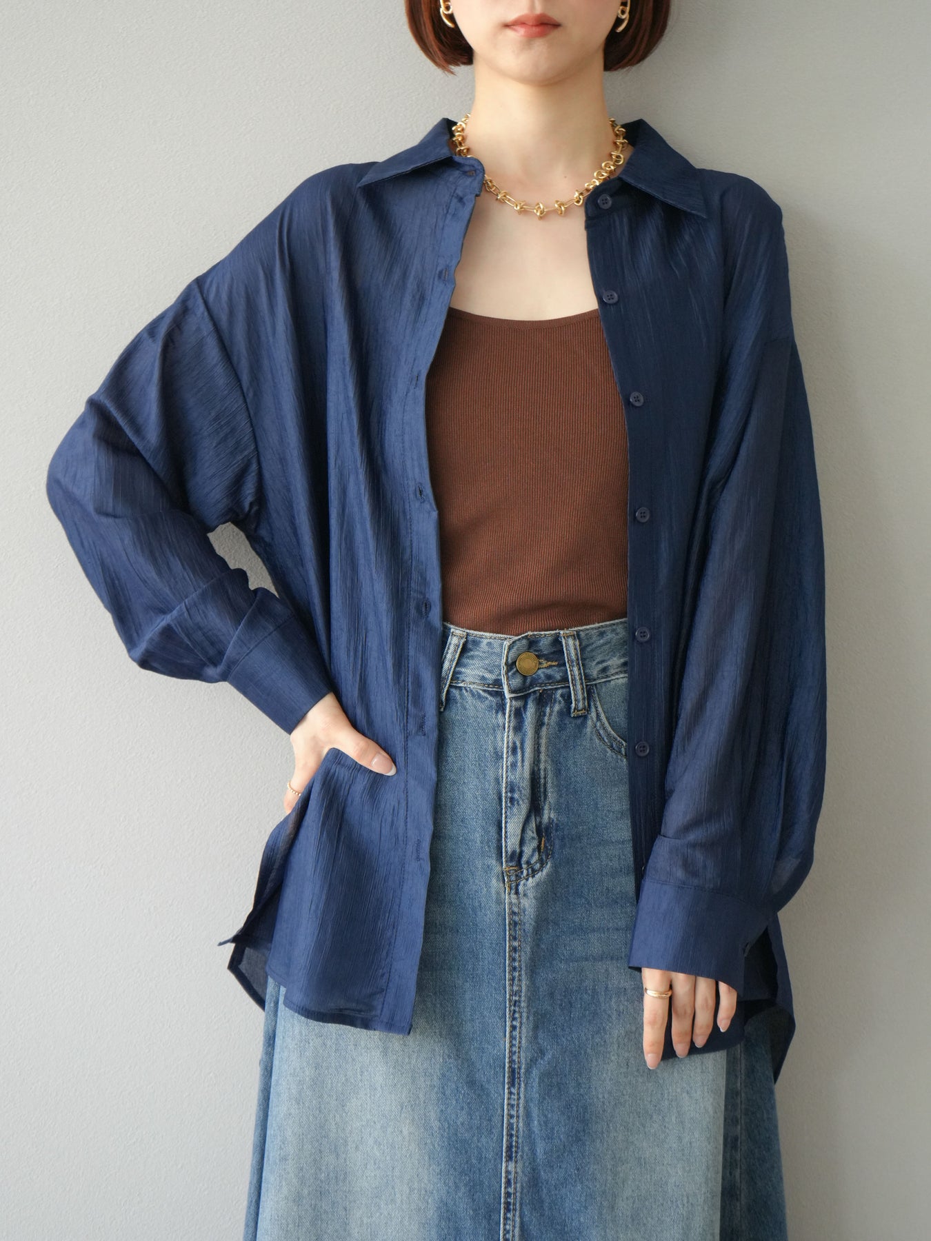ナチュラルなシワ感とさりげない光沢感が魅力の、ワッシャーシャイニーシャツ。軽やかで肌離れの良い素材が、春夏シーズンにぴったりの清涼感を演出します。 ゆったりとしたシルエットに加え、肩落ちデザインとロングカフスがリラクシーな抜け感をプラス。ボタンを開けて羽織としても、閉じてトップスとしても着回せる万能アイテムです。 きれいめにもカジュアルにもマッチし、幅広いスタイリングで活躍してくれます。 ※ボトムス、キャミソール(インナー)以外の商品は一律でインナーは付属していません。