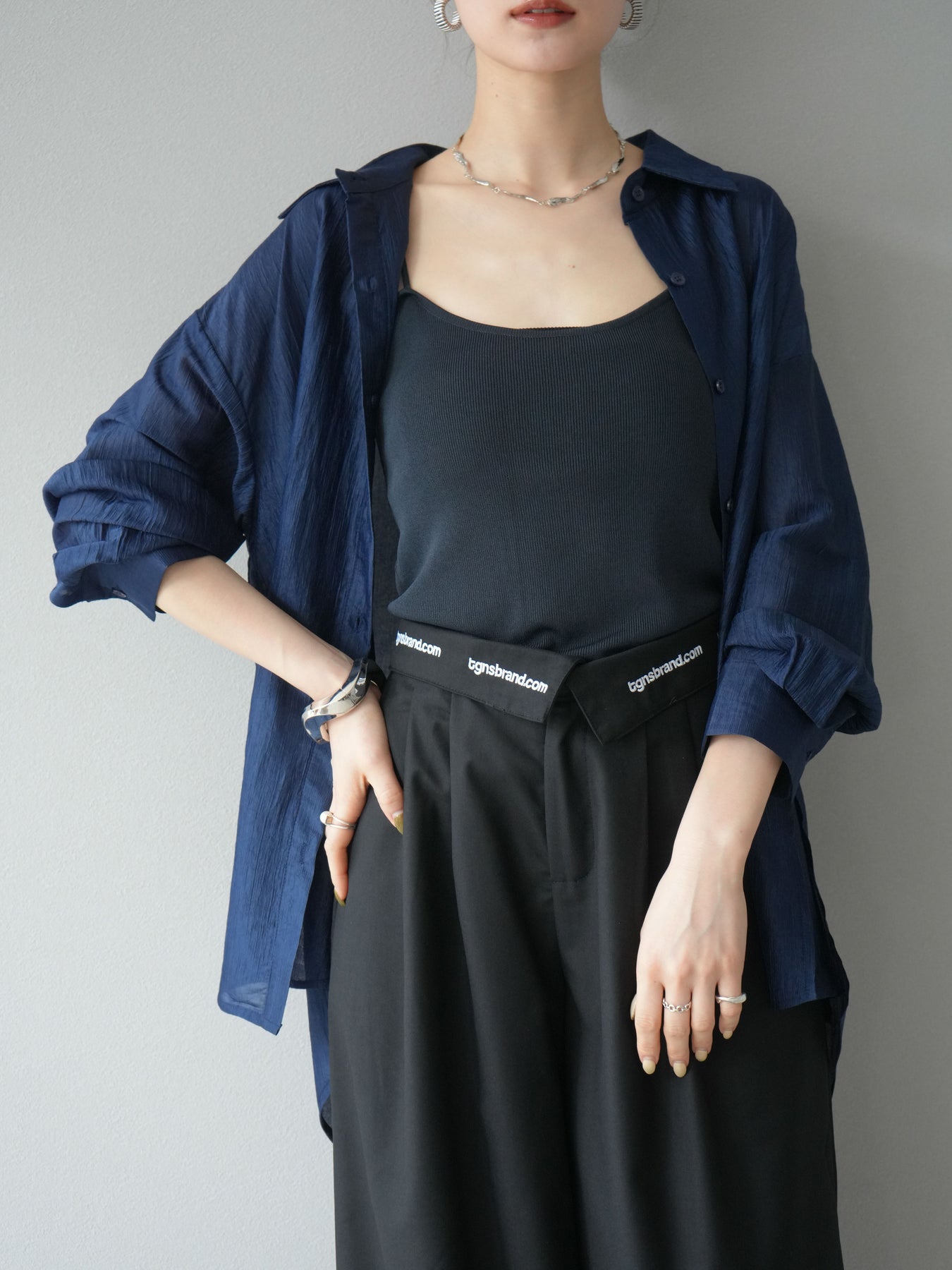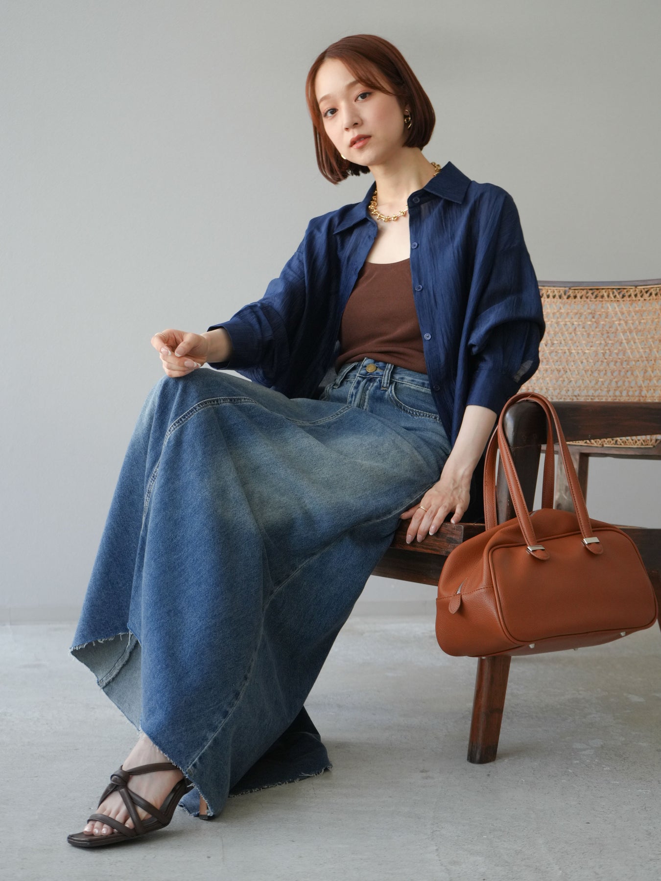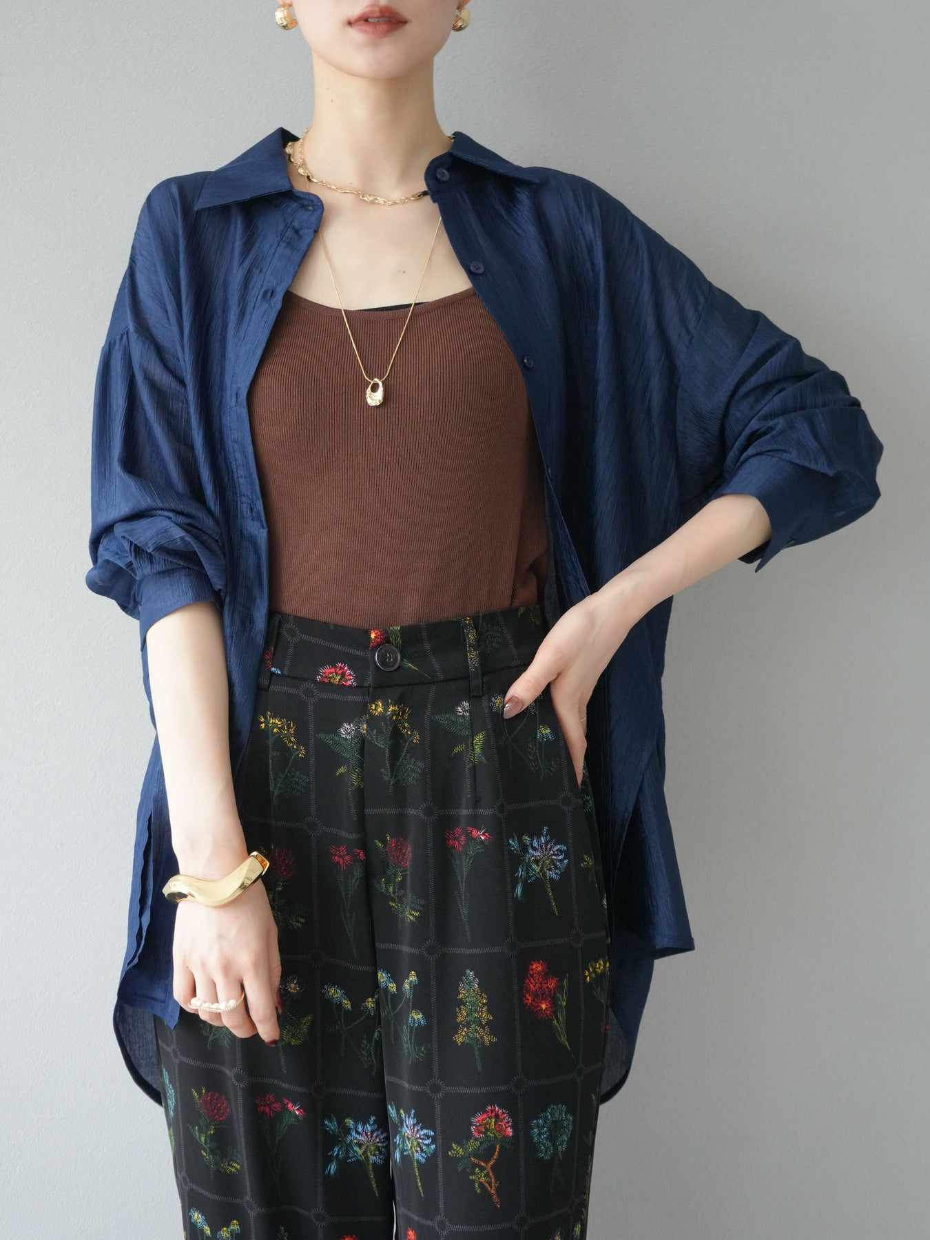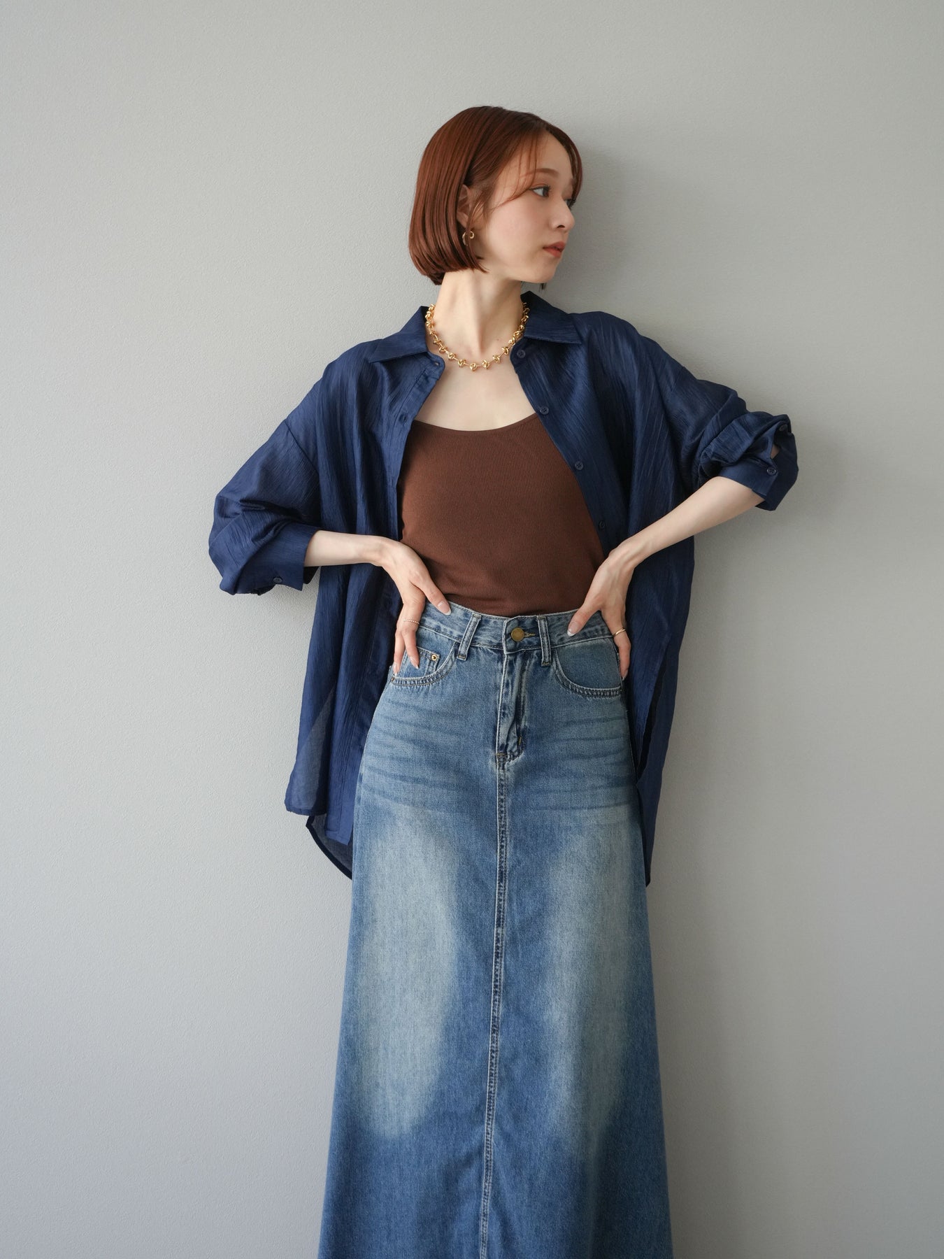ナチュラルなシワ感とさりげない光沢感が魅力の、ワッシャーシャイニーシャツ。軽やかで肌離れの良い素材が、春夏シーズンにぴったりの清涼感を演出します。 ゆったりとしたシルエットに加え、肩落ちデザインとロングカフスがリラクシーな抜け感をプラス。ボタンを開けて羽織としても、閉じてトップスとしても着回せる万能アイテムです。 きれいめにもカジュアルにもマッチし、幅広いスタイリングで活躍してくれます。 ※ボトムス、キャミソール(インナー)以外の商品は一律でインナーは付属していません。