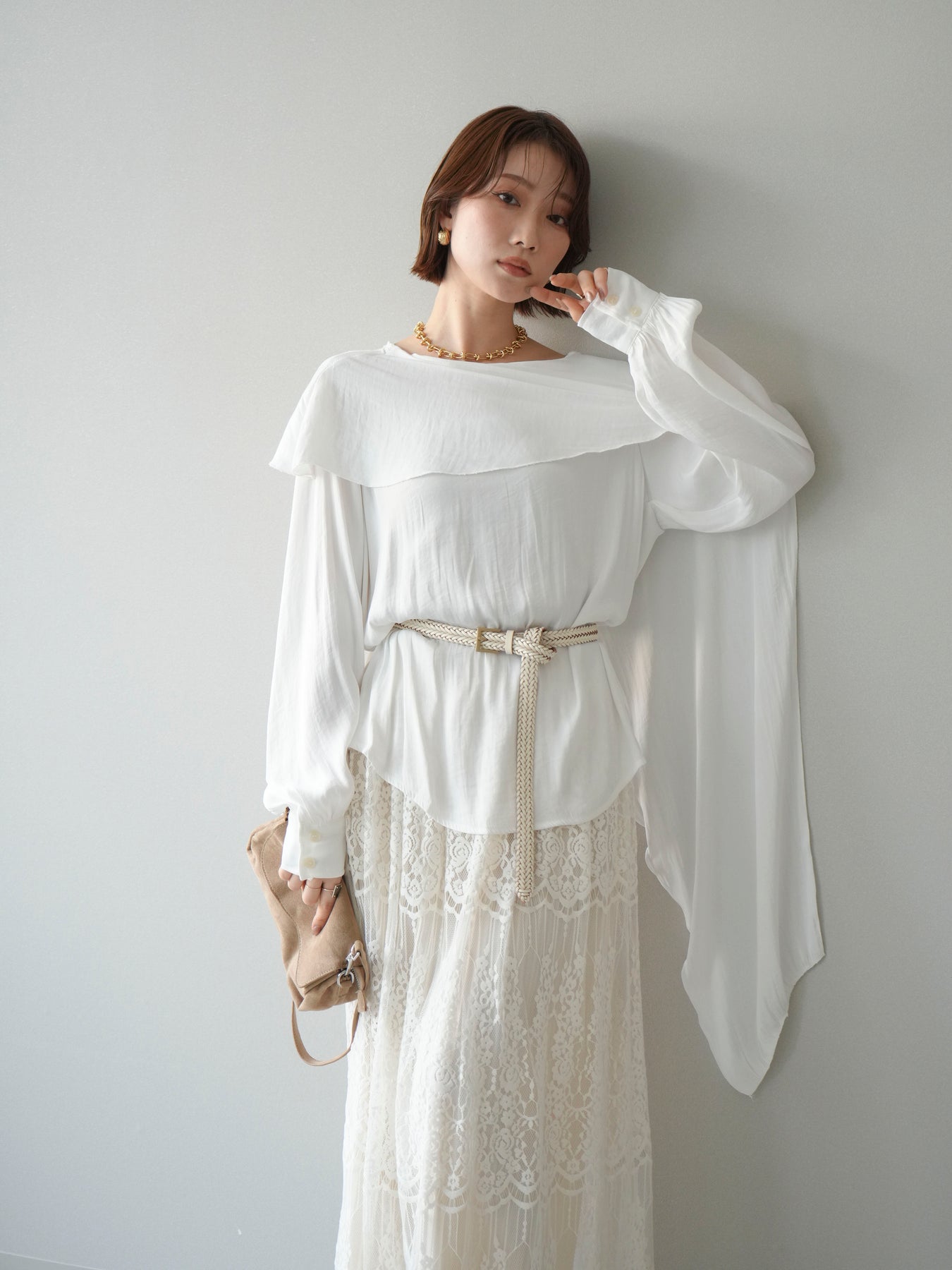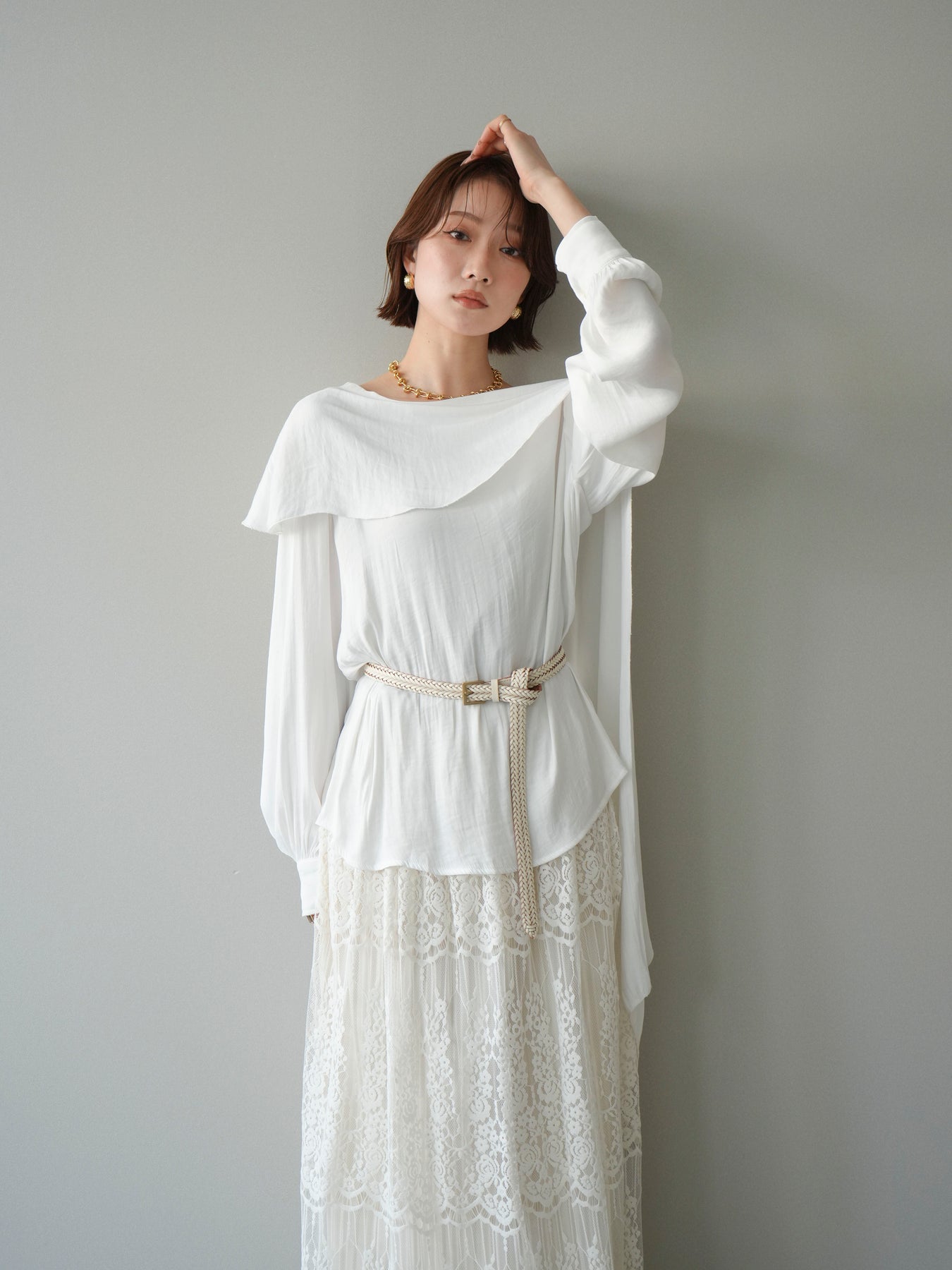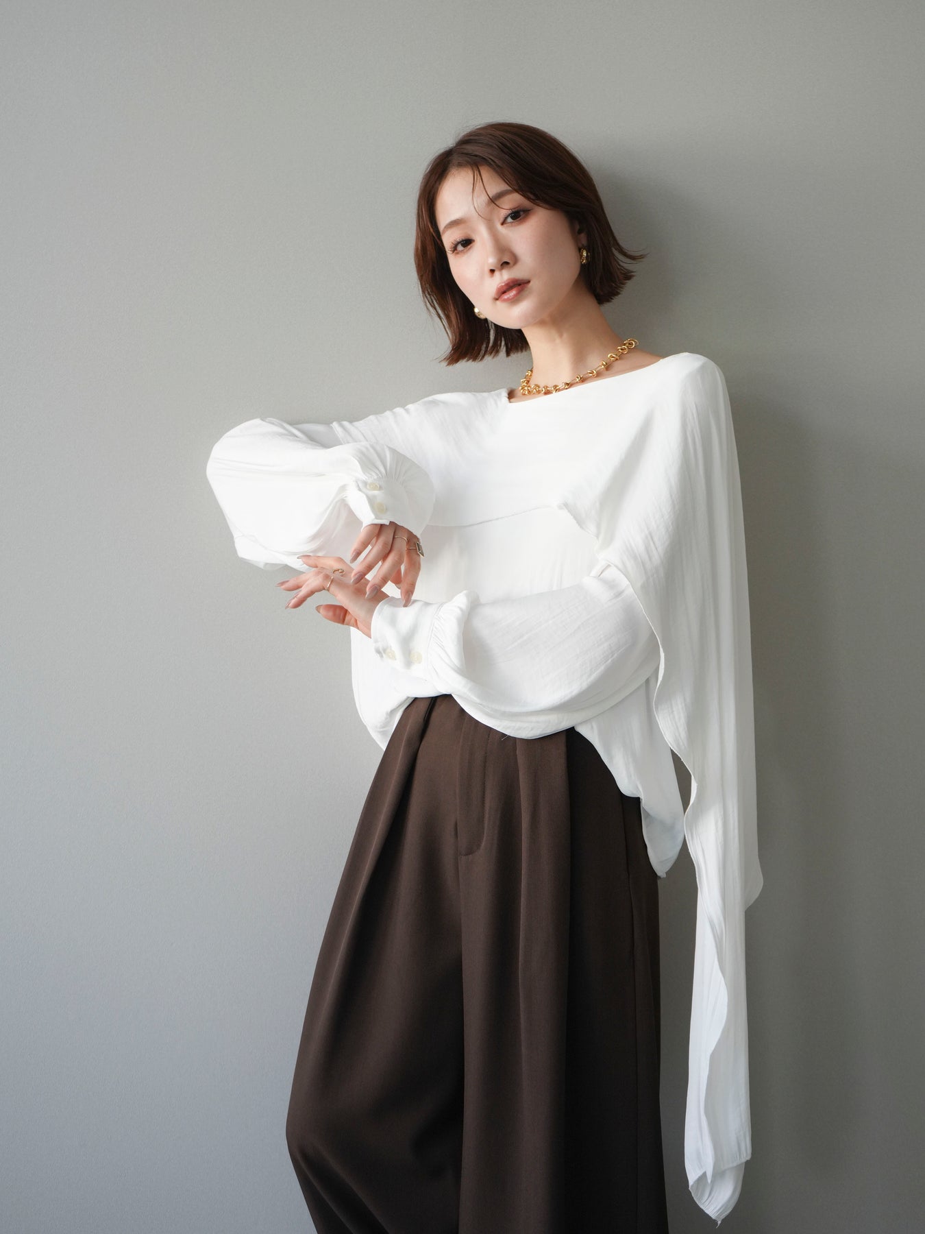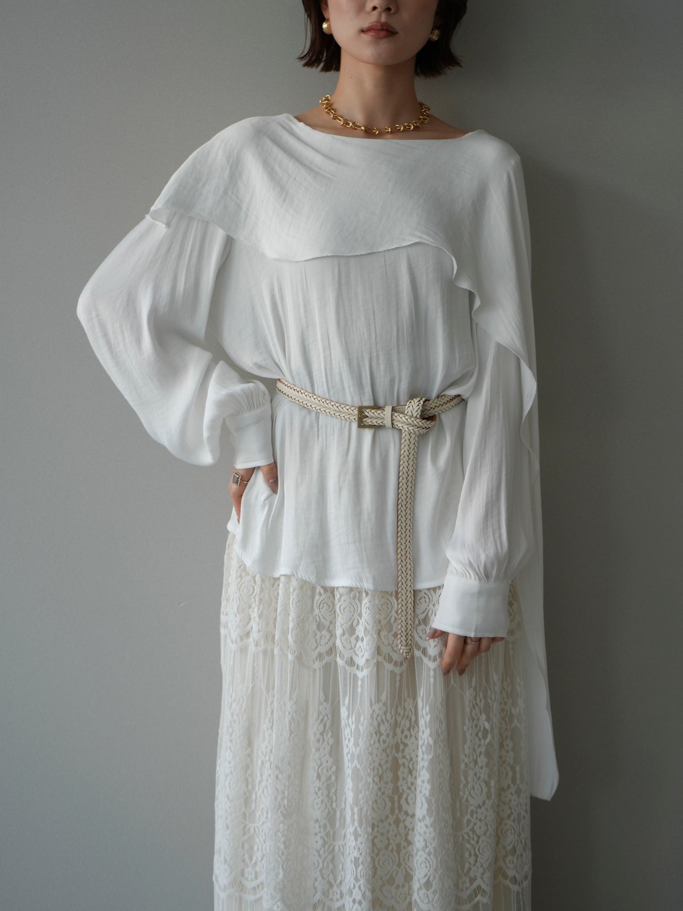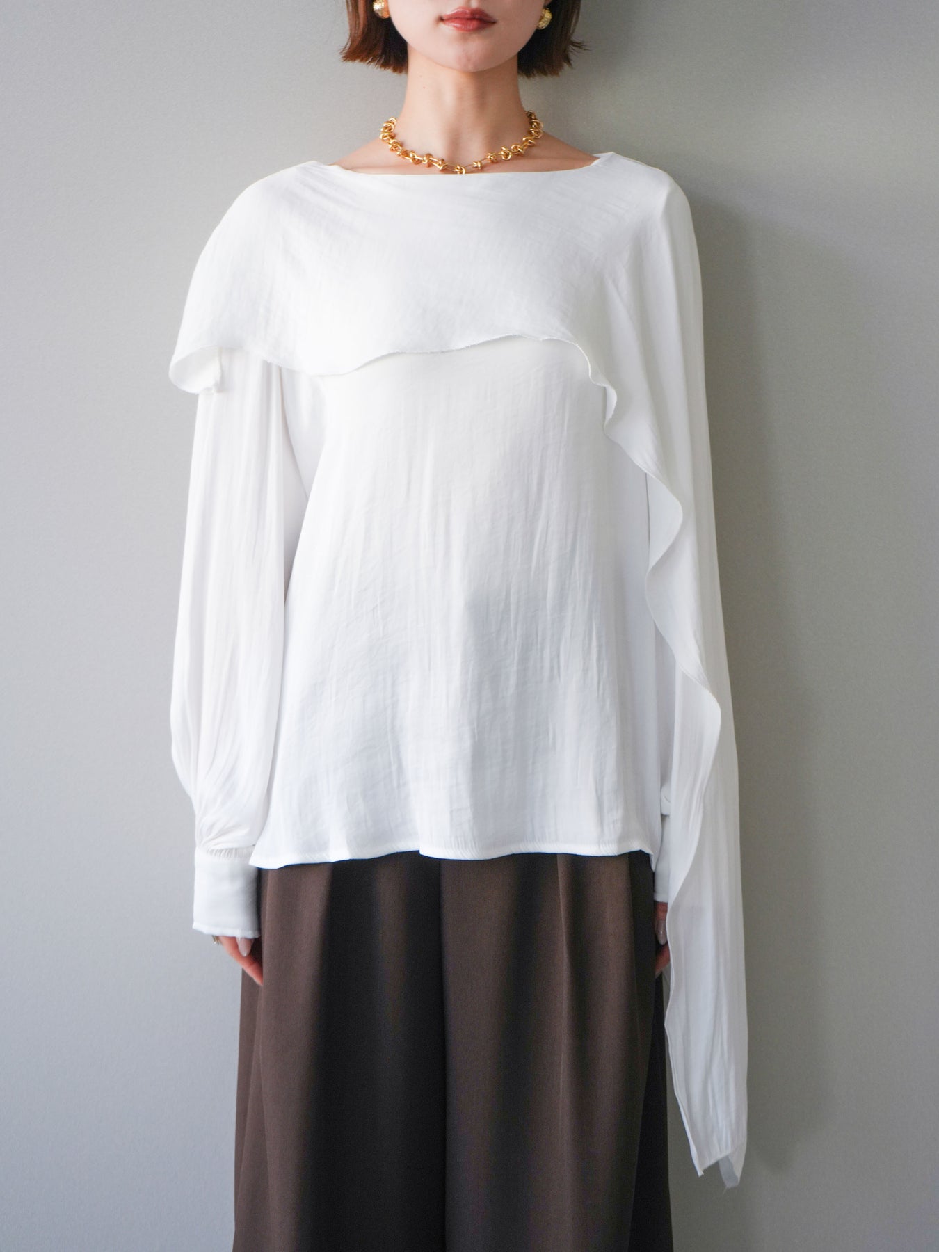[予約]シルキードレープブラウス/white