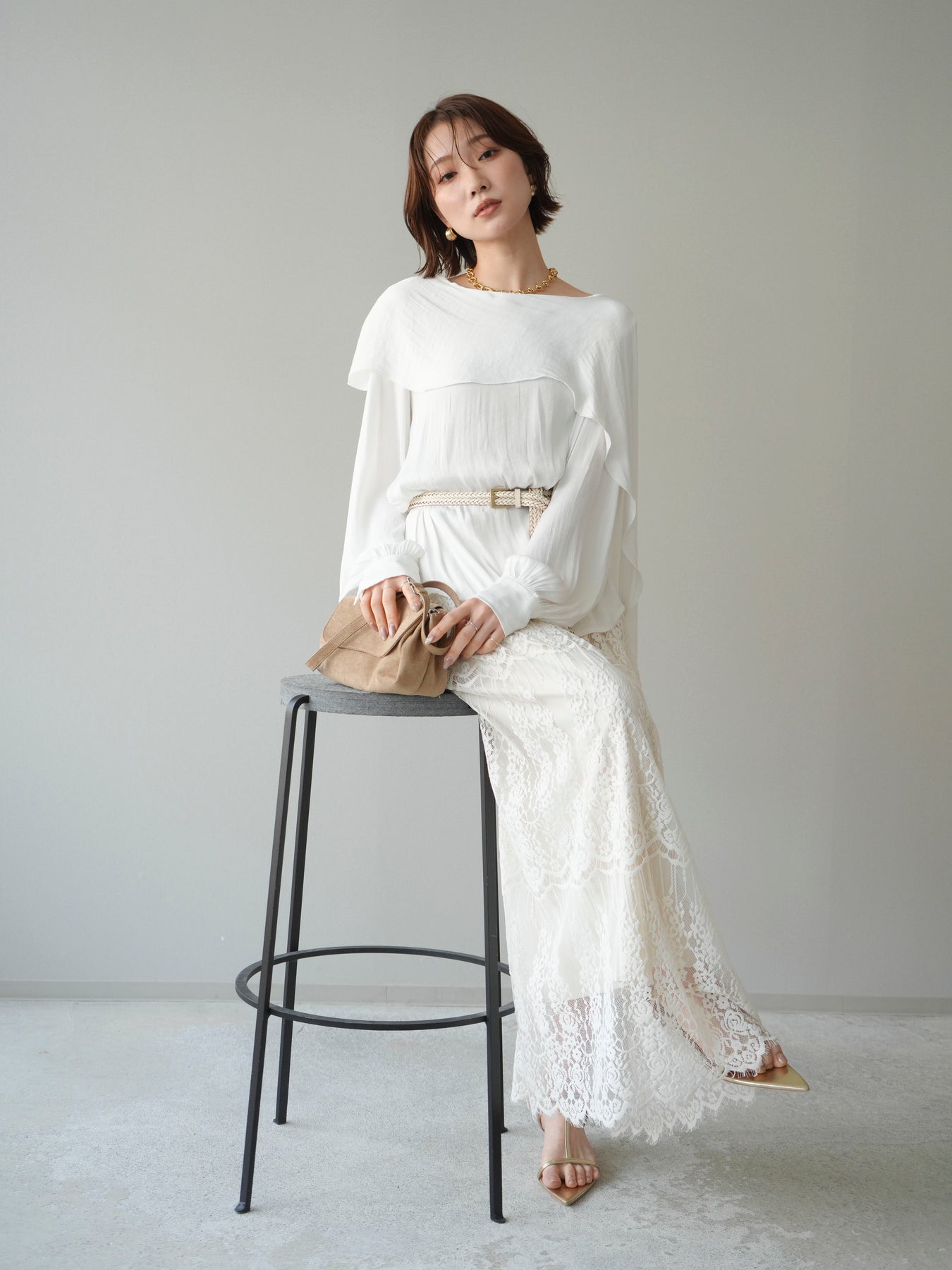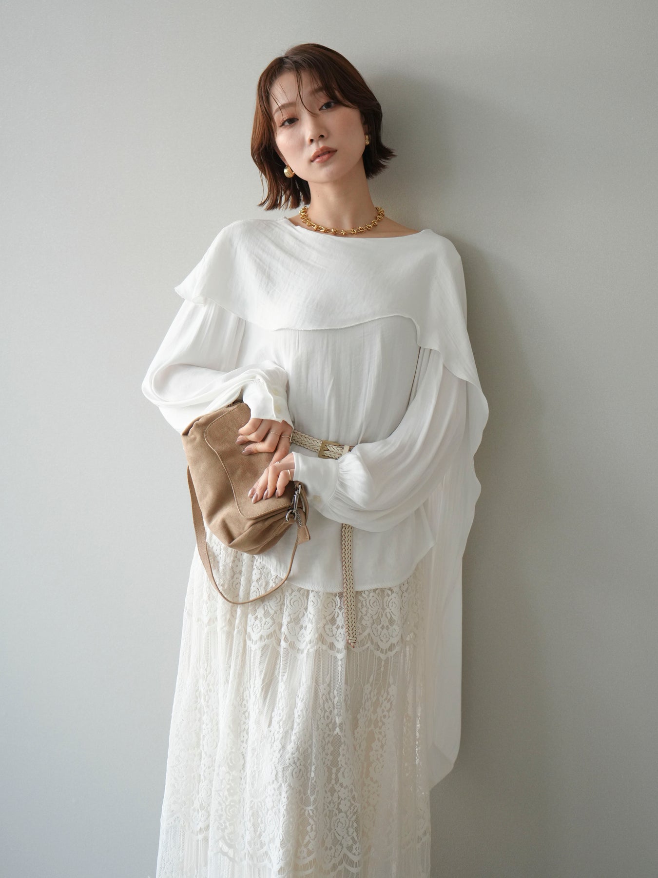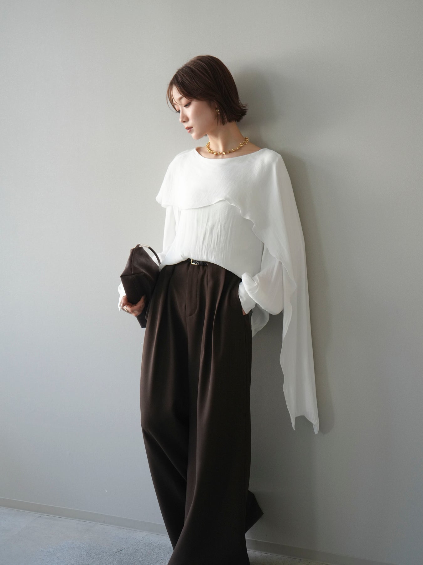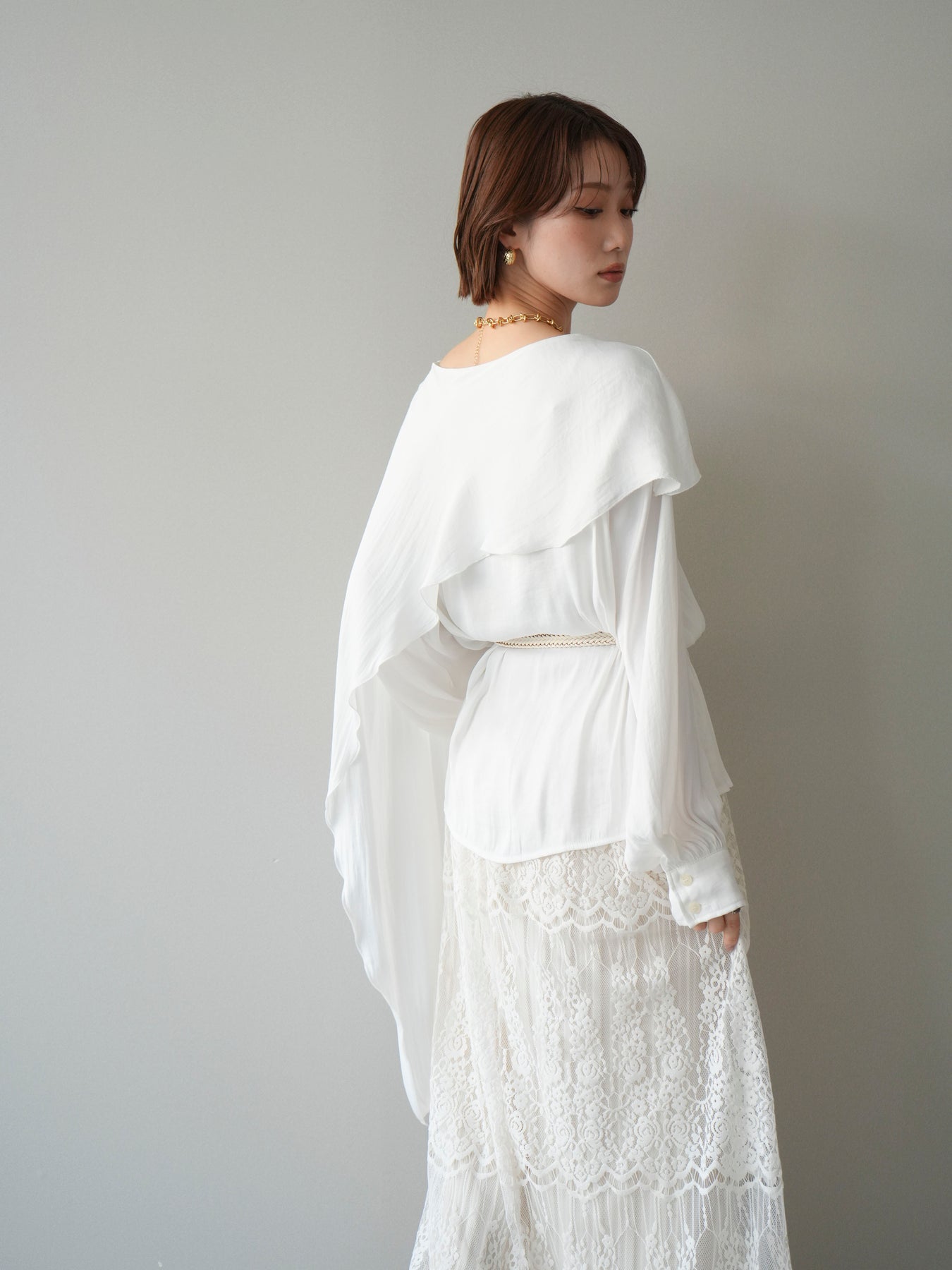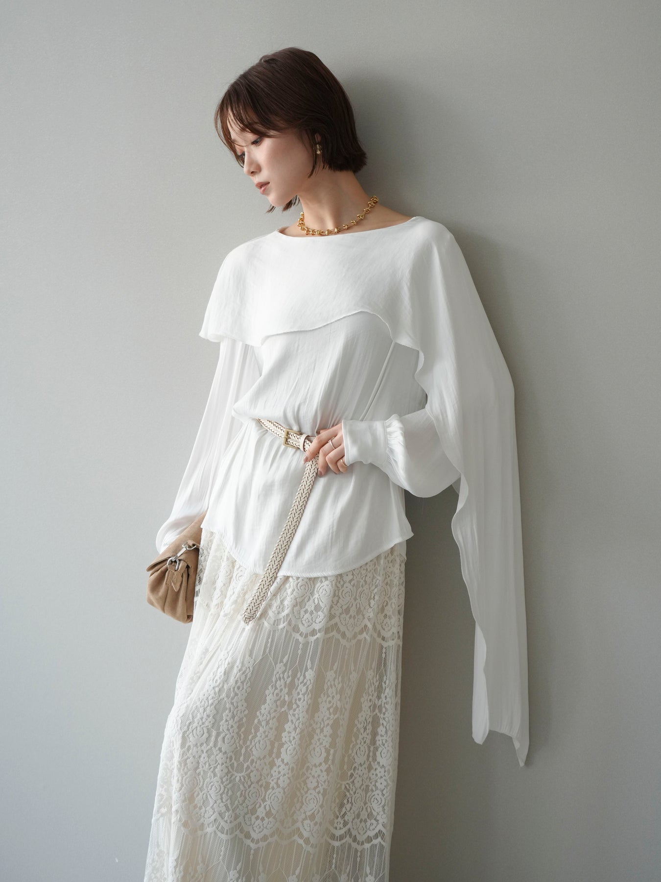 [予約]シルキードレープブラウス/white
