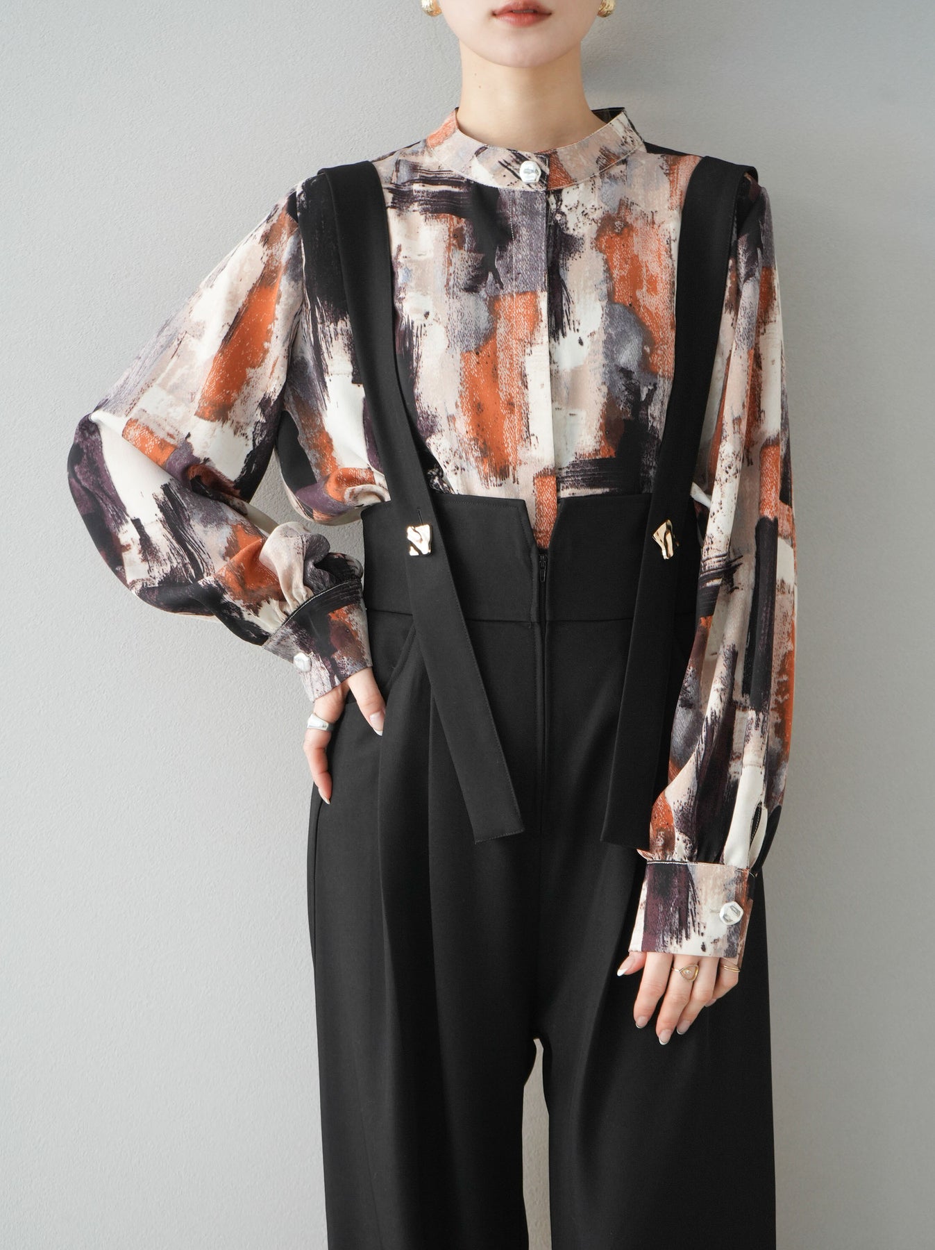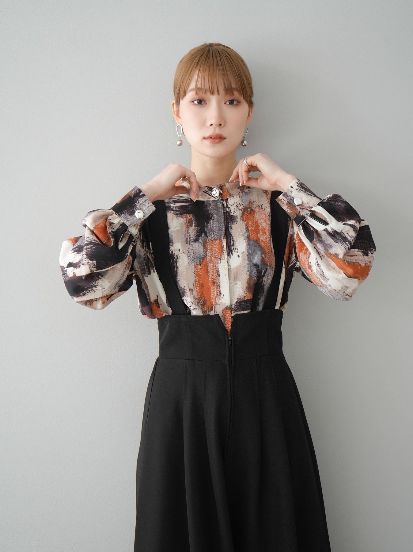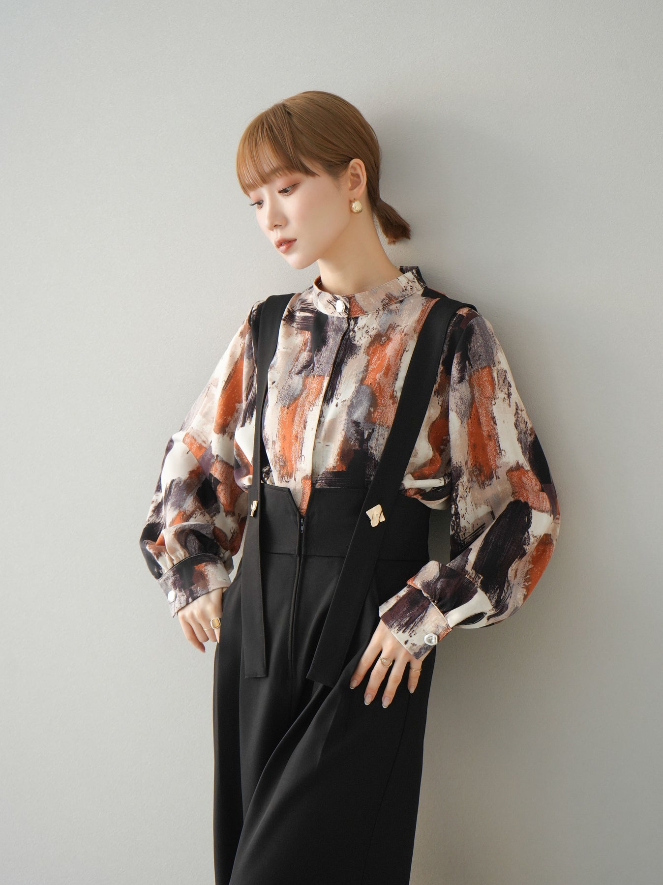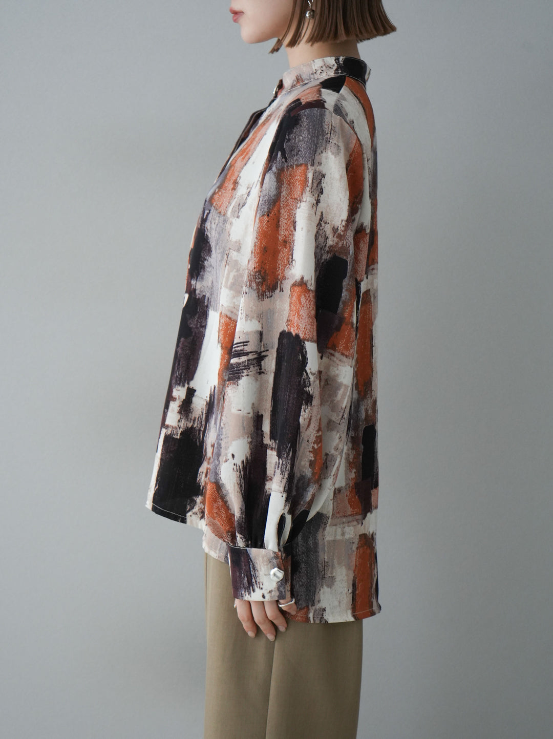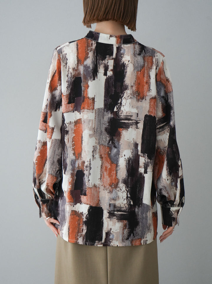 トレンドのアートライクなペイント柄が目を引くデザインシャツ。程よくゆとりのあるシルエットとボリュームスリーブが、こなれ感を演出します。襟元はすっきりとしたバンドカラーで、ジャケットやカーディガンとも好相性。デニムでカジュアルに、スラックスやタイトスカートと合わせてモードに着こなすのもおすすめ。シンプルなボトムスと合わせるだけで、洗練された着こなしが完成します。 ※ボトムス、キャミソール(インナー)以外の商品は一律でインナーは付属していません