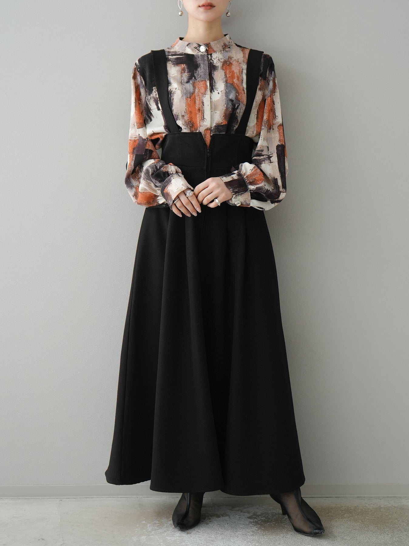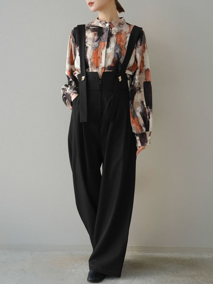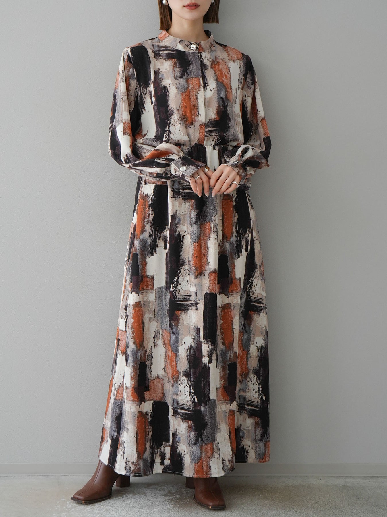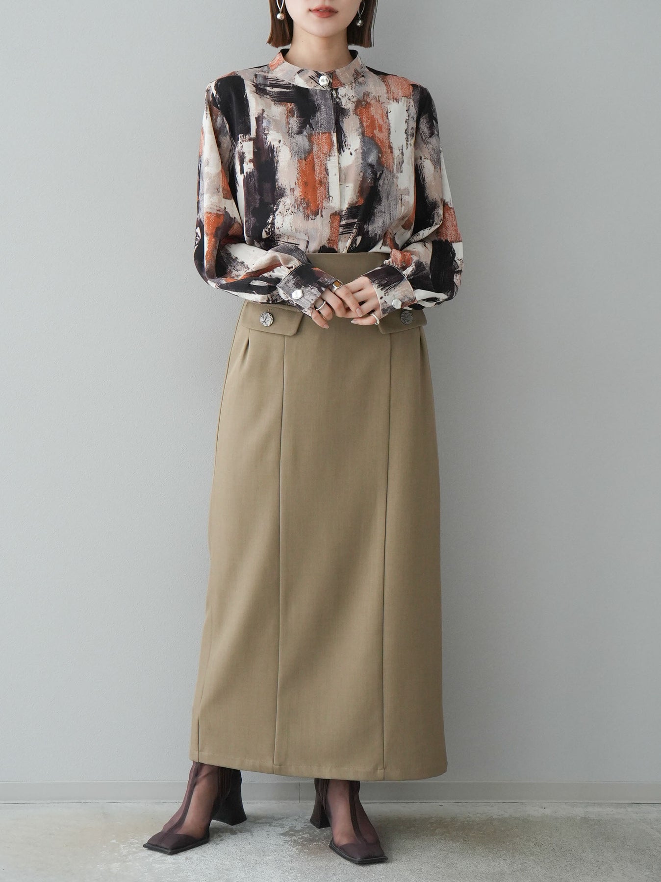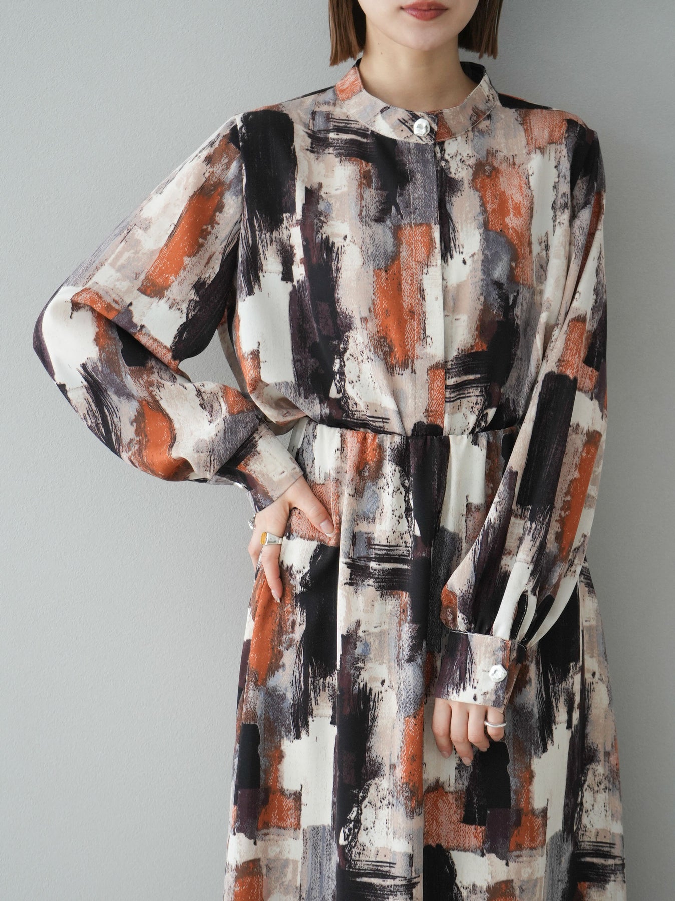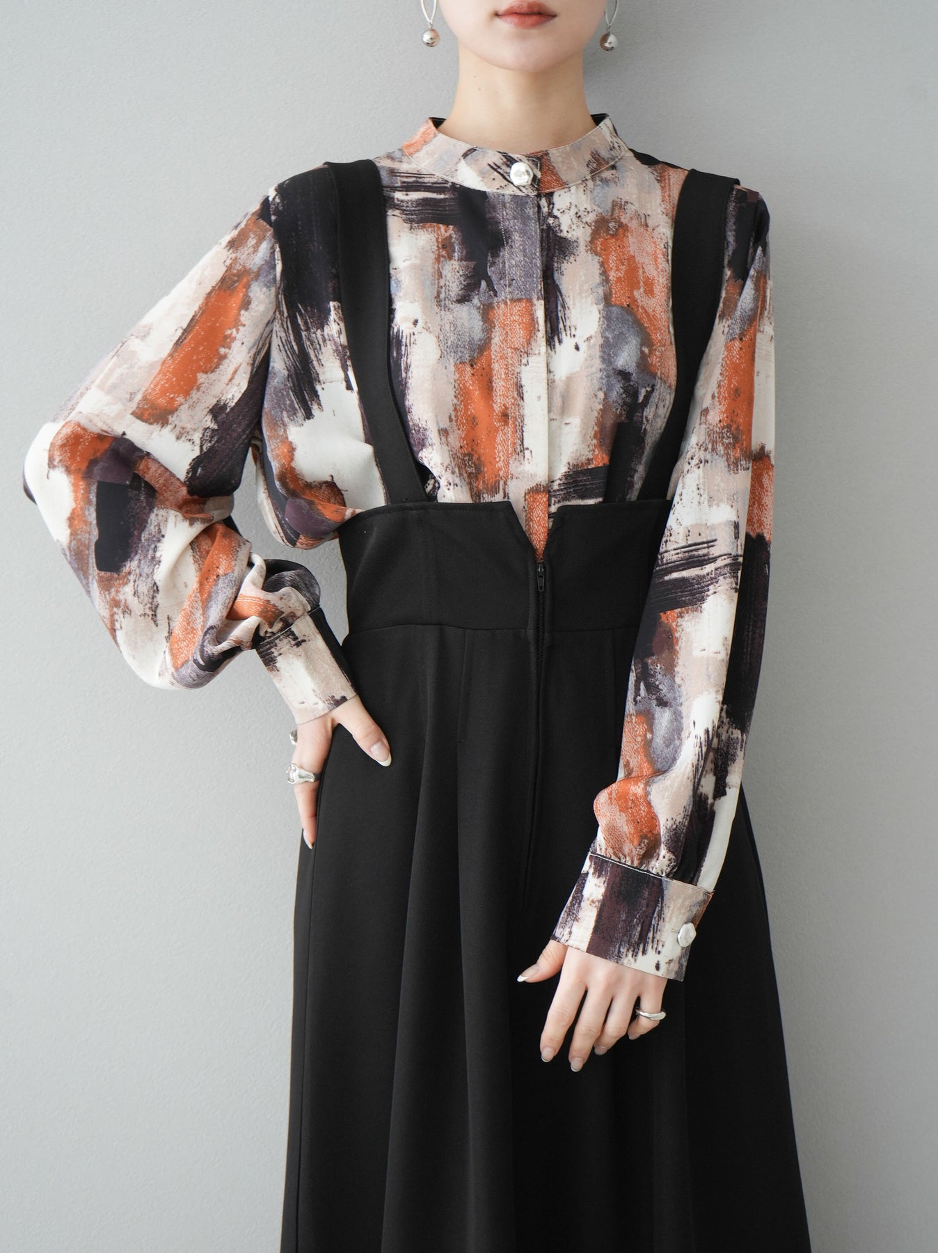 トレンドのアートライクなペイント柄が目を引くデザインシャツ。程よくゆとりのあるシルエットとボリュームスリーブが、こなれ感を演出します。襟元はすっきりとしたバンドカラーで、ジャケットやカーディガンとも好相性。デニムでカジュアルに、スラックスやタイトスカートと合わせてモードに着こなすのもおすすめ。シンプルなボトムスと合わせるだけで、洗練された着こなしが完成します。 ※ボトムス、キャミソール(インナー)以外の商品は一律でインナーは付属していません