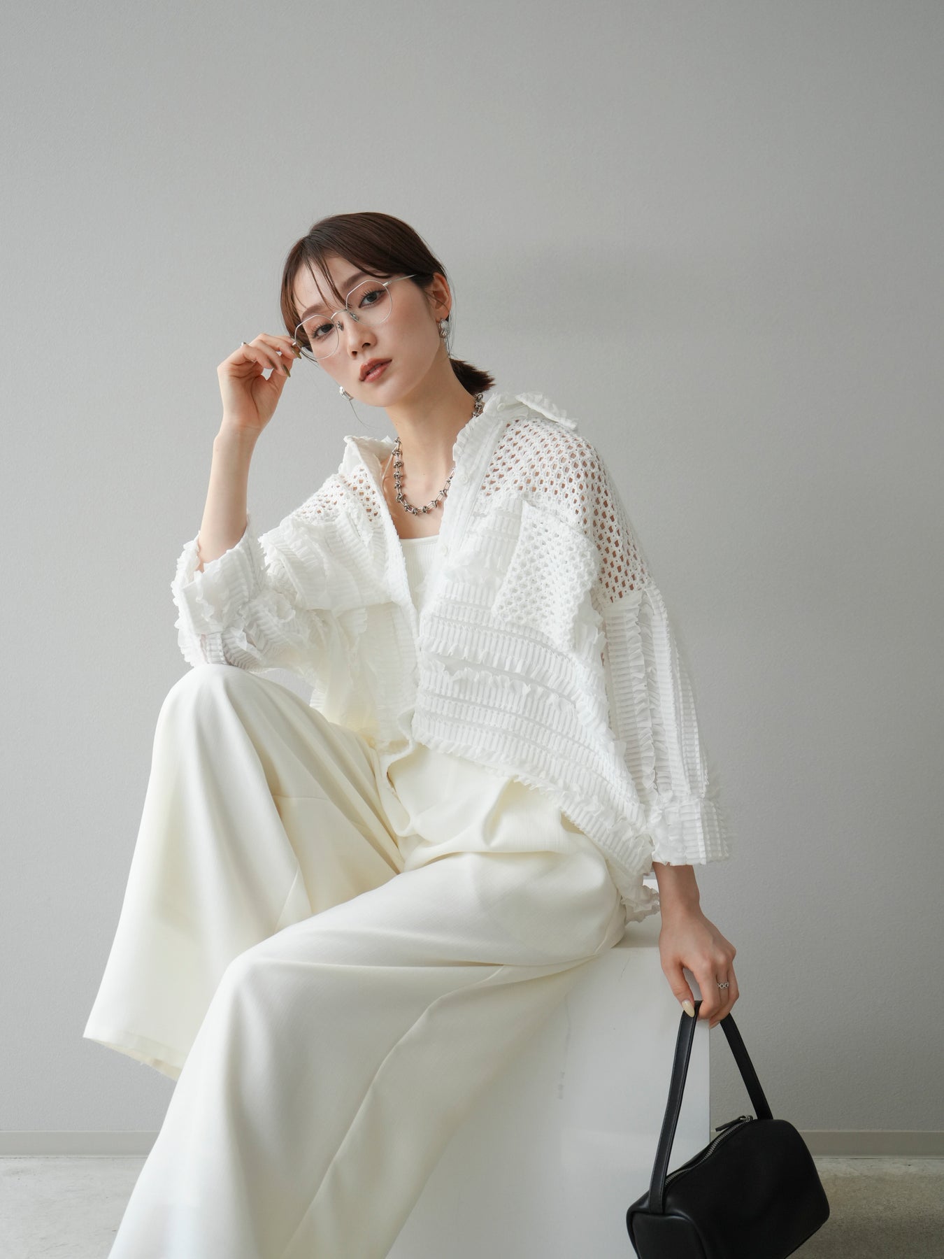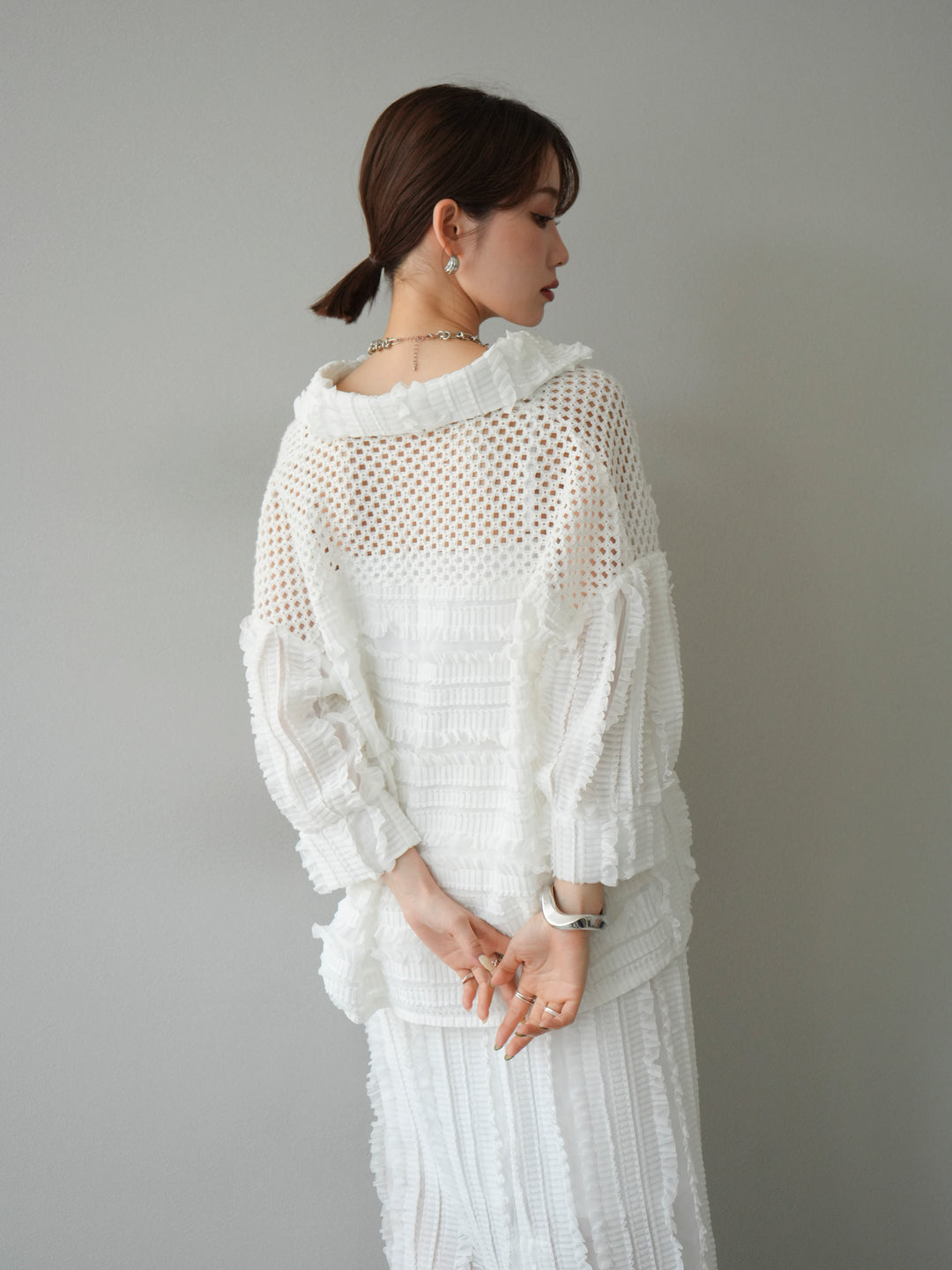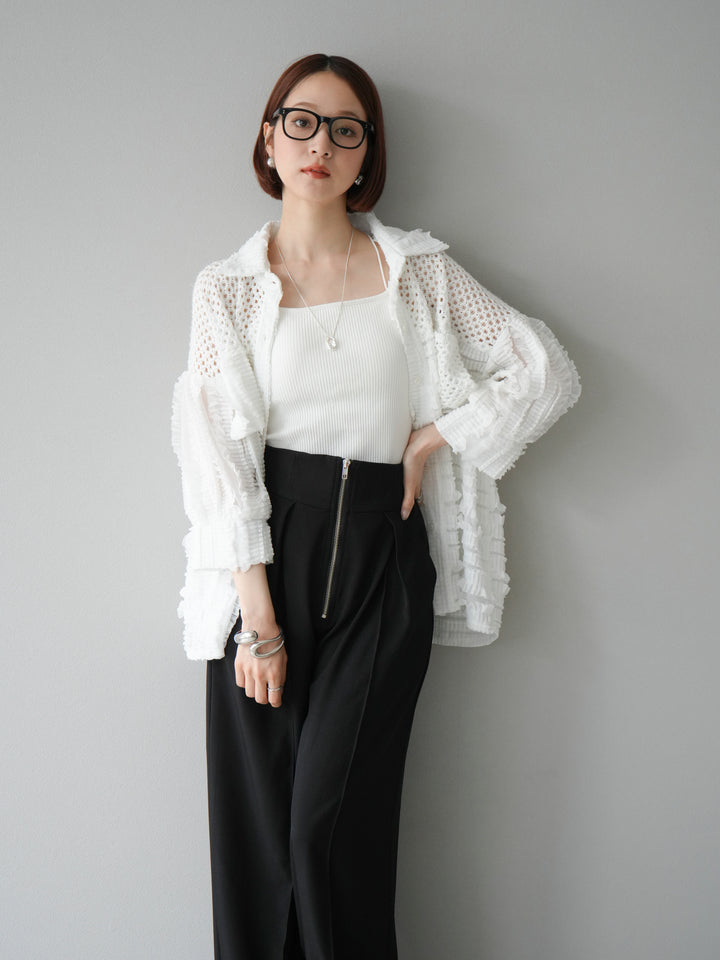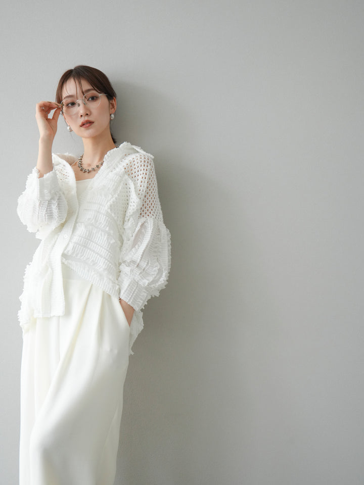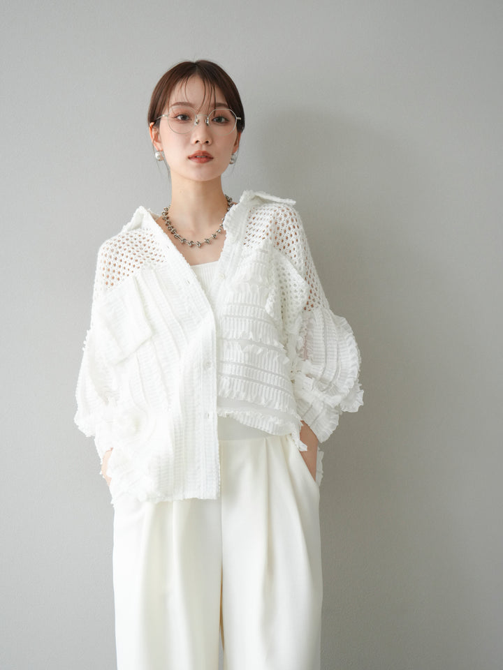 [予約]パッチワークシアーフリルシャツ/ホワイト