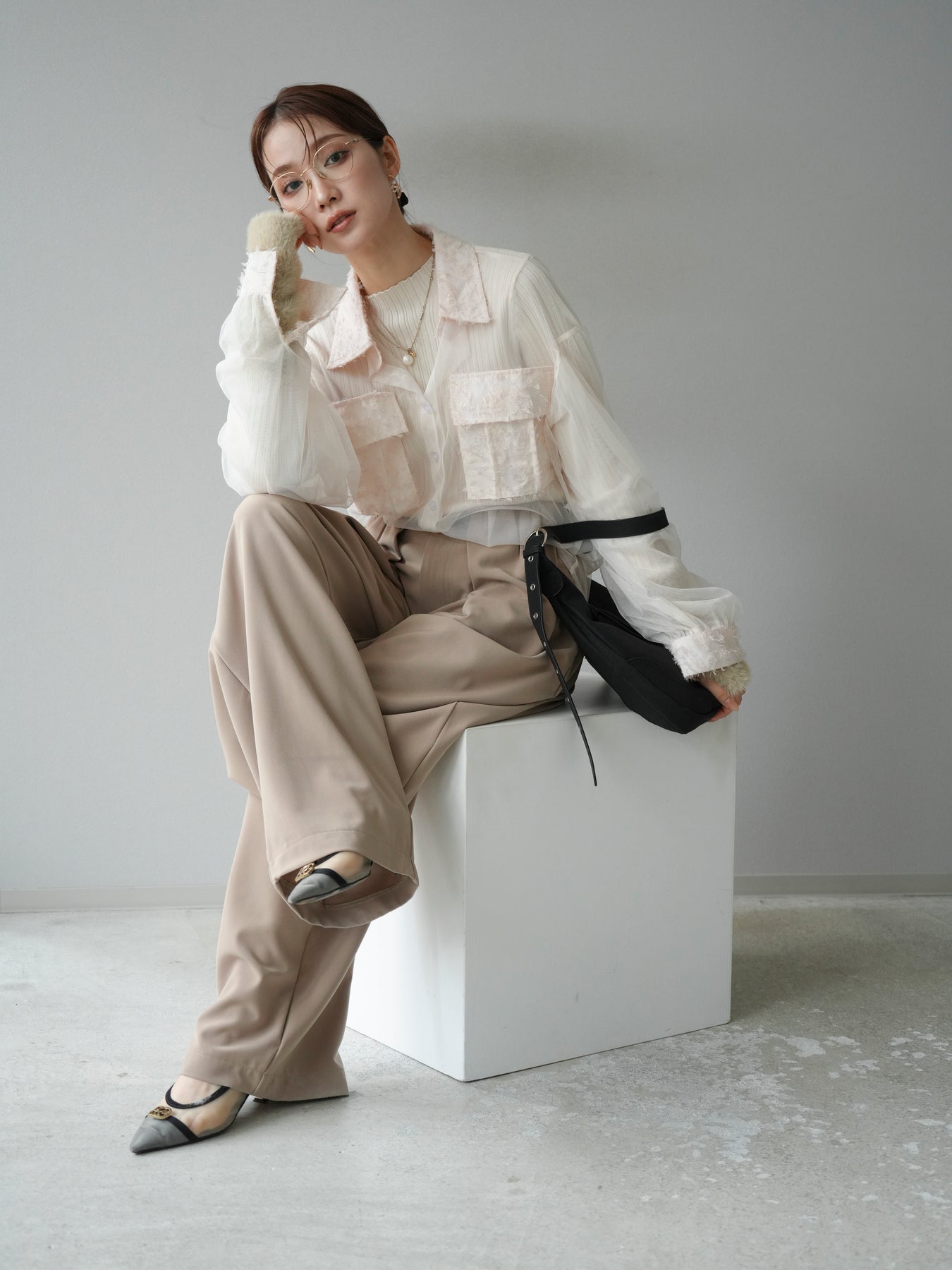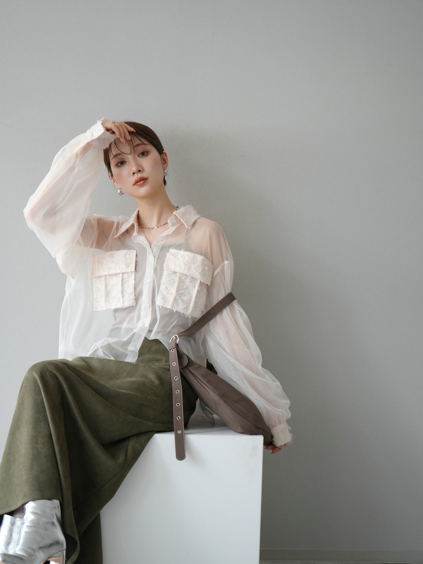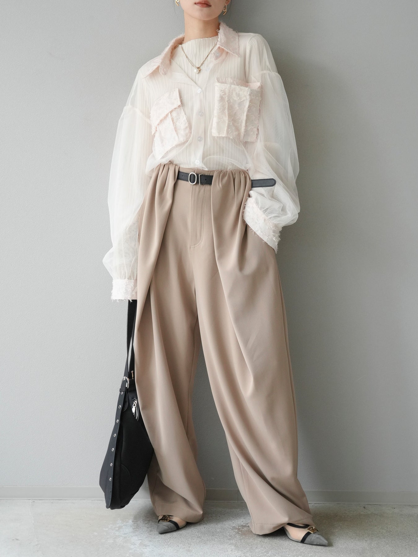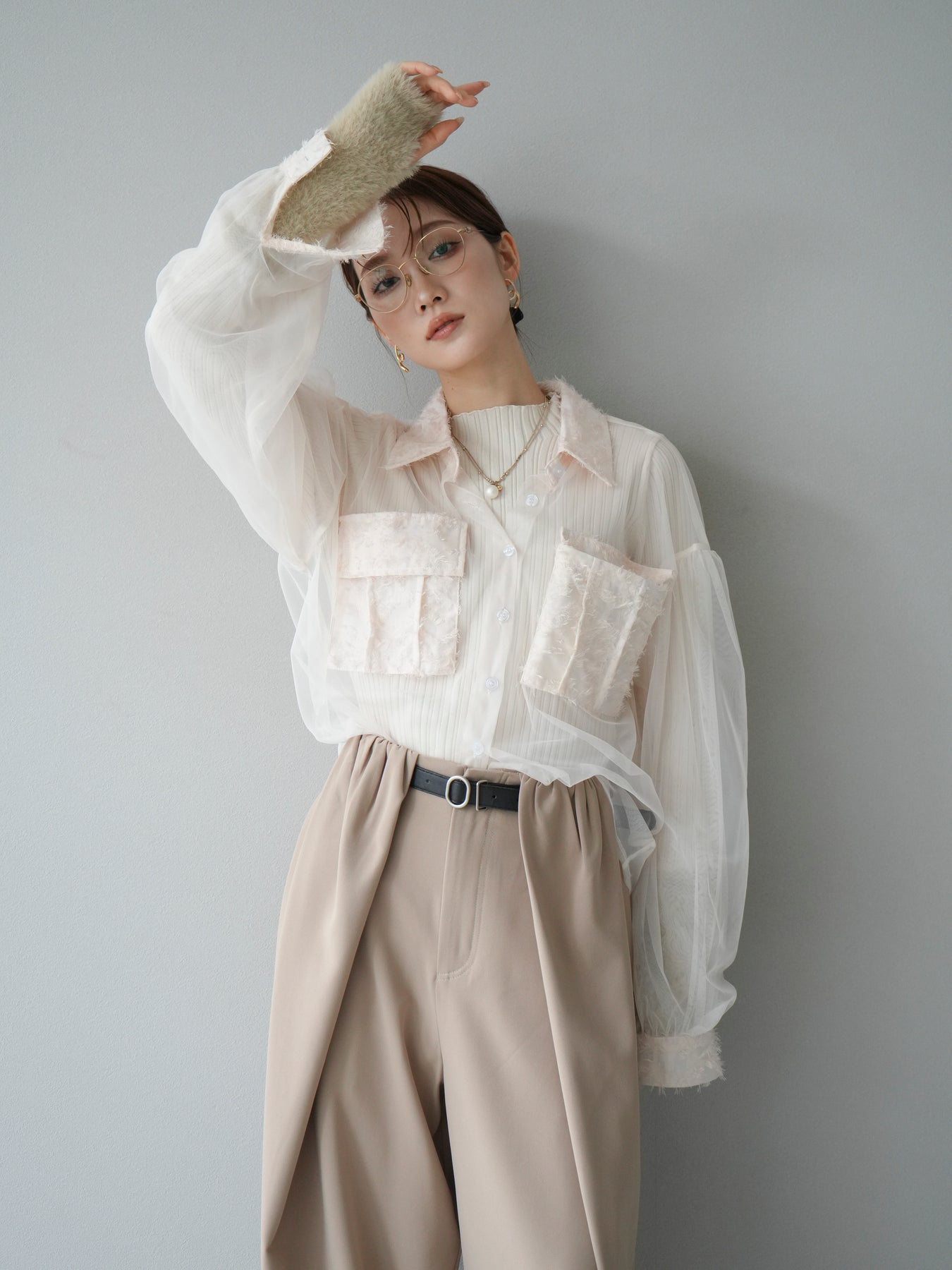 [予約]フリンジジャガード×チュールレイヤードシャツに関連する商品を探す↓