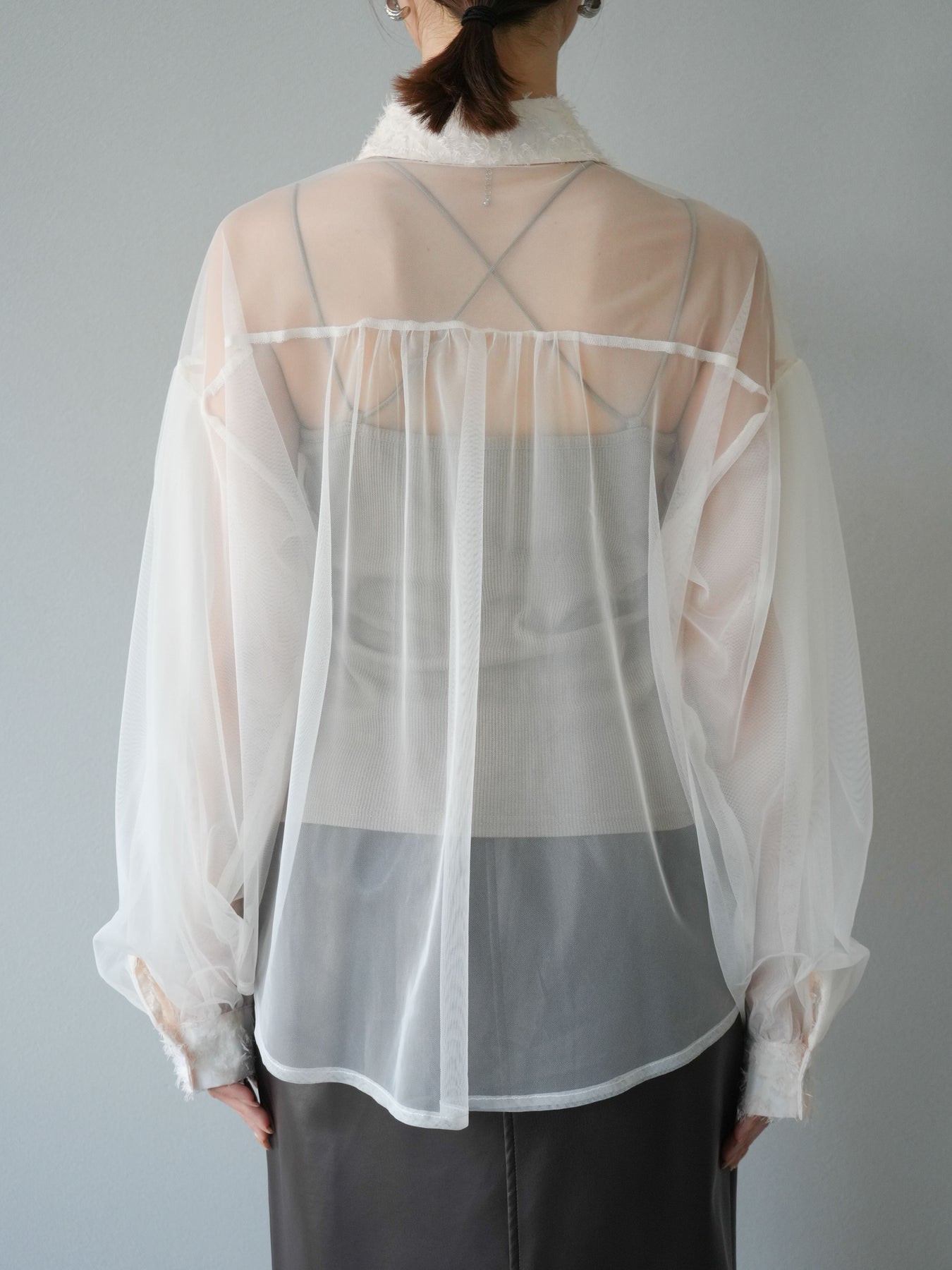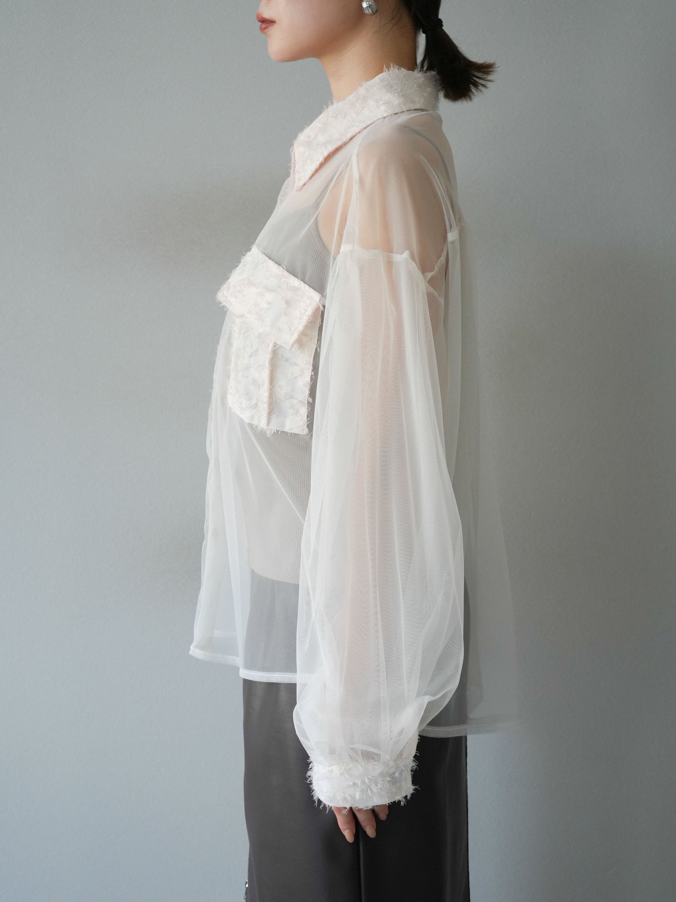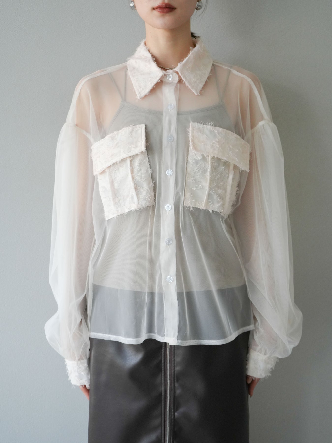 [予約]フリンジジャガード×チュールレイヤードシャツ/アイボリー