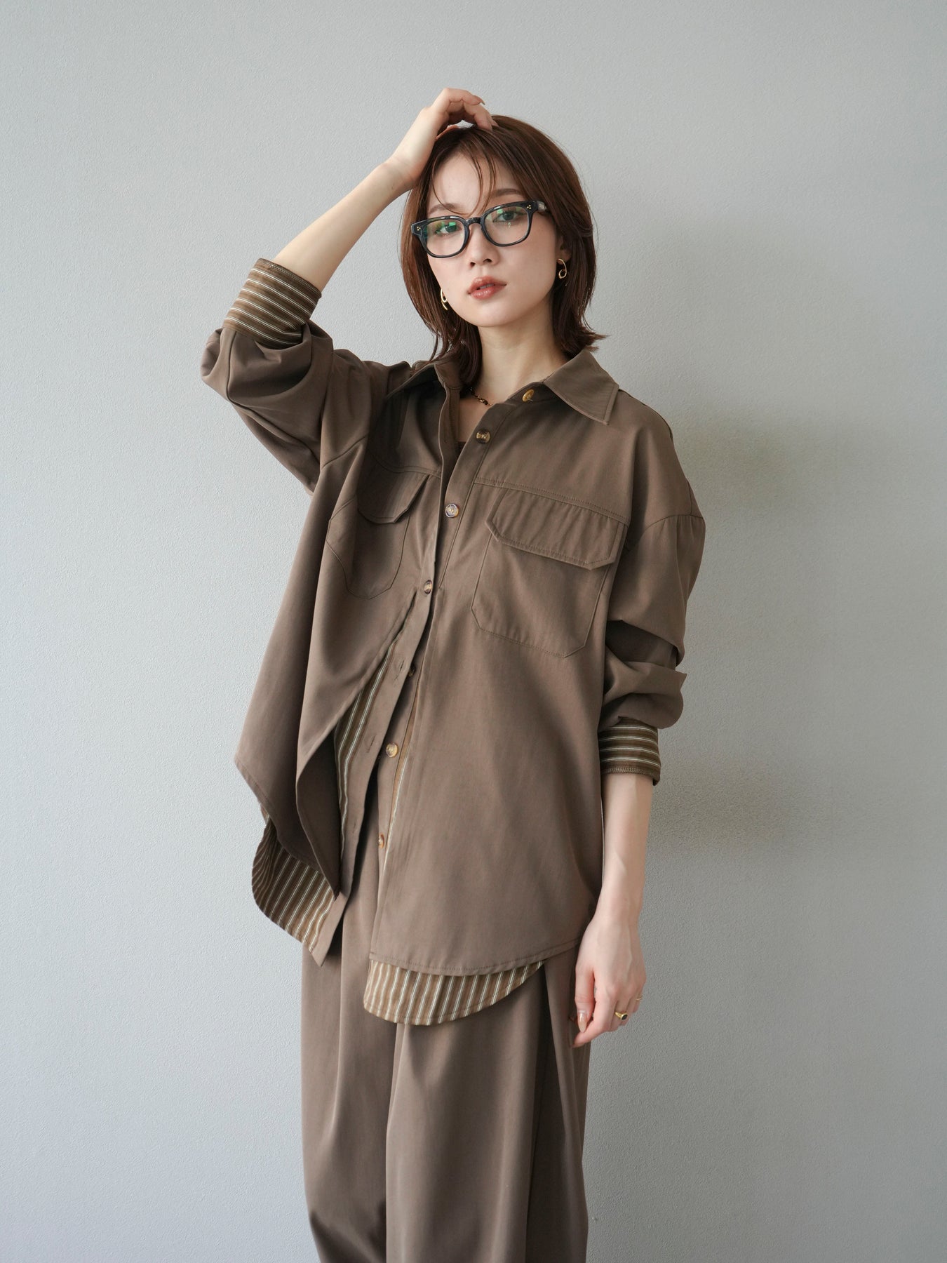 [予約]ストライプレイヤードシャツ/ブラウン