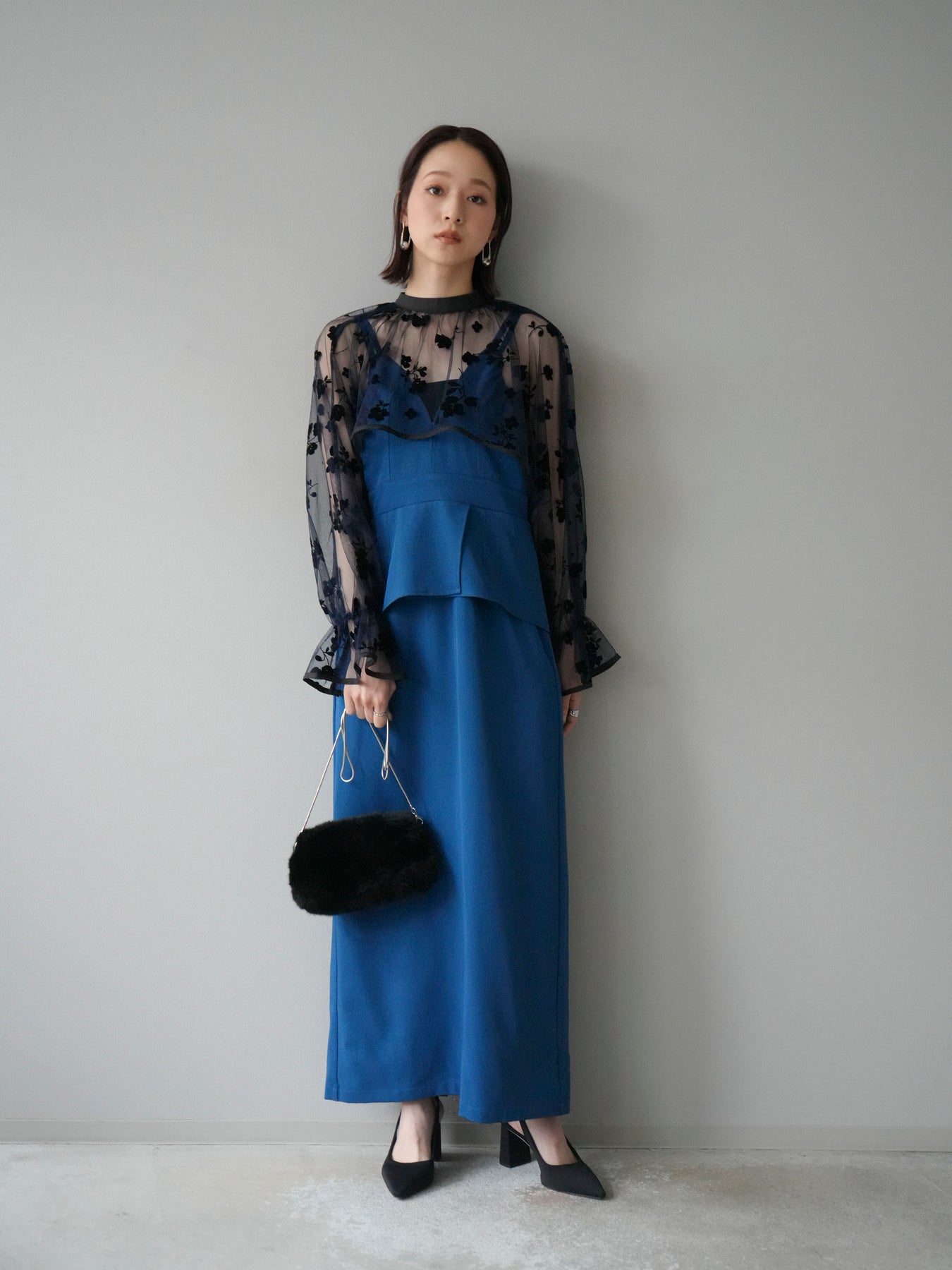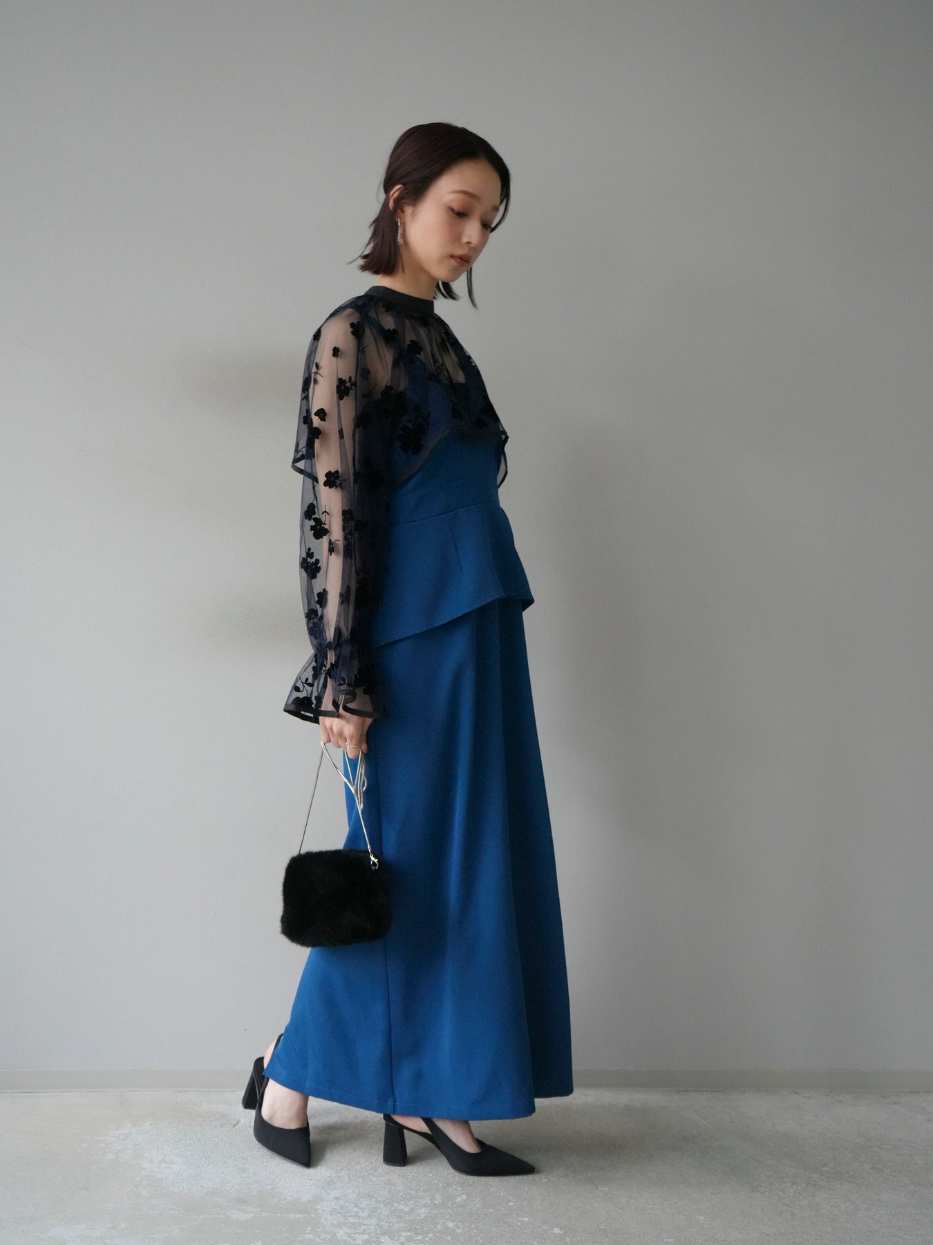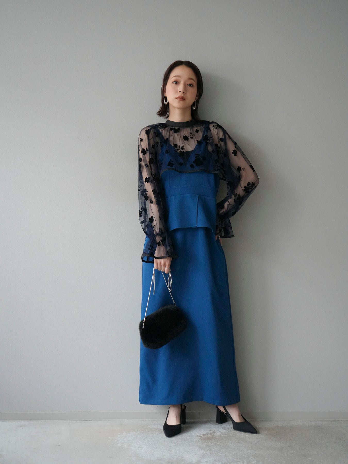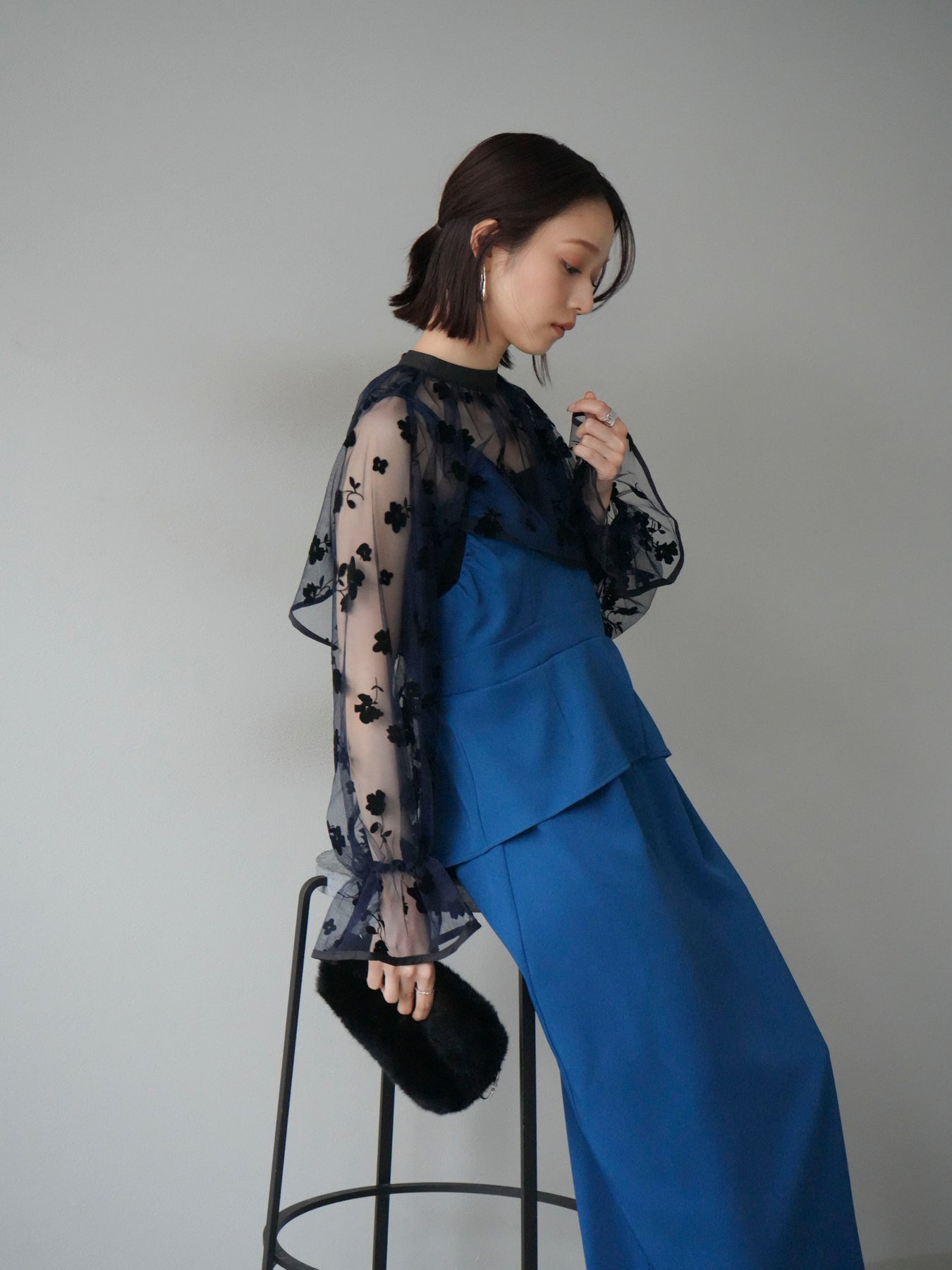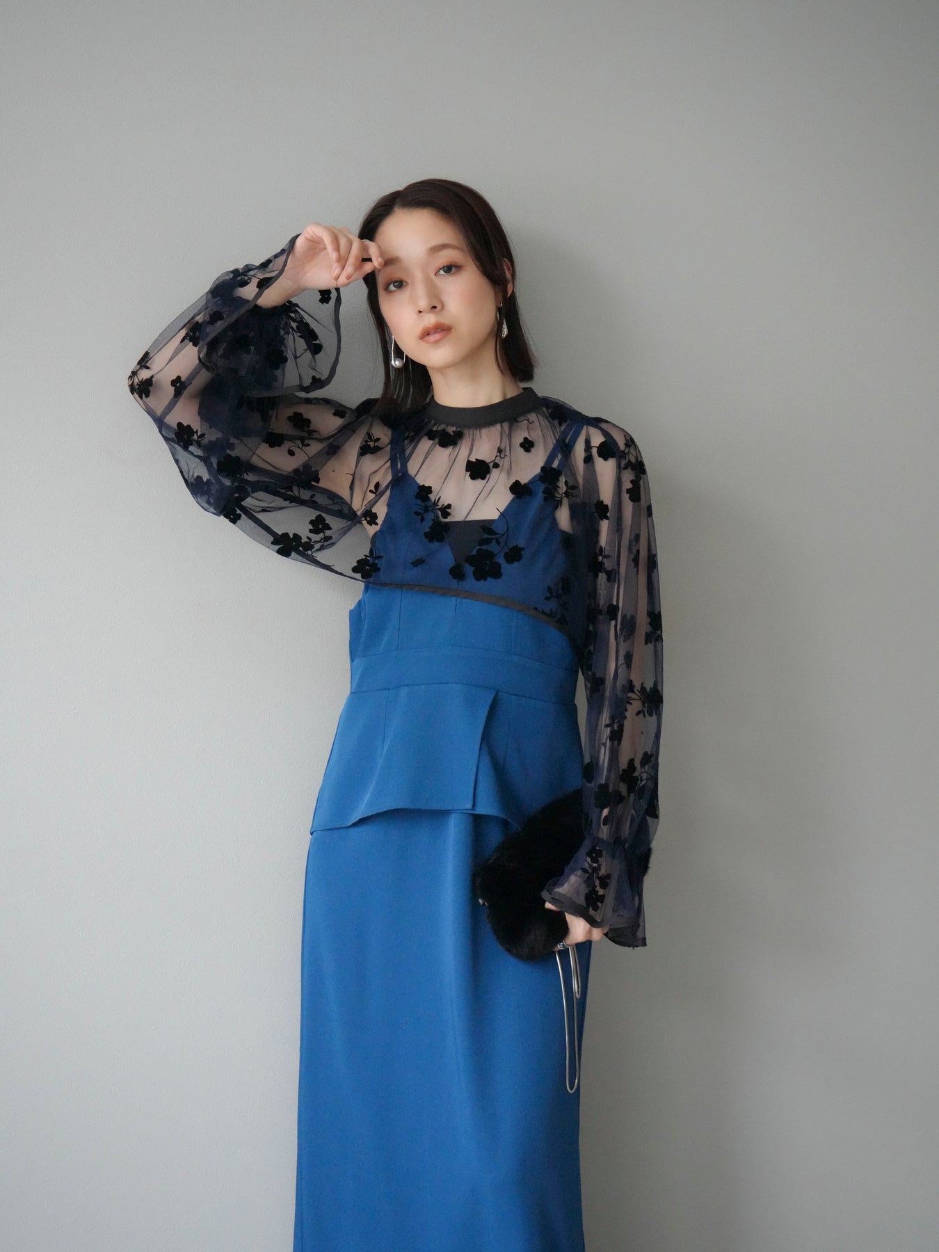 [予約]チュールフラワーフロッキーショートブラウス/ネイビー