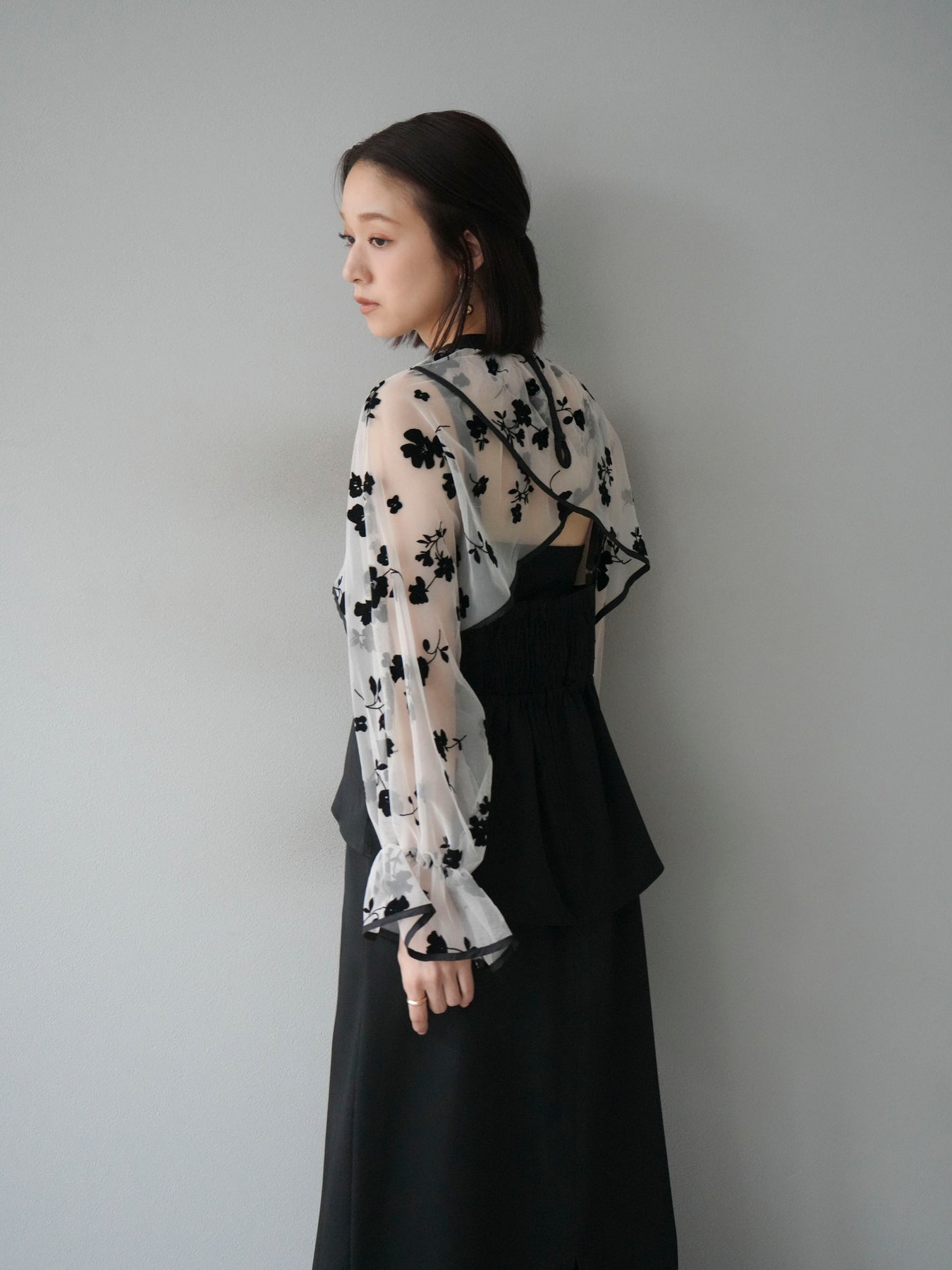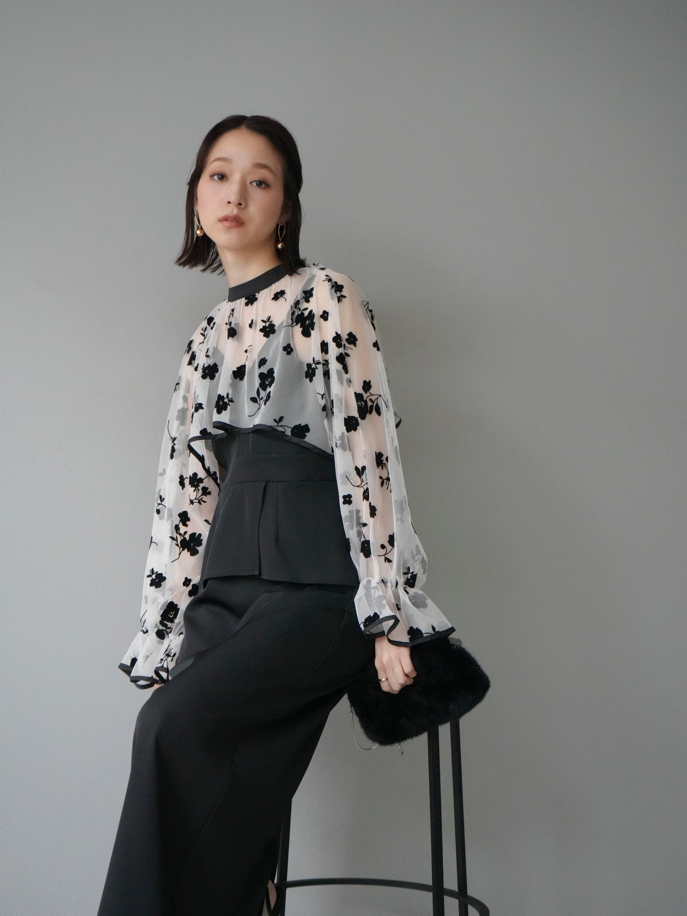 [予約]チュールフラワーフロッキーショートブラウス/ホワイト