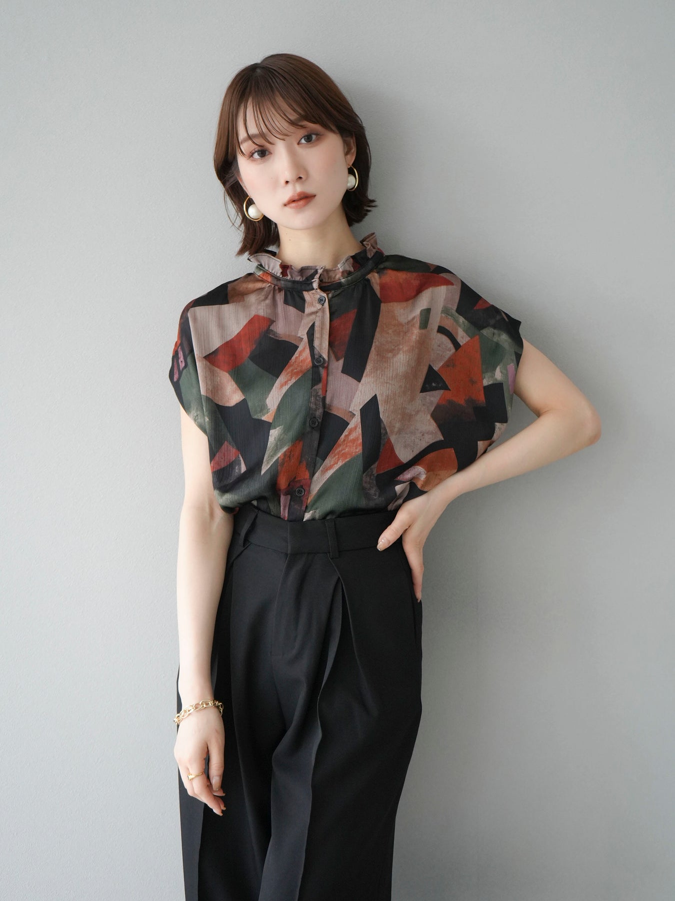 [予約]レトロプリントノースリーブブラウスに関連する商品を探す↓