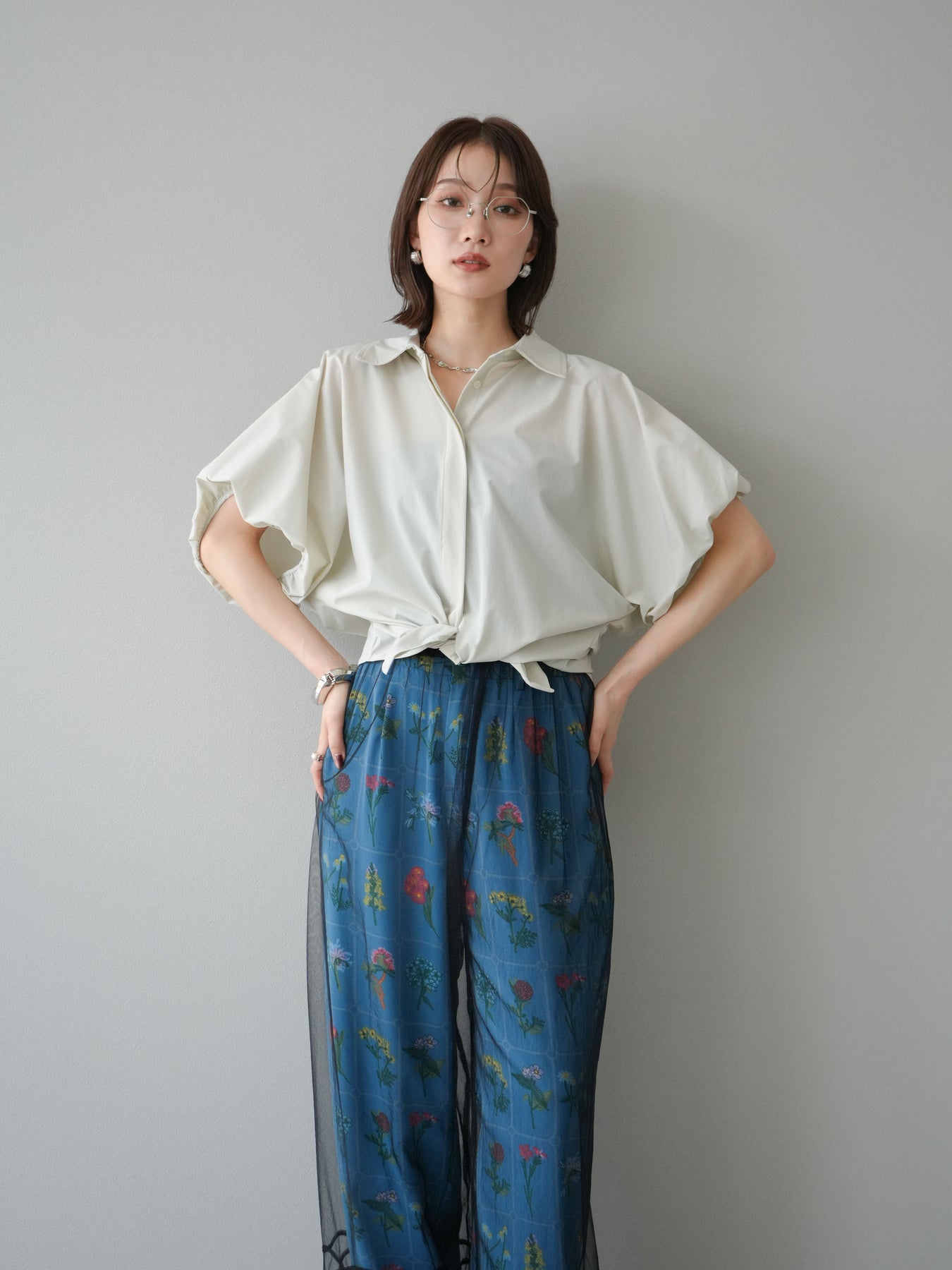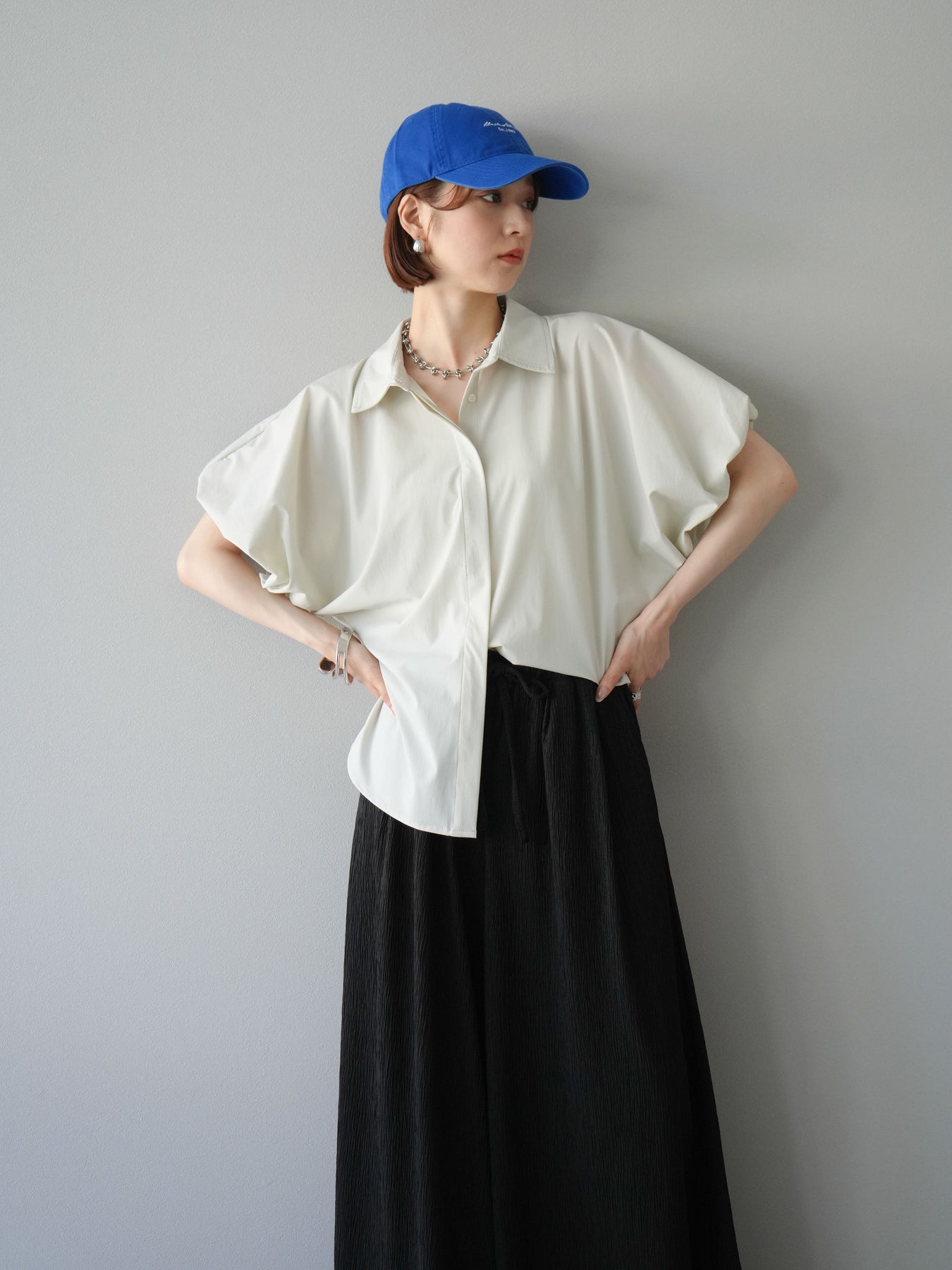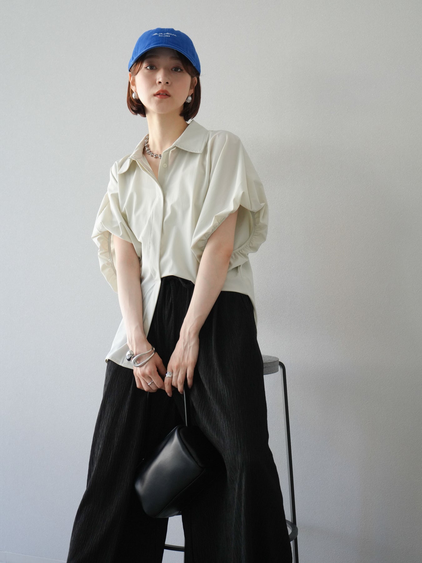 ひんやりとした肌触りが心地よい接触冷感素材「ICE TOUCH」を使用した、夏にぴったりのパフスリーブシャツ。袖口にボリュームを持たせた立体的なパフデザインが、シンプルな中に程よいアクセントを添えます。 比翼仕立てのフロントですっきりとした印象に仕上げ、きちんと感もありながらリラクシーな着心地が魅力。タックインでもアウトでもバランスがとりやすく、オンオフ問わず活躍します。 暑い季節も快適に着られる、機能性とデザイン性を兼ね備えた1枚です。 ※ボトムス、キャミソール(インナー)以外の商品は一律でインナーは付属していません。
