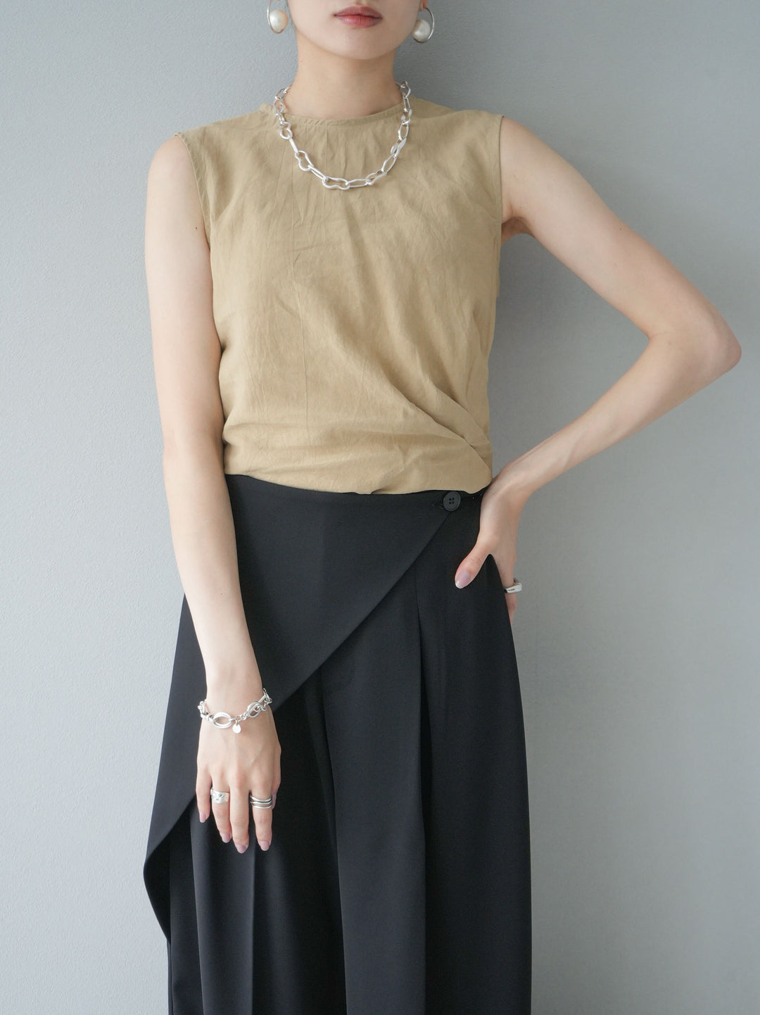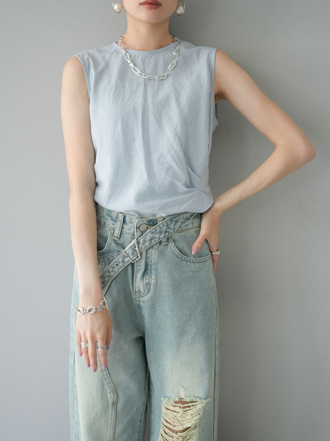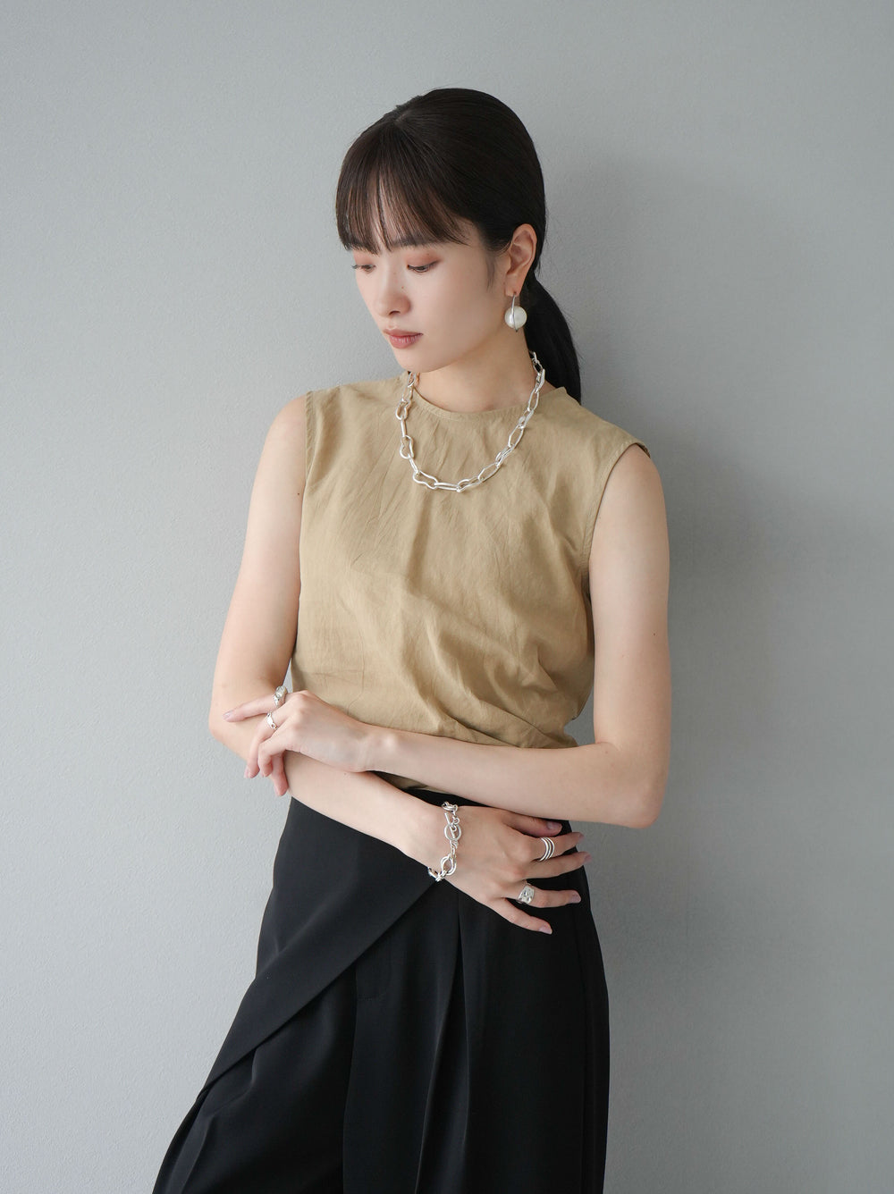 [予約]チュールレイヤードストライプノースリーブブラウス/サックス