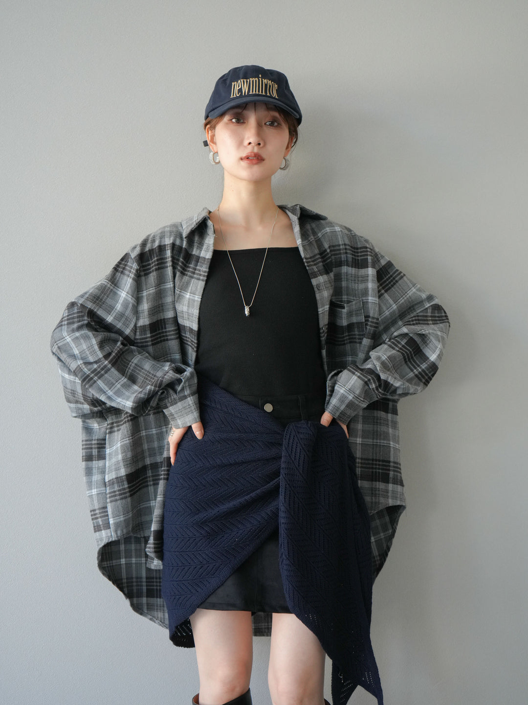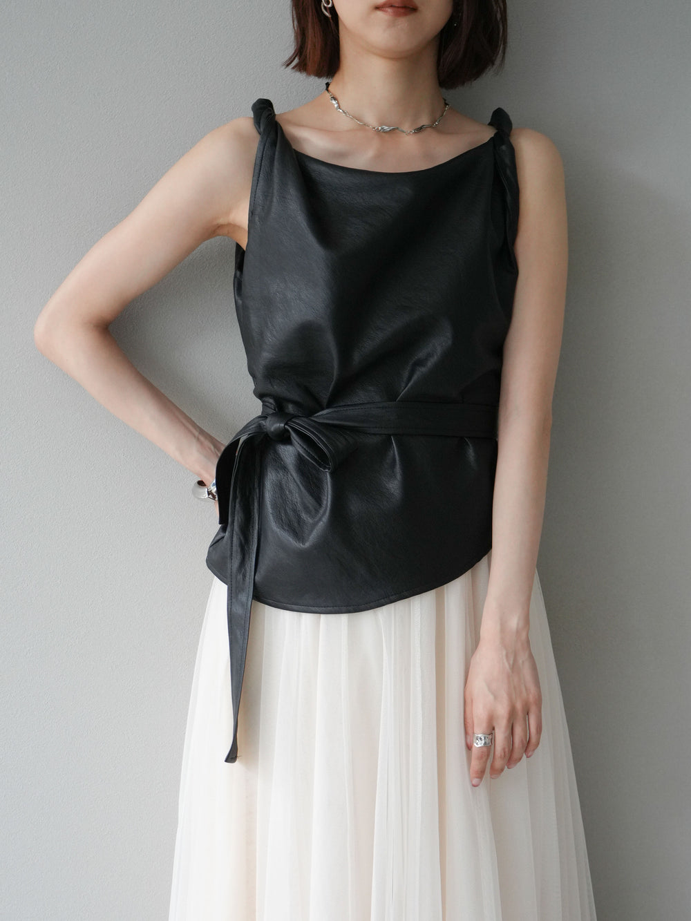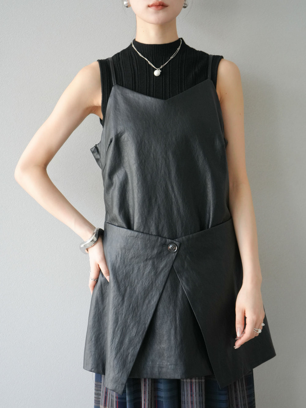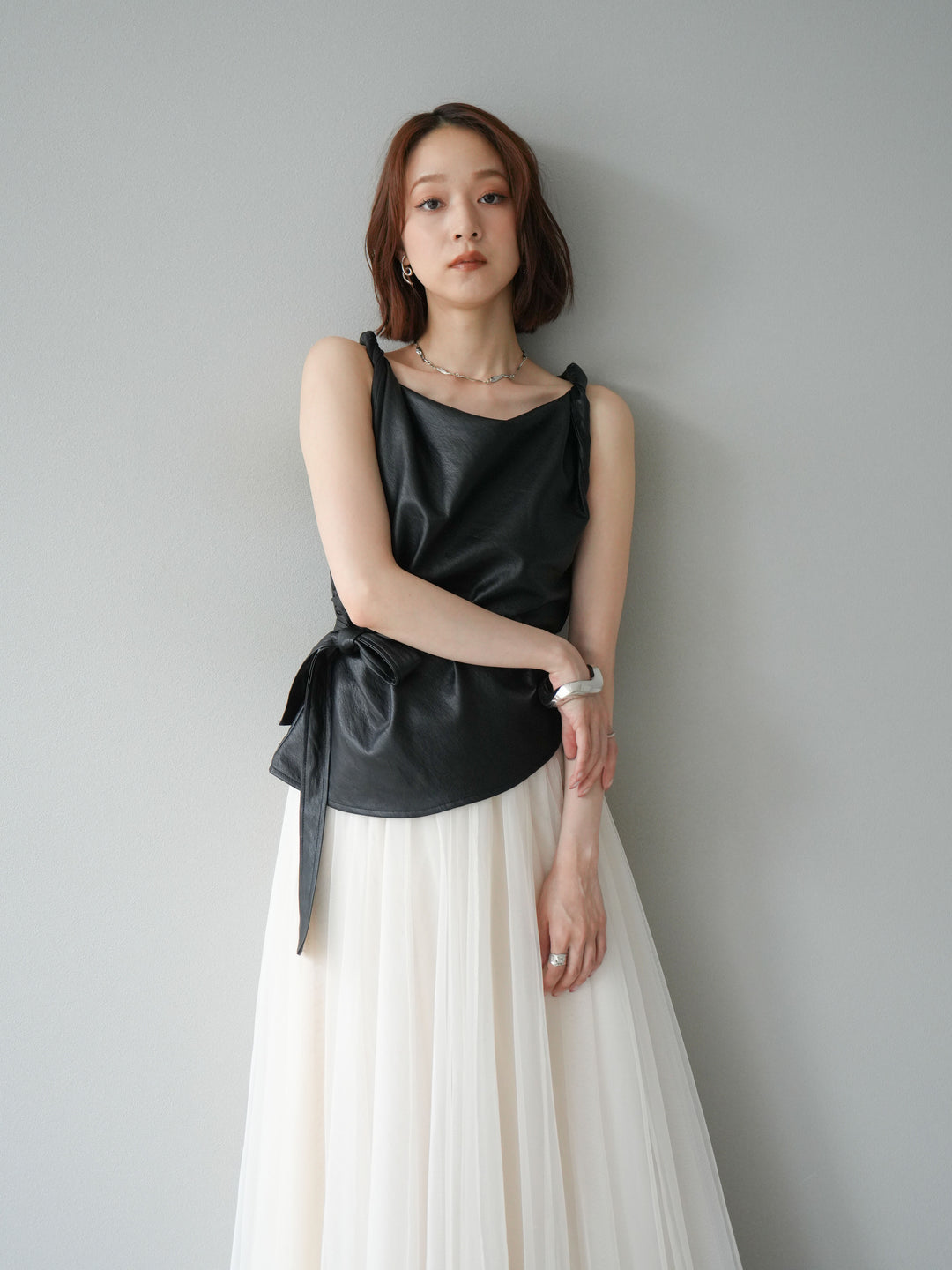 [予約]レイヤードレザーキャミソールチュニック/ブラック