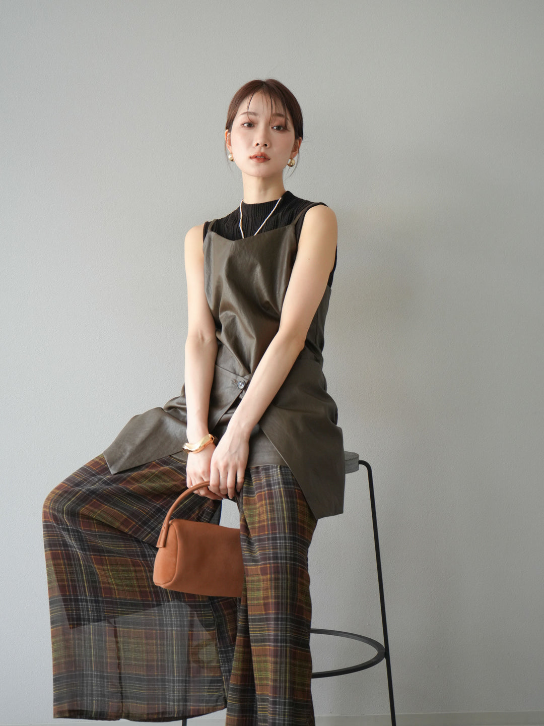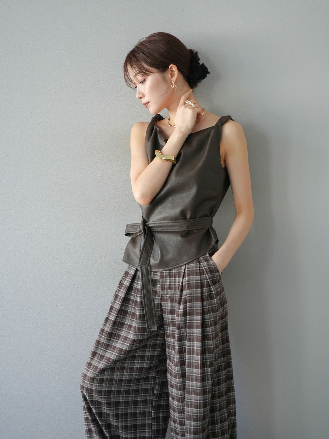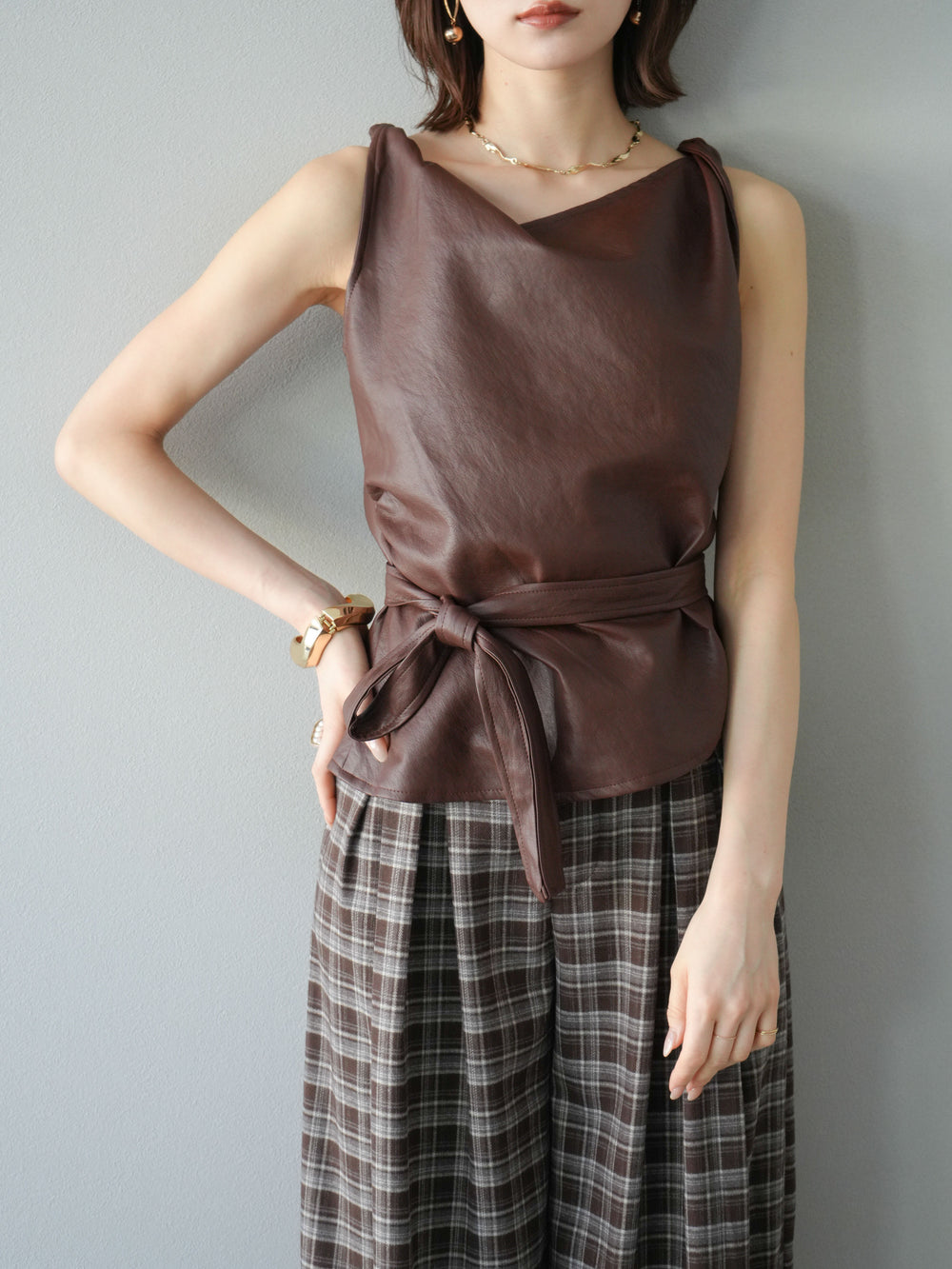 [予約]レイヤードレザーキャミソールチュニック/ブラウン