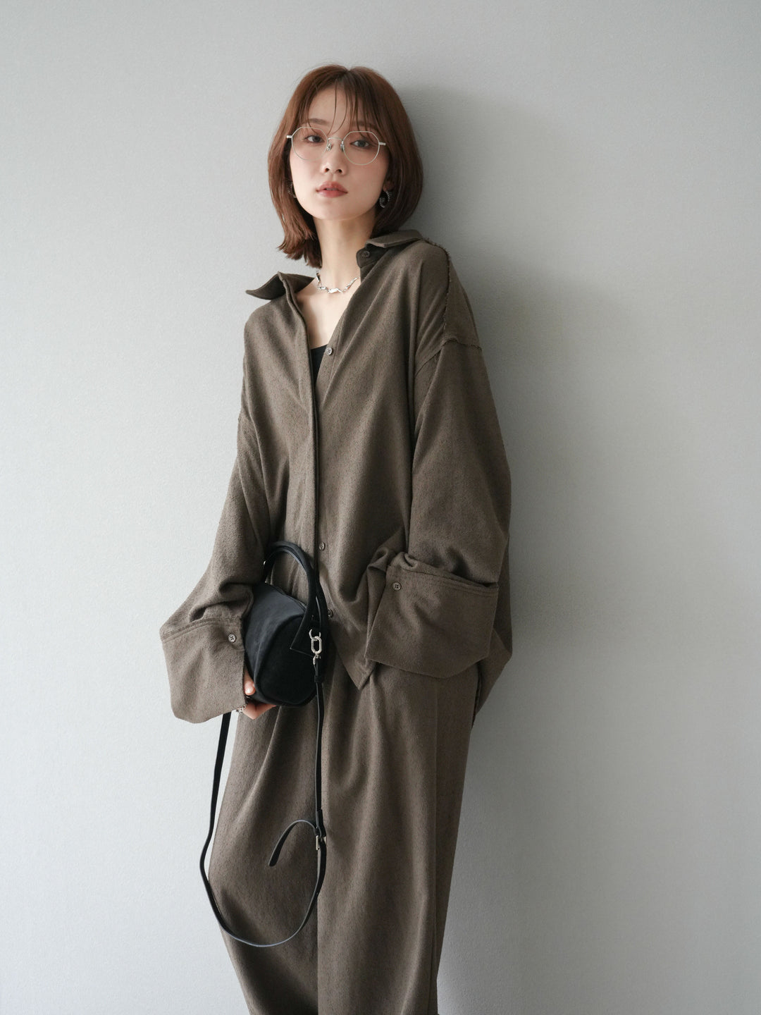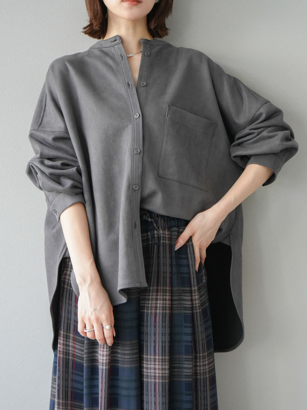 [予約]スエードバンドカラーオーバーシャツ/チャコール