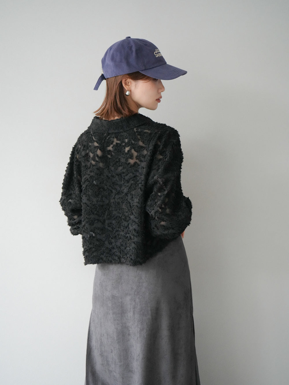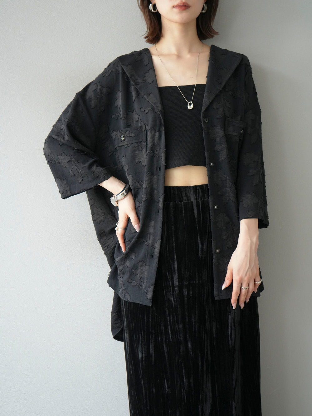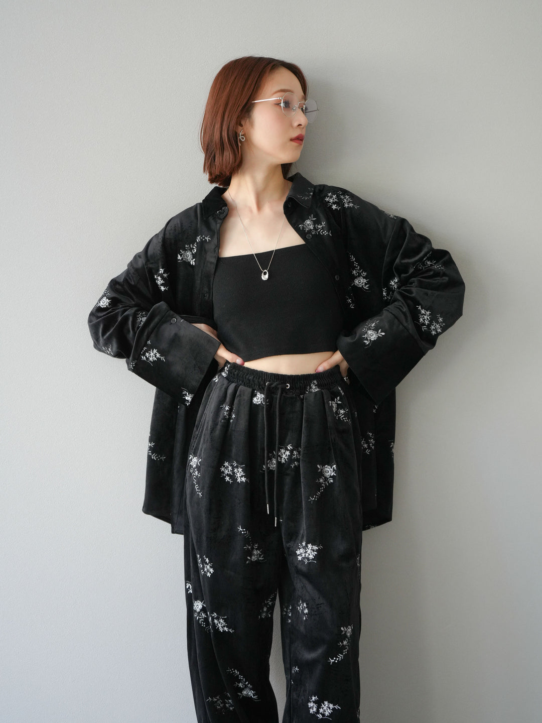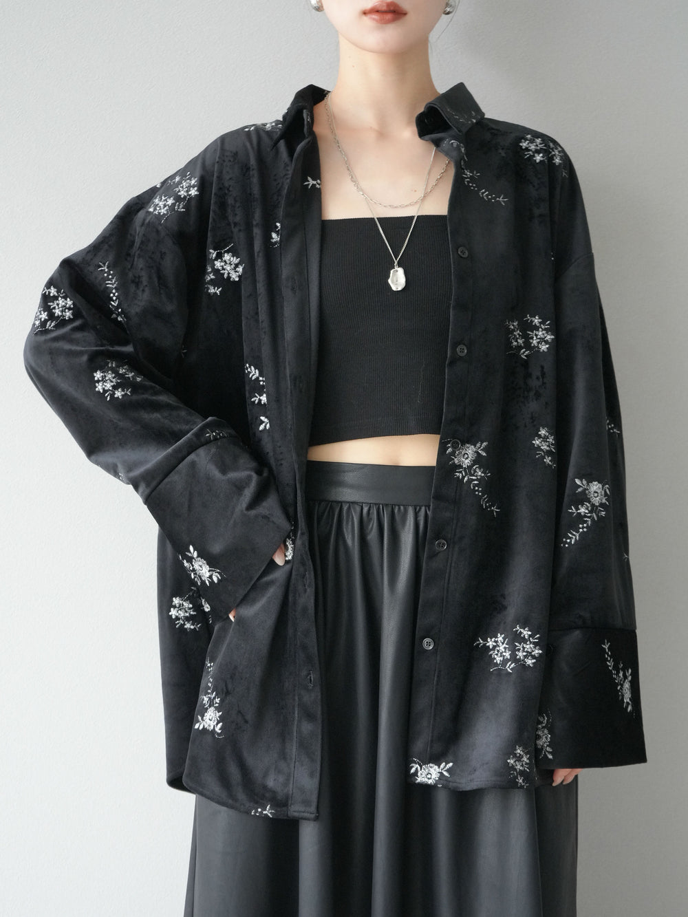 [予約]ベロアフラワーエンブロイダリーシャツ/ブラック