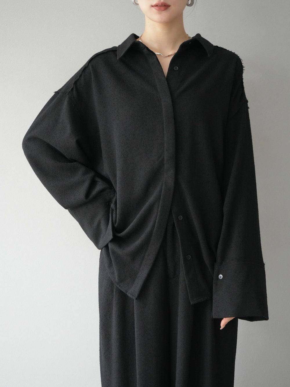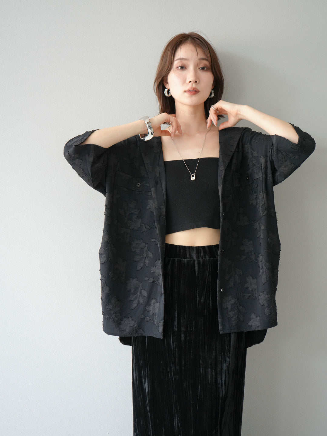 [予約]ジャガードハーフスリーブシャツ/ブラック
