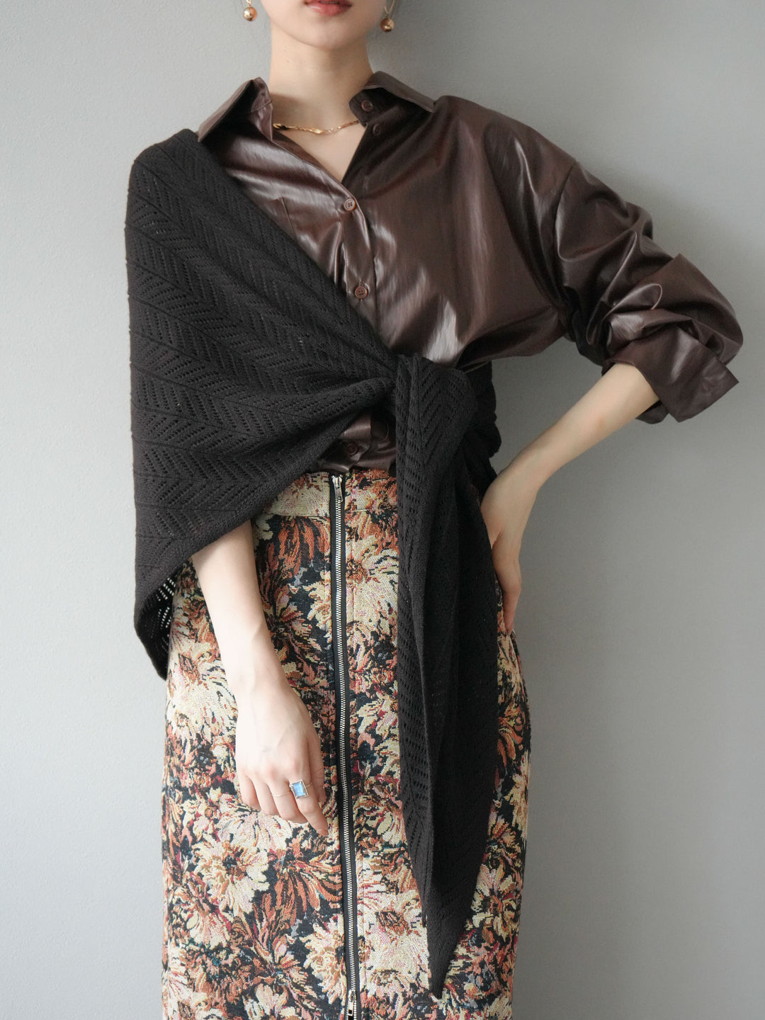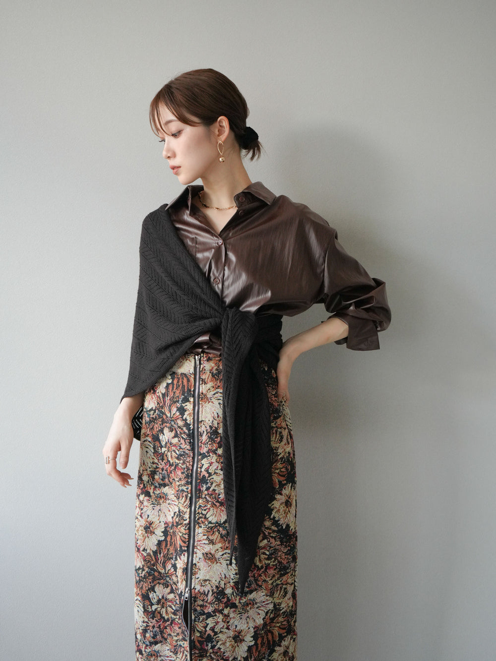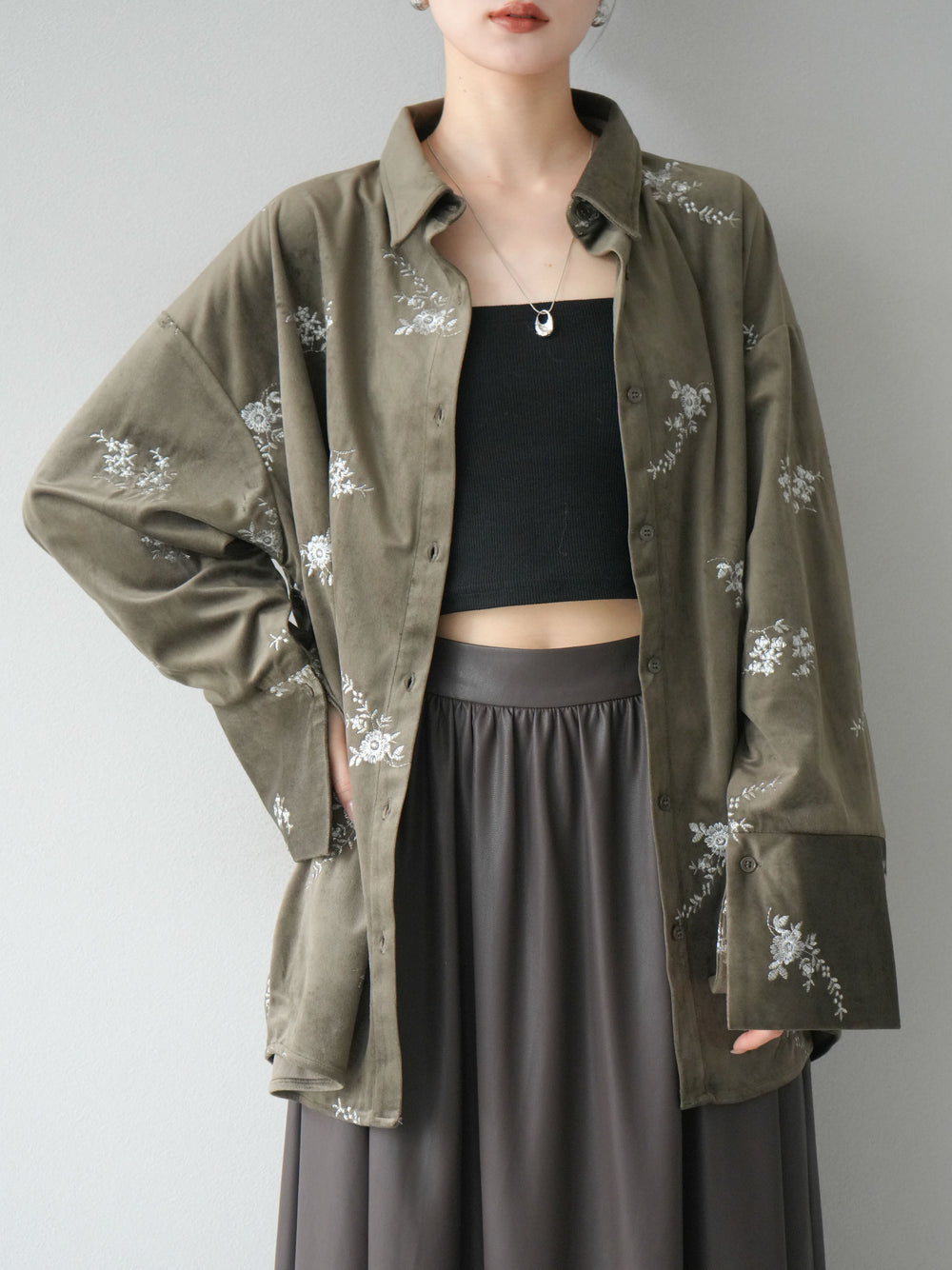 [予約]ベロアフラワーエンブロイダリーシャツ/ブラウン