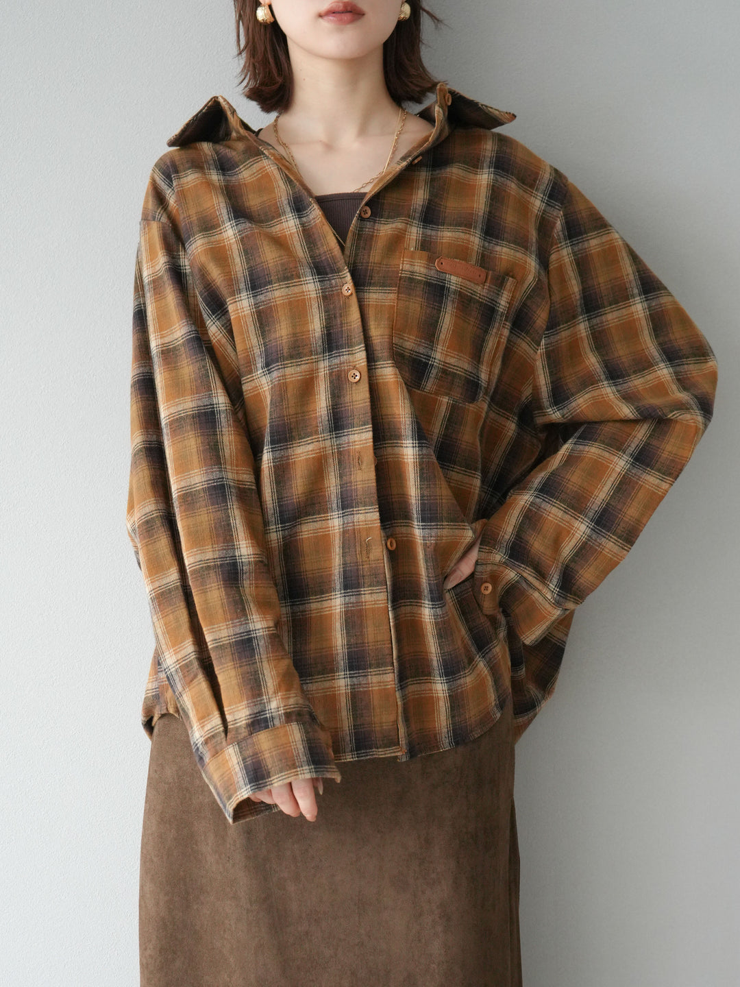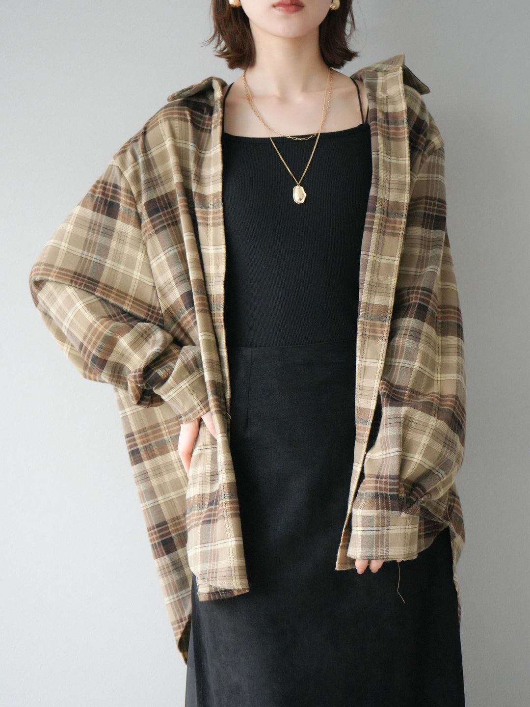 [予約]起毛チェックオーバーシャツ/ベージュ