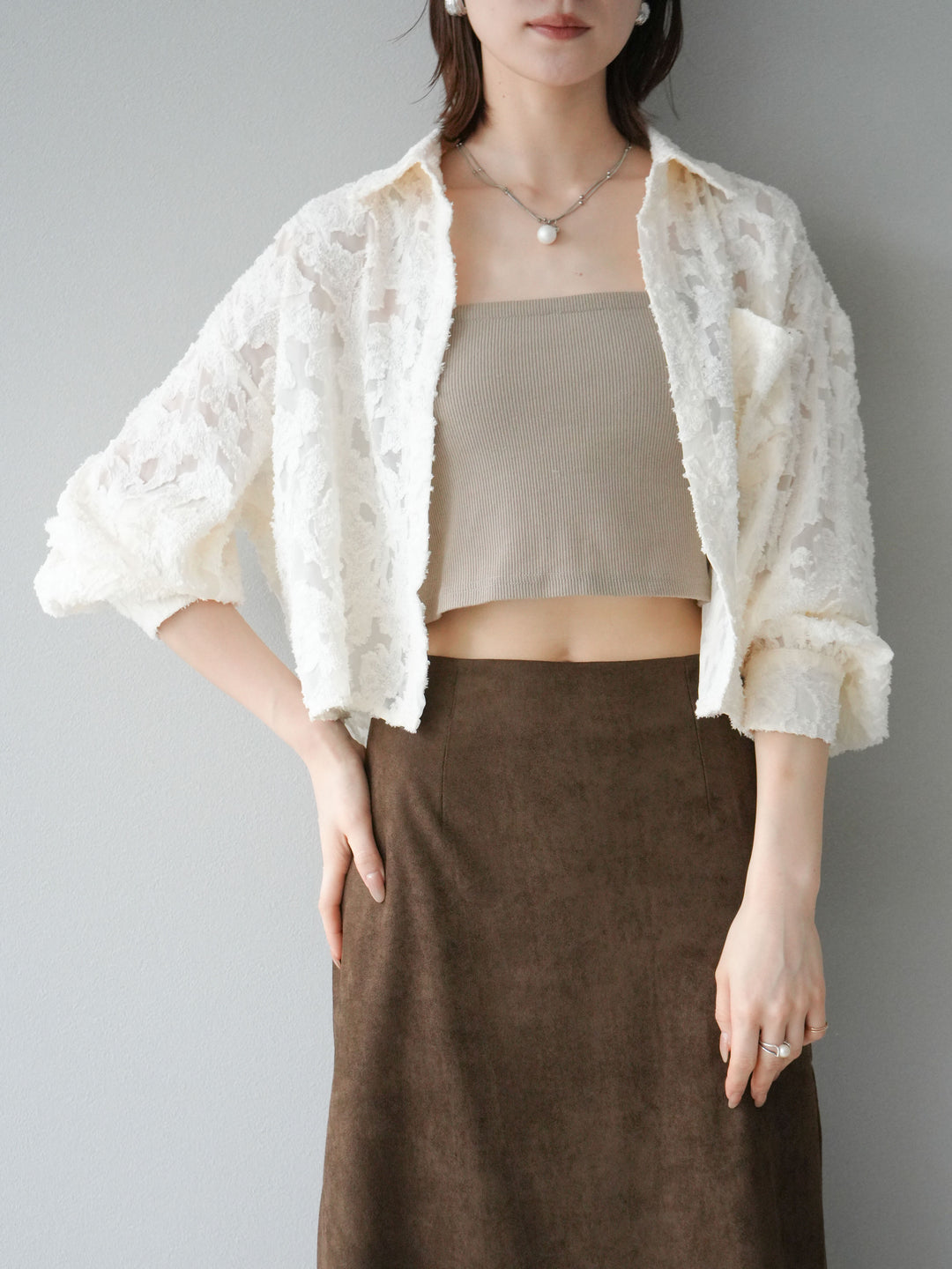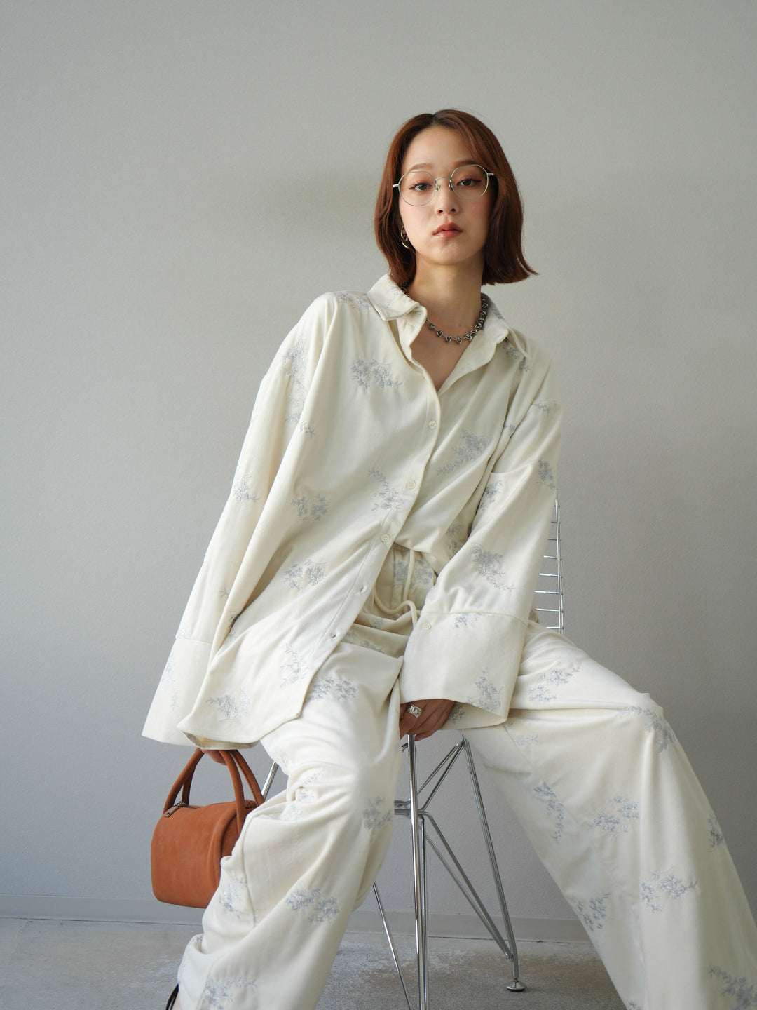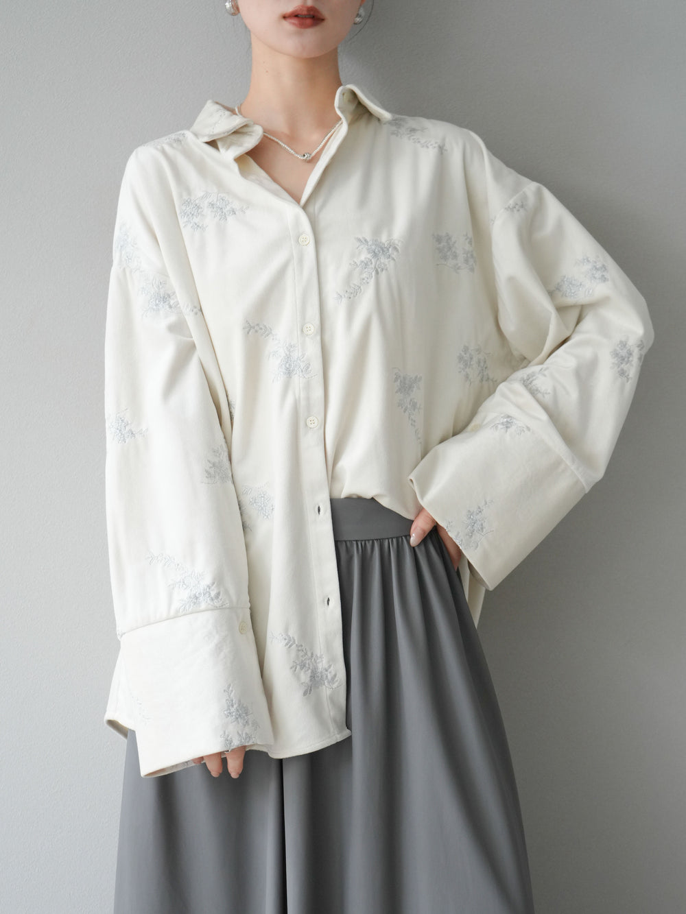[予約]ベロアフラワーエンブロイダリーシャツ/エクリュ