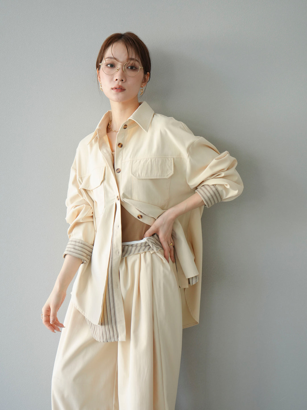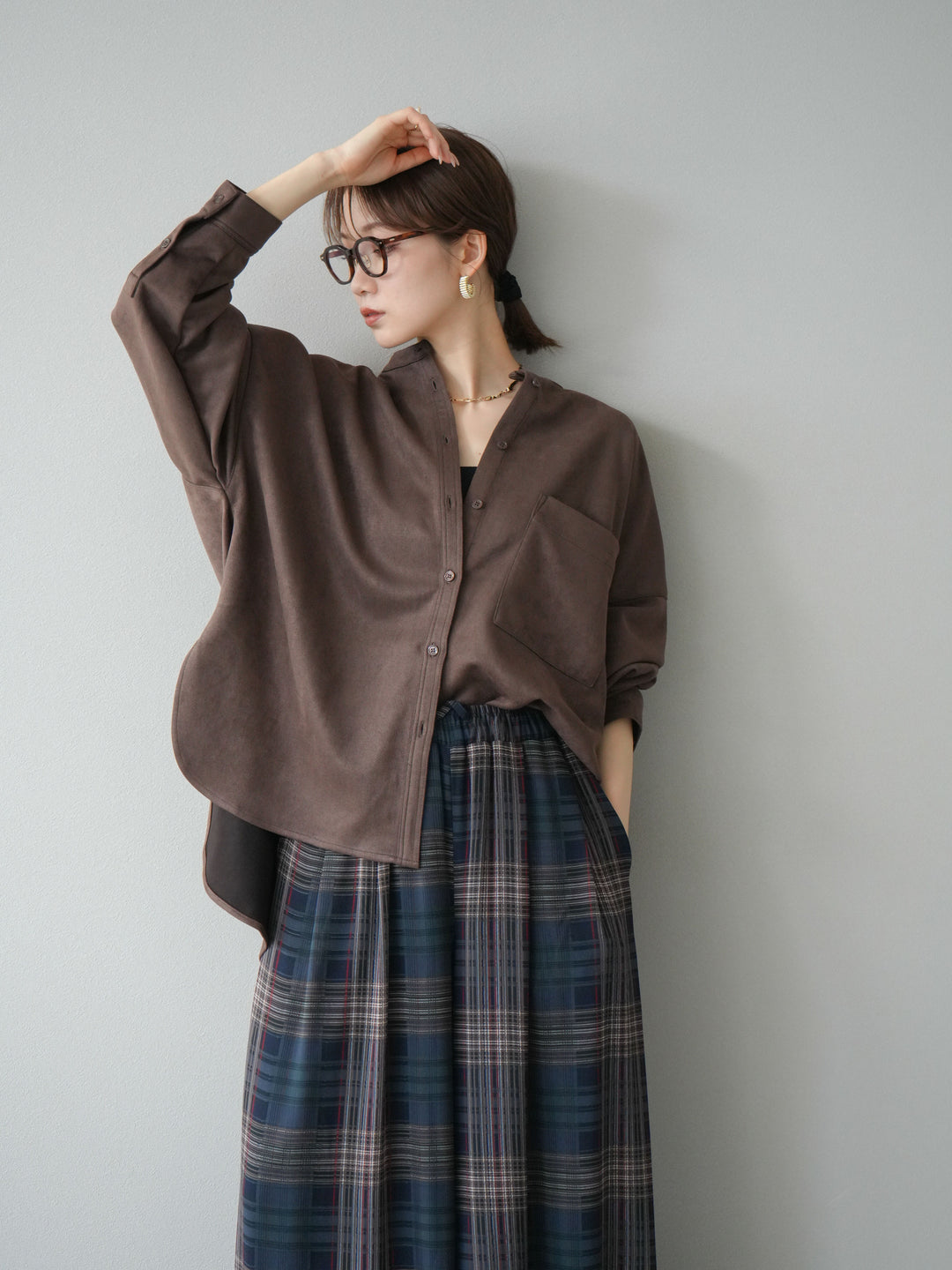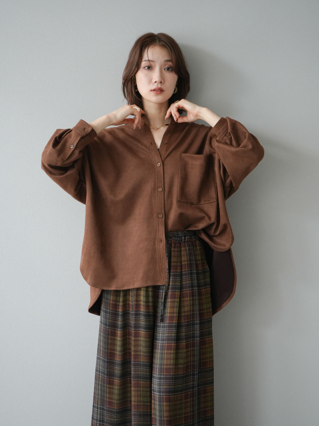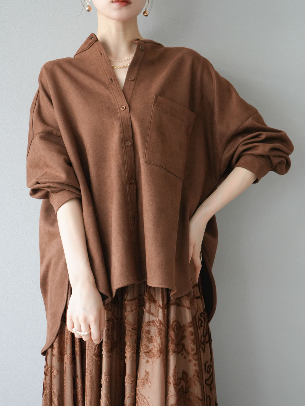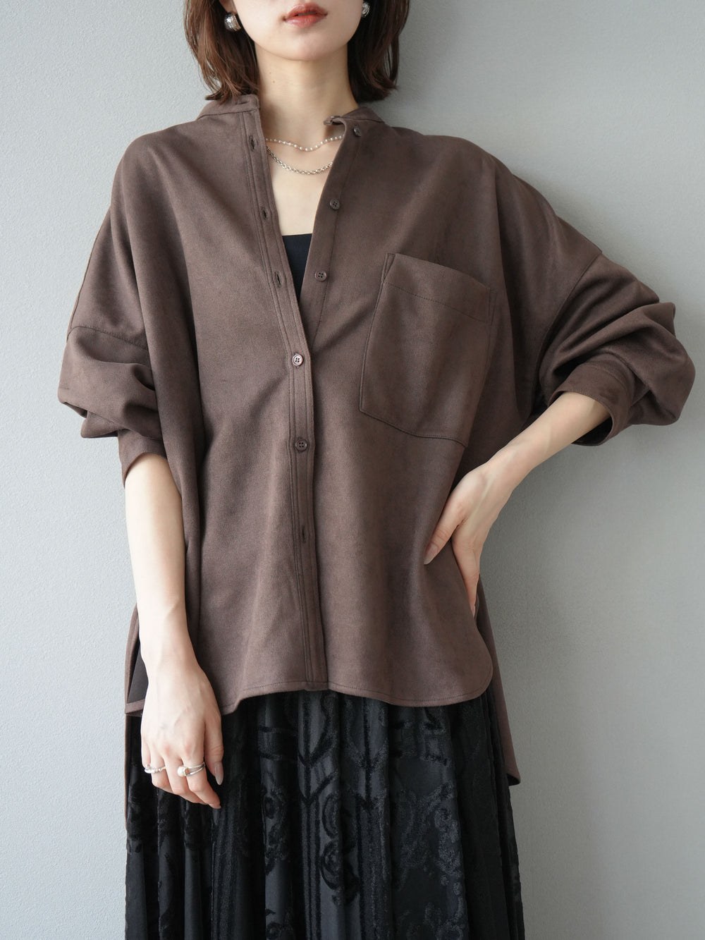[予約]スエードバンドカラーオーバーシャツ/ブラウン