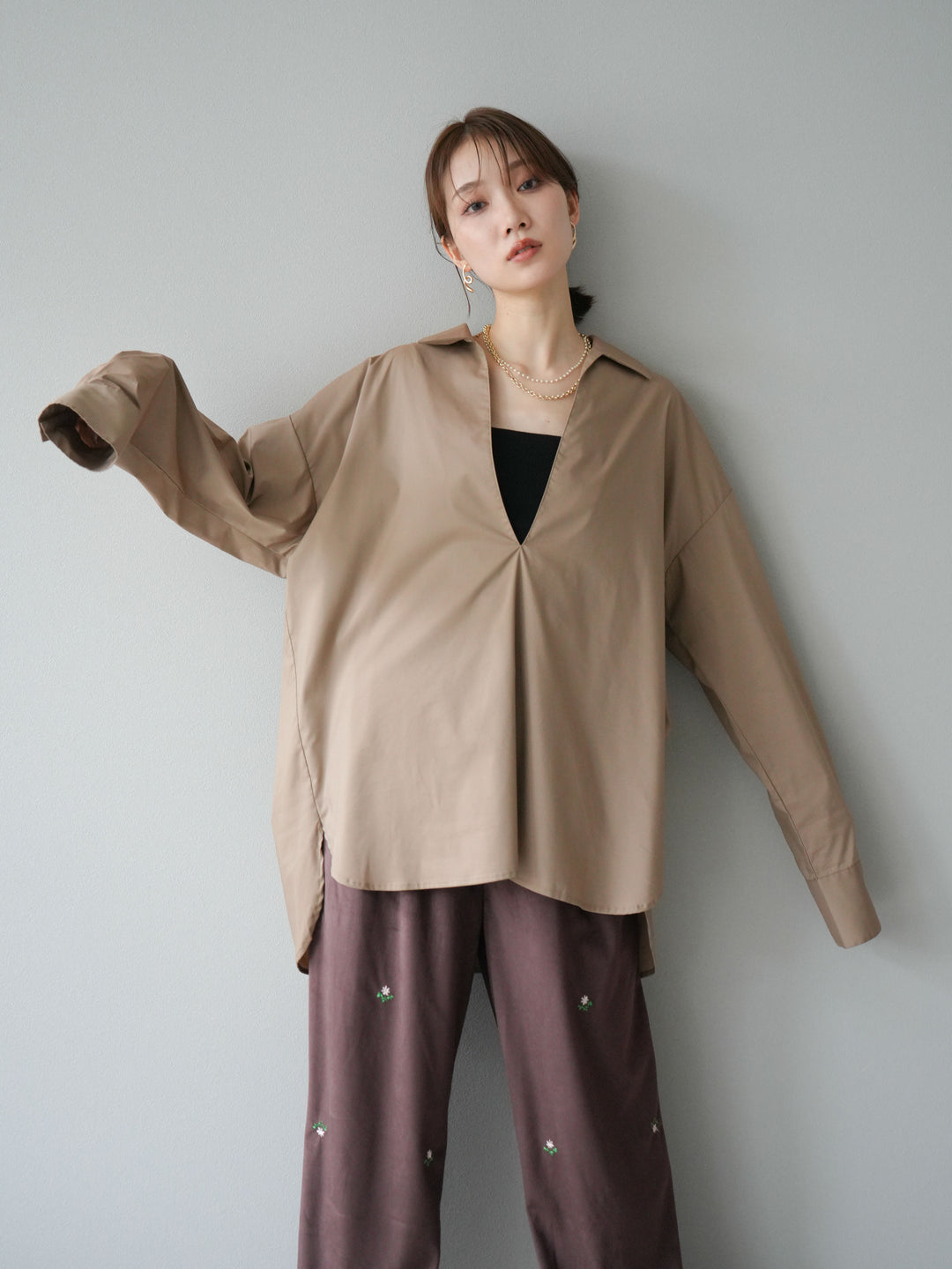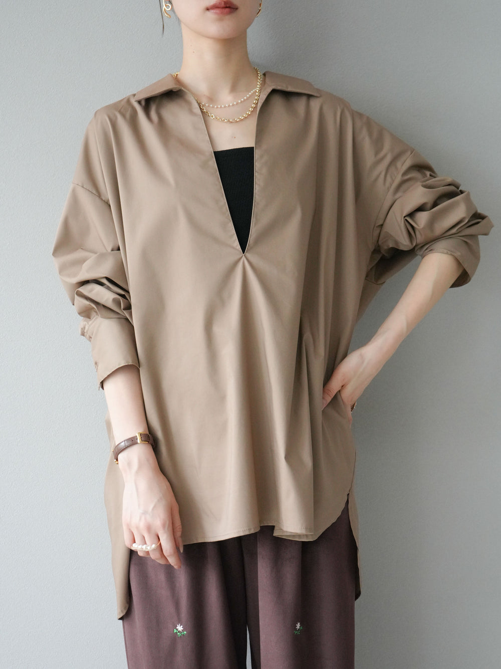 [予約]ブロードディープスキッパーブラウス/ベージュ