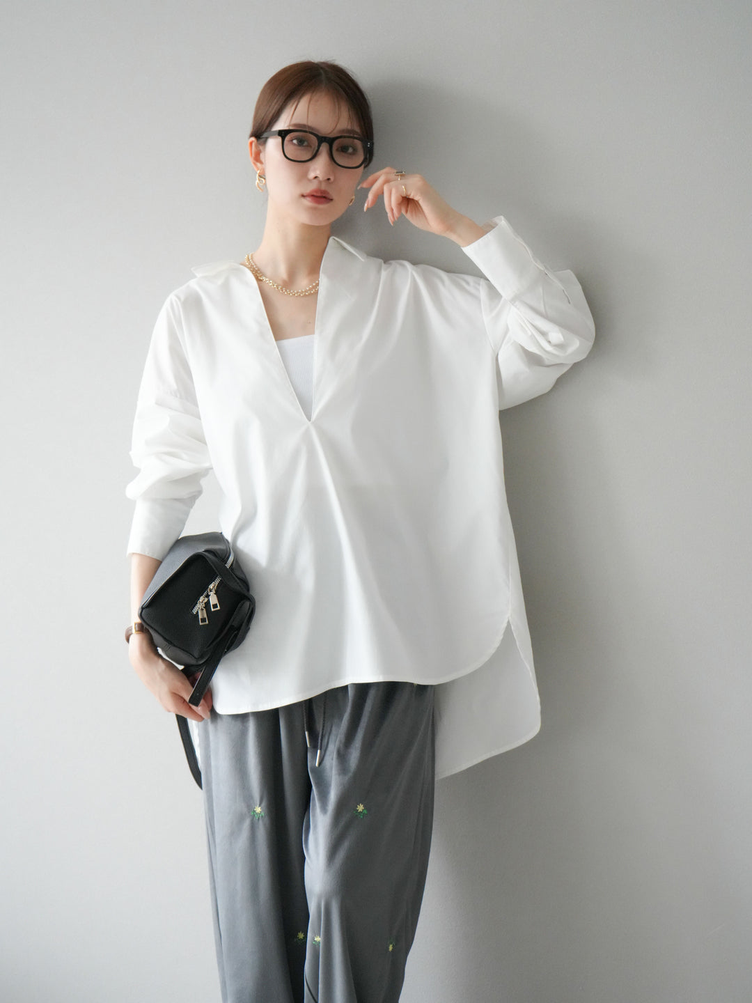 [予約]ブロードディープスキッパーブラウス/ホワイト