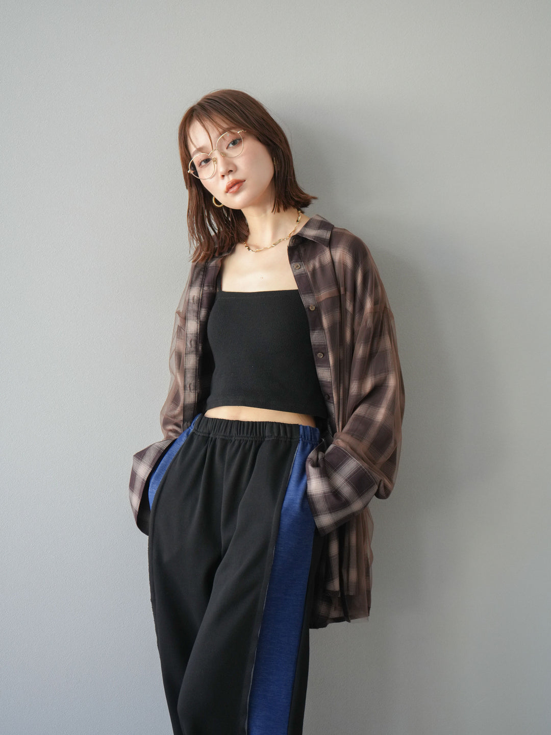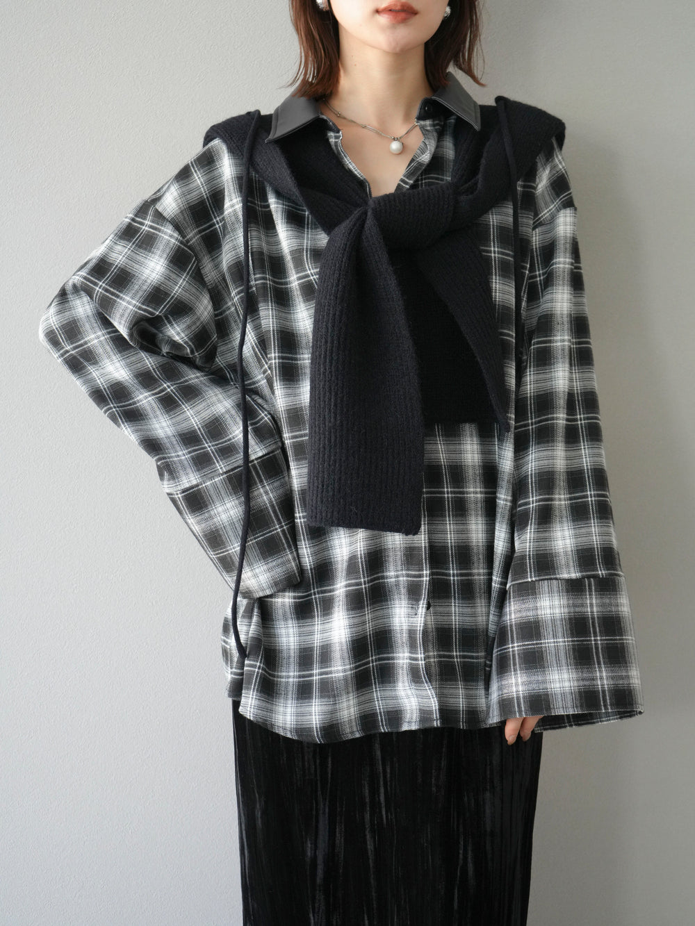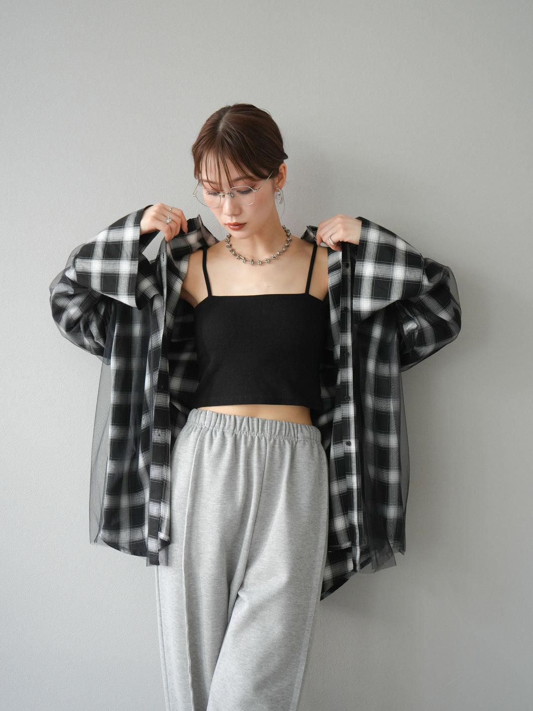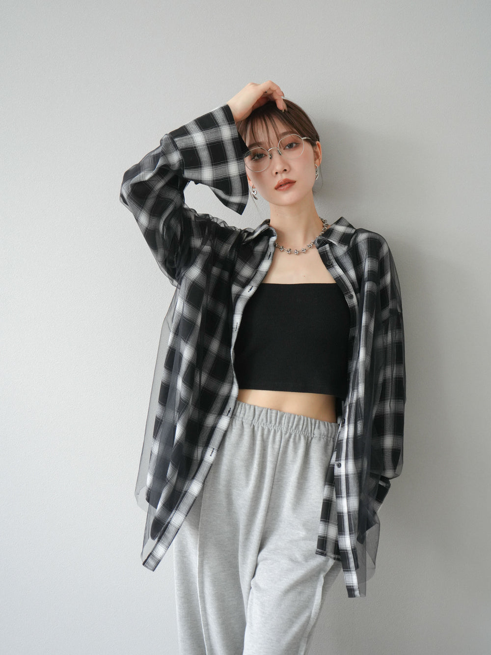 [予約]チュールドッキングチェック柄オーバーサイズシャツ/ブラック