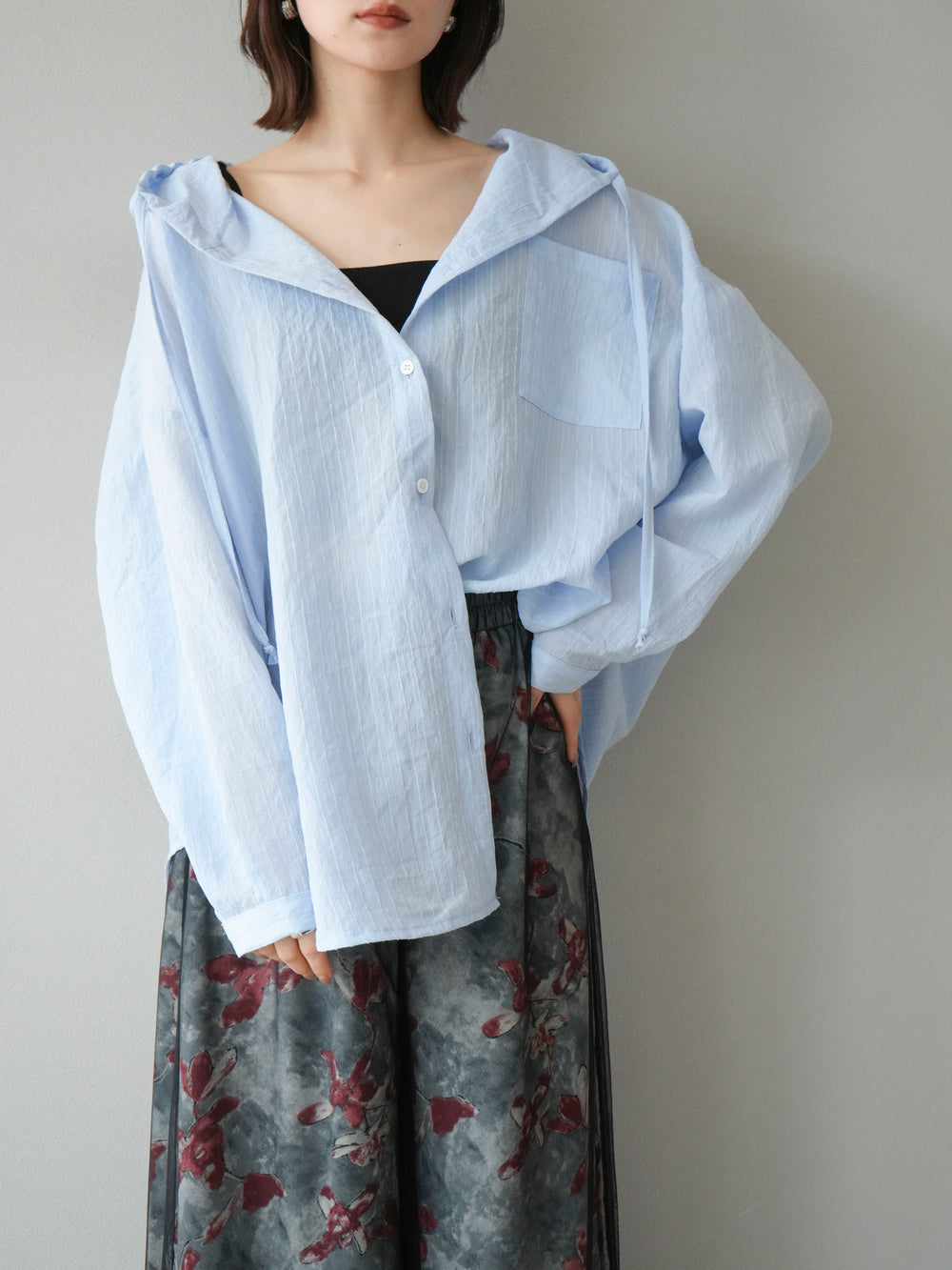 [予約]ワッシャーストライプフーディーシャツ/ブルー