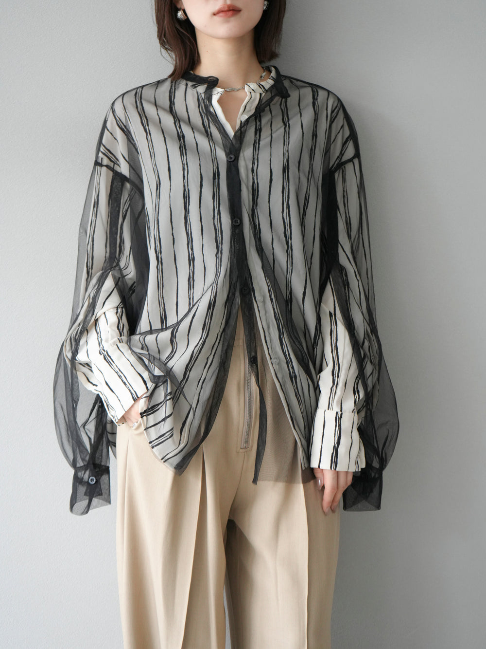 [予約]2WAYスリーブチュールシャツ/ブラック