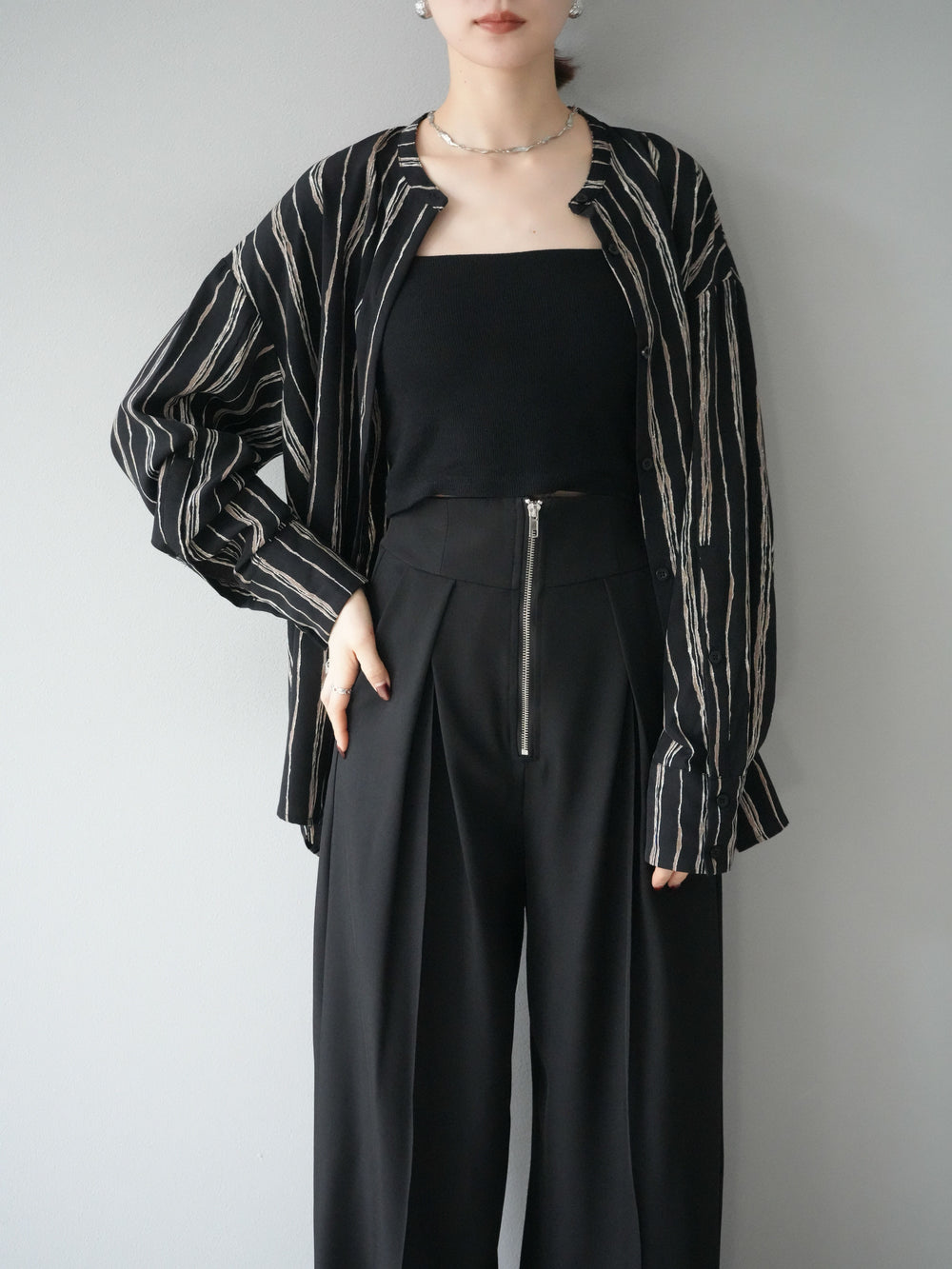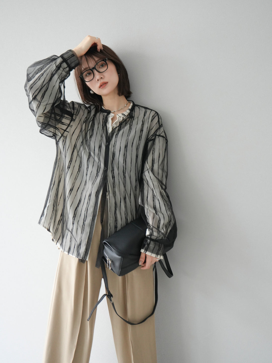 [予約]ペンタッチストライプ2WAYスリーブバンドカラーシャツ/ブラック