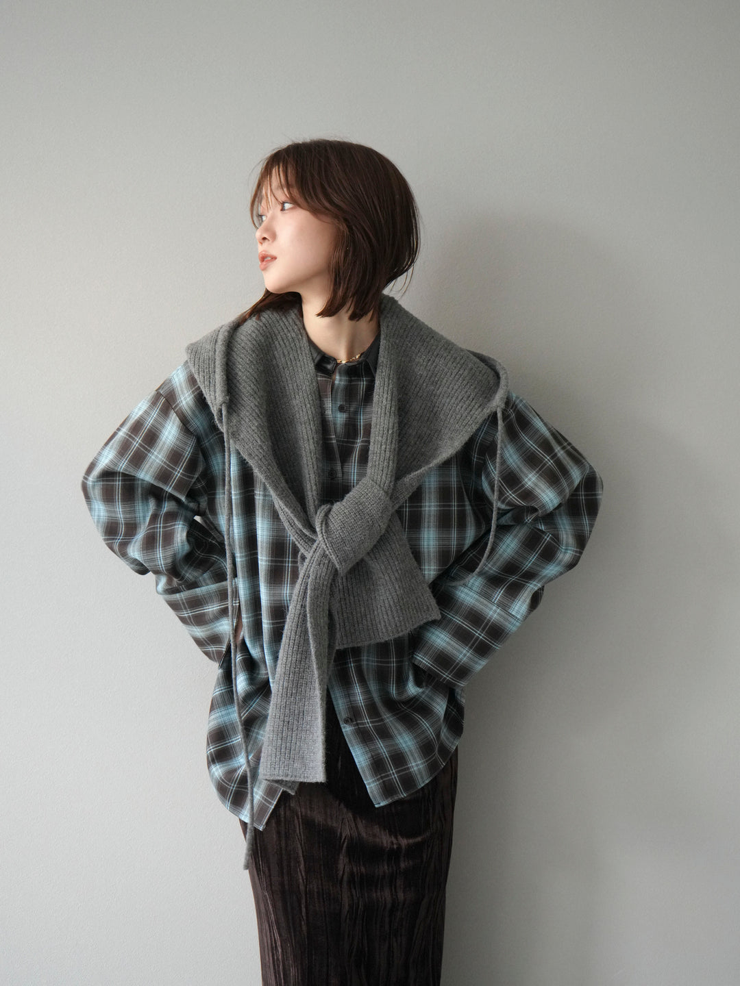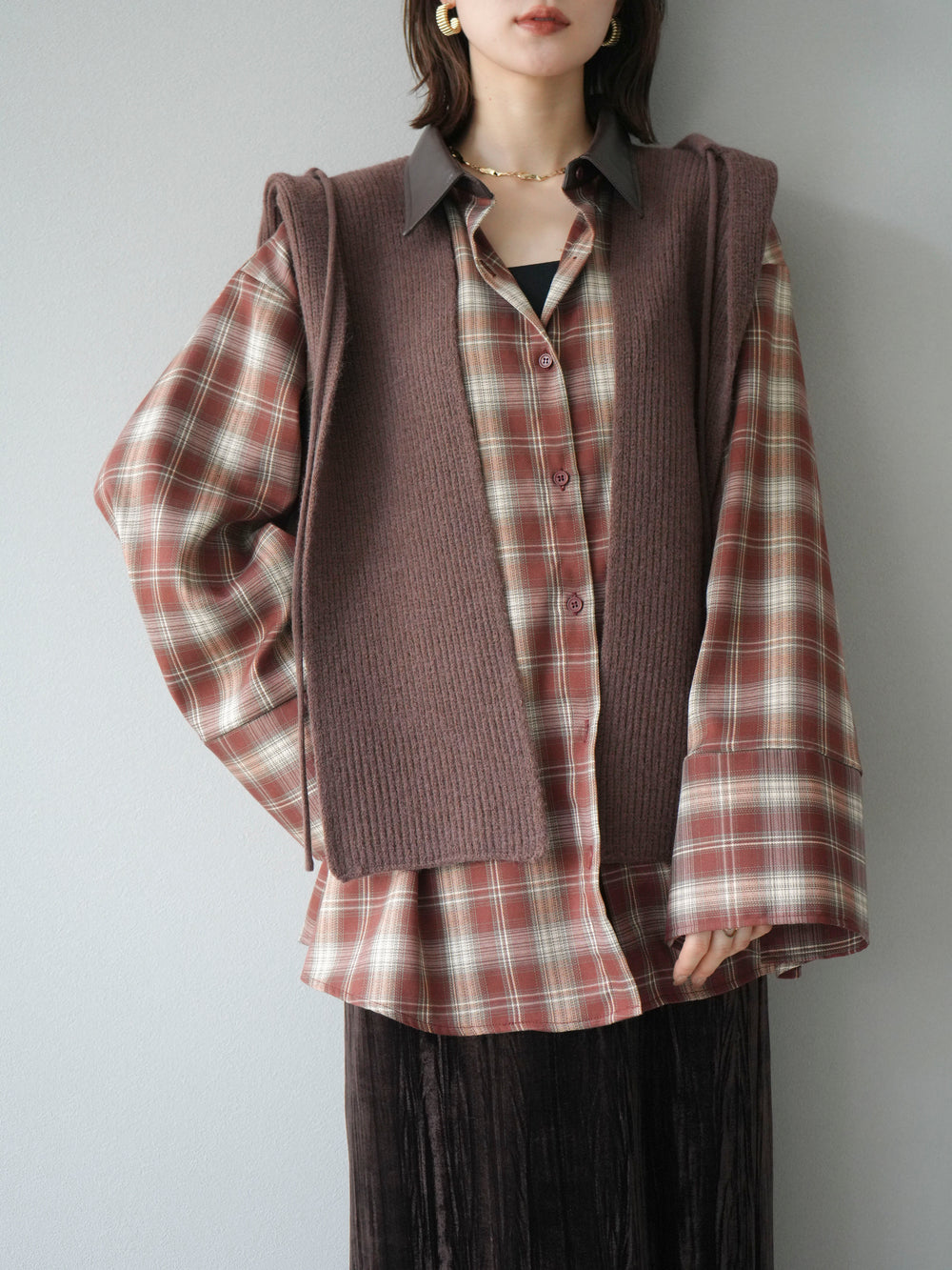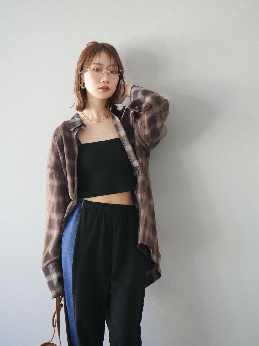 [予約]チュールドッキングチェック柄オーバーサイズシャツ/ブラウン