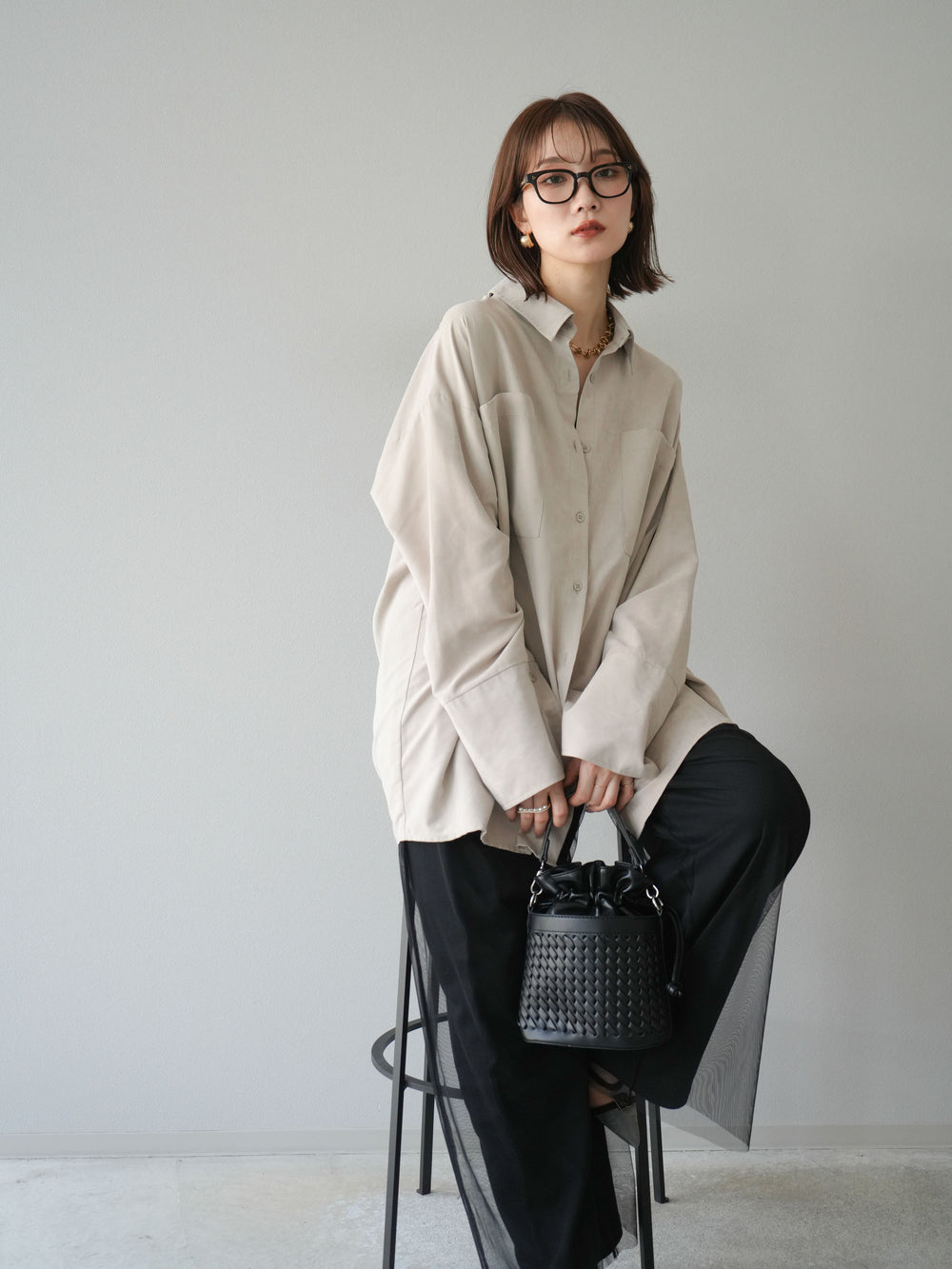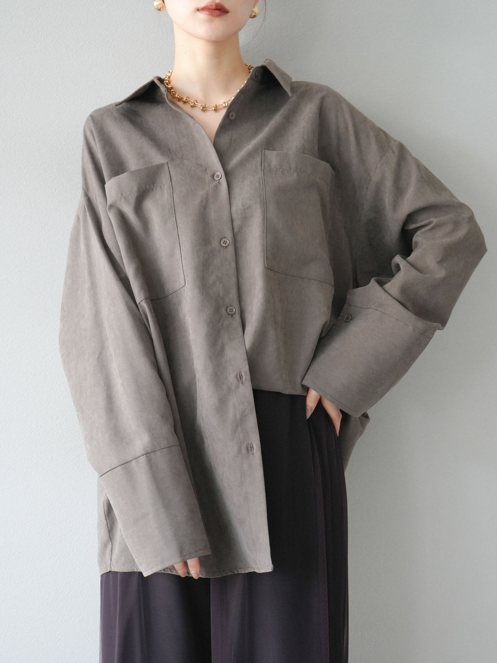 [予約]スエードライクBIGカフスオーバーシャツ/チャコール