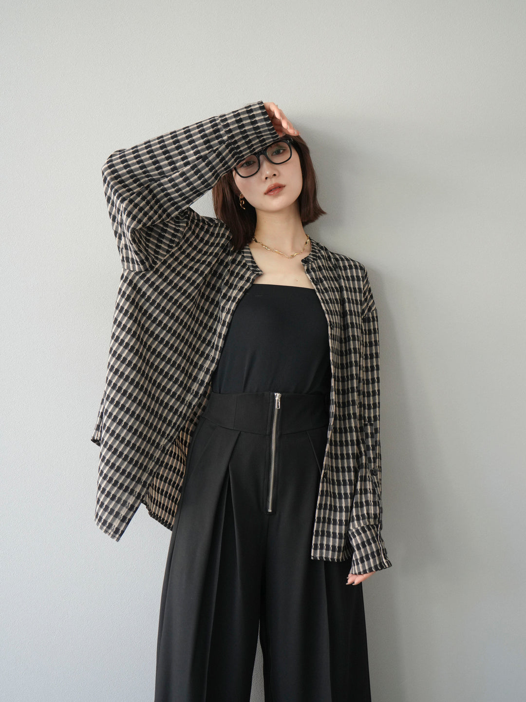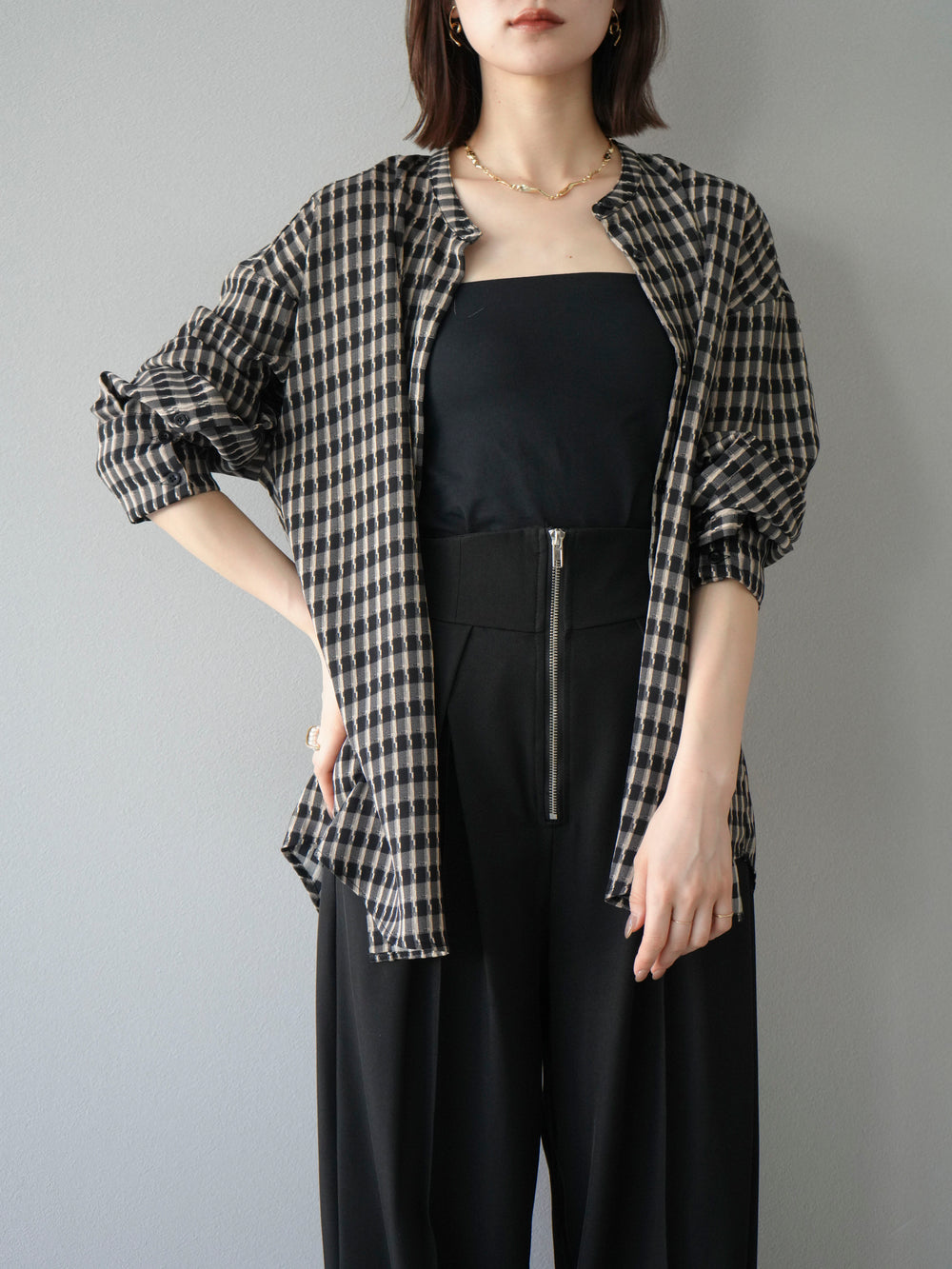 [予約]チェック柄2WAYスリーブバンドカラーシャツ/ベージュブラック