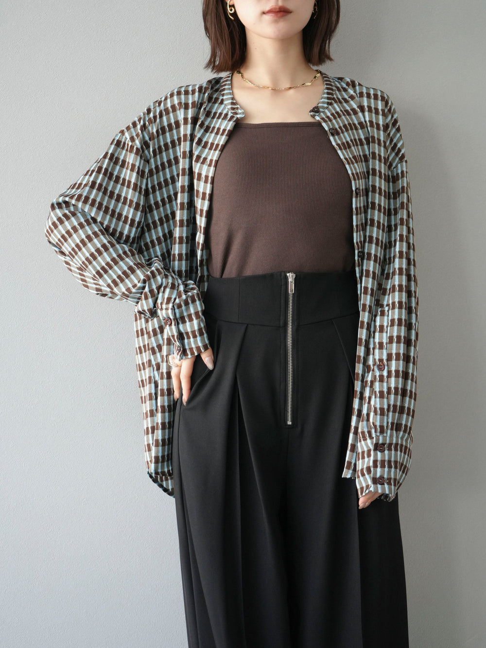 [予約]チェック柄2WAYスリーブバンドカラーシャツ/ブルーブラウン