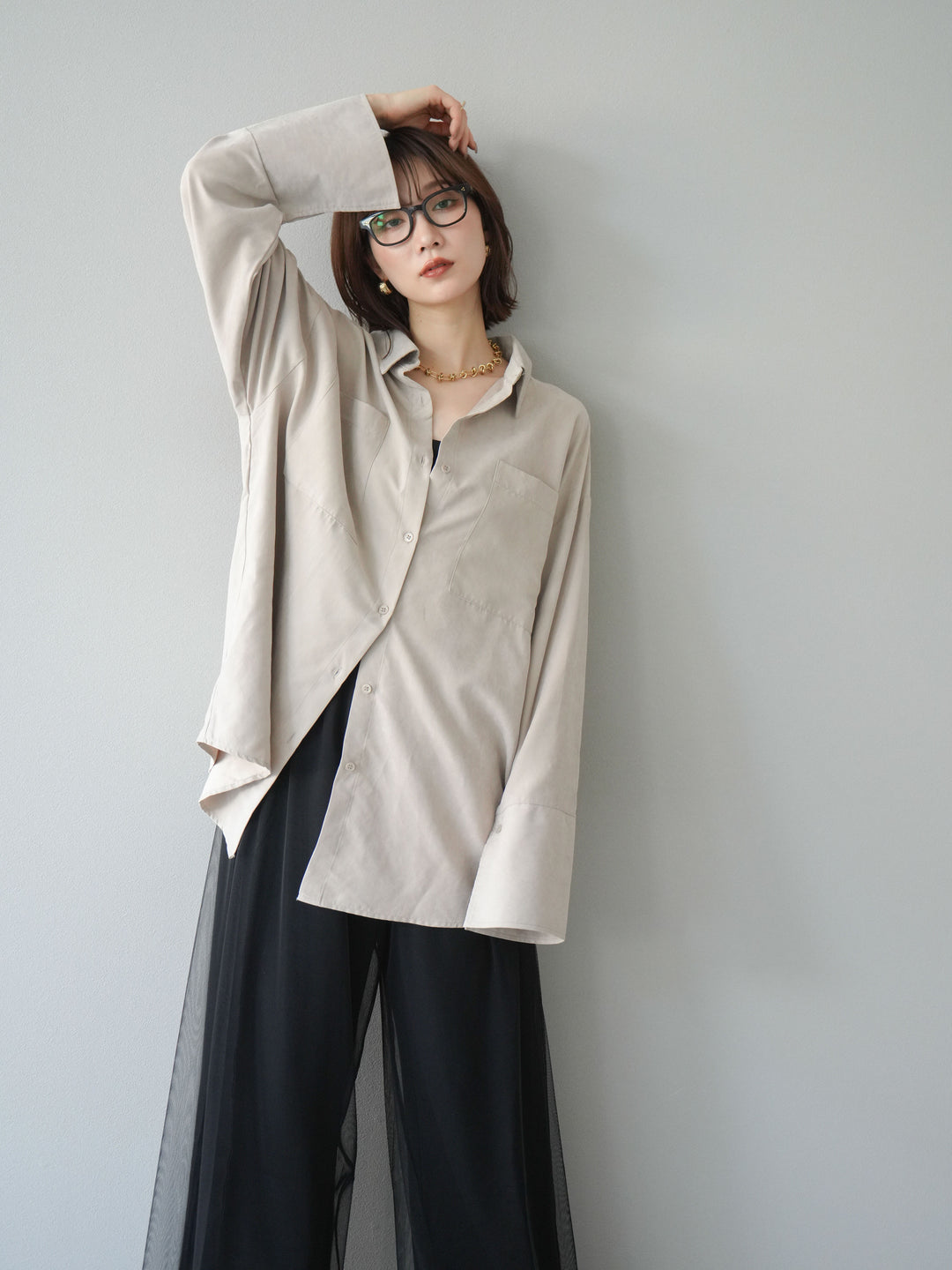 [予約]2WAYスリーブチュールシャツ/グレージュ