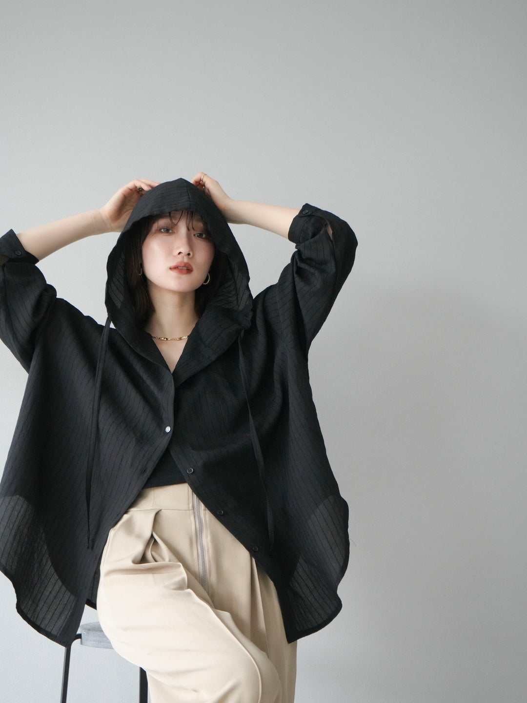 [予約]ワッシャーストライプフーディーシャツ/ブラック