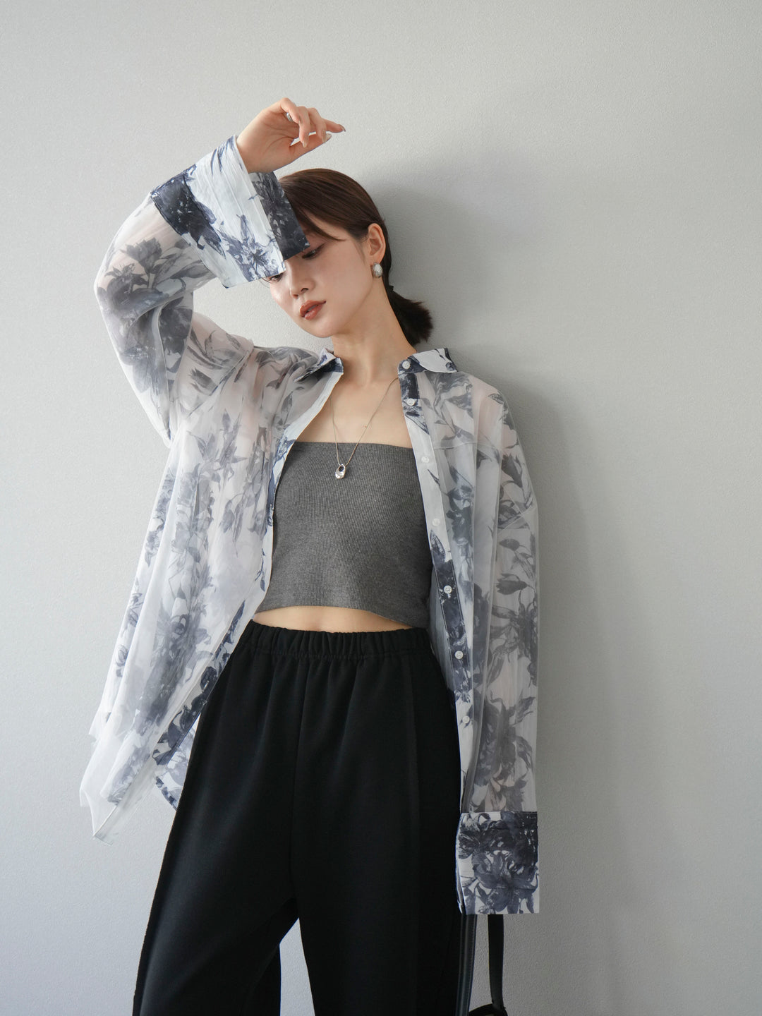 [予約]チュールドッキングフラワー柄オーバーサイズシャツ/グレー